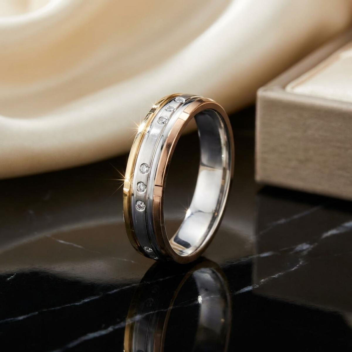 Халката с каталожен номер H9994 е различна от традиционните халки, които сте виждали на ръцете на своите родители и познати. Нашите дизайнери създадоха уникален трицветен дизайн на халка, който да бъде чудесна алтернатива за новите брачни двойки, които не следват строго традициите.