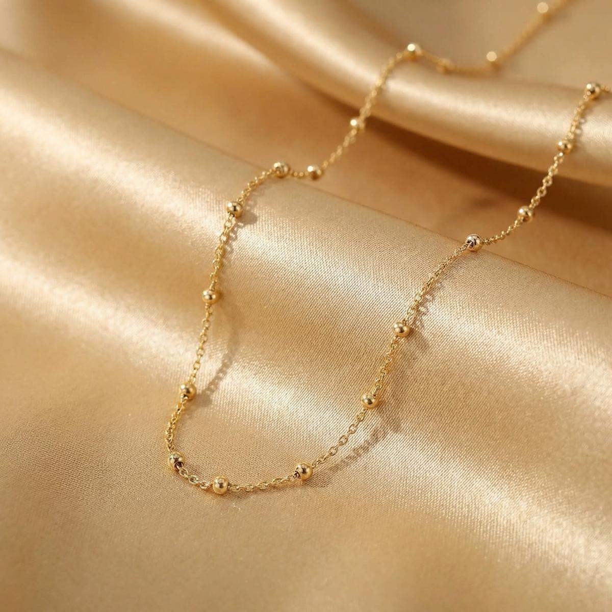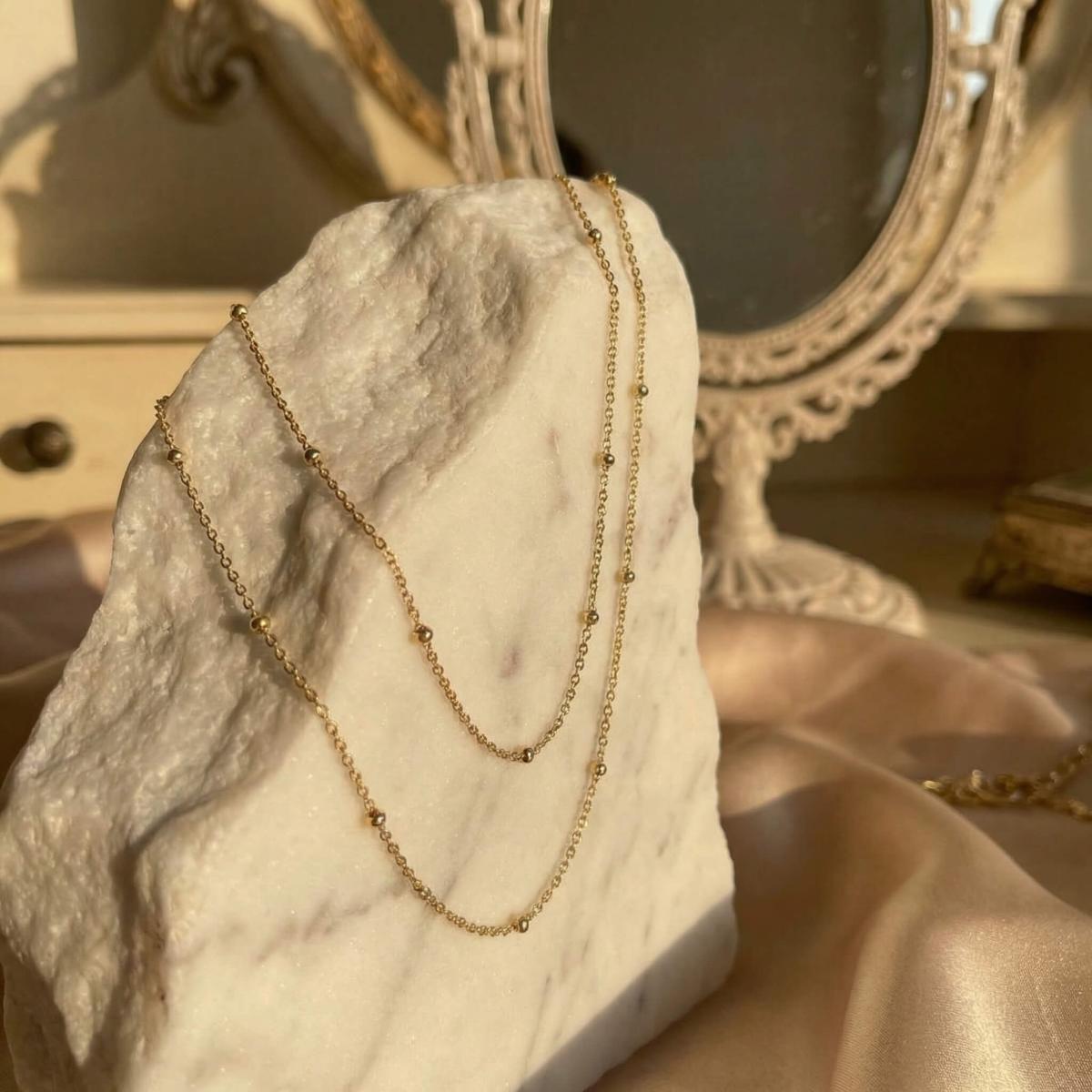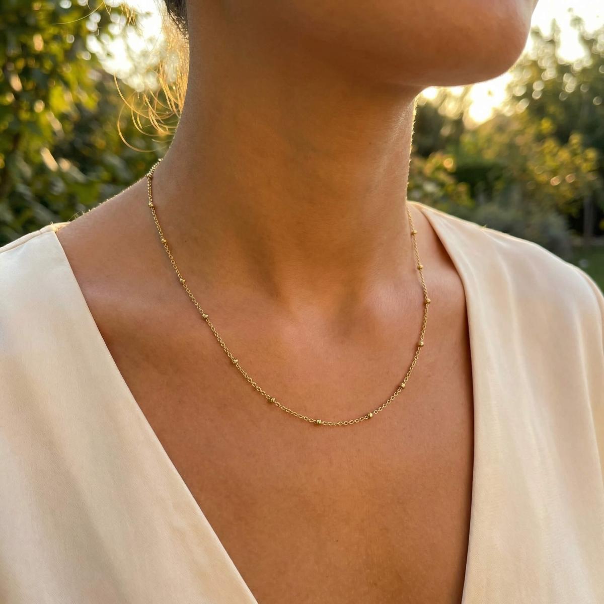 Нежно златно колие изработено от 14-каратово злато с малки топчета