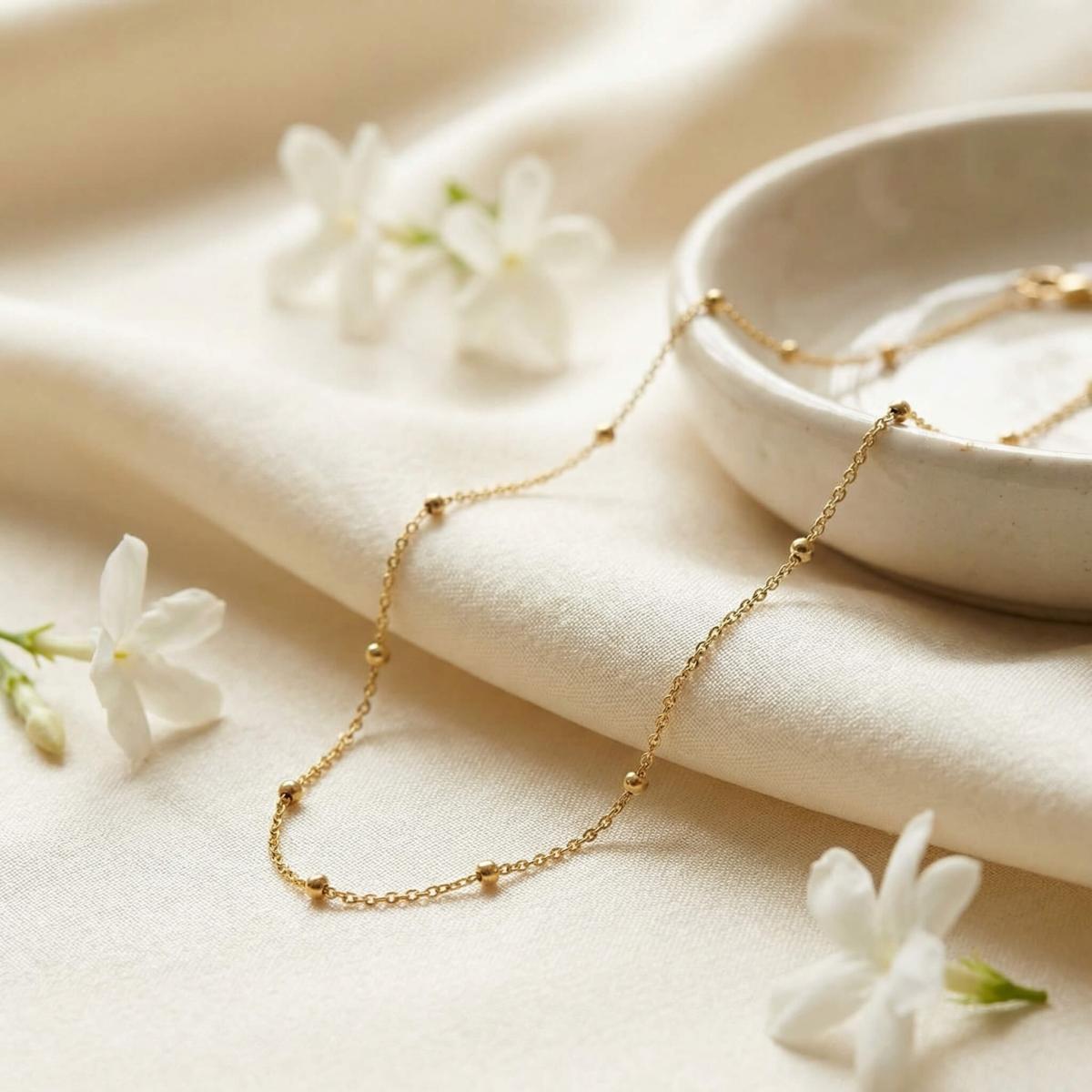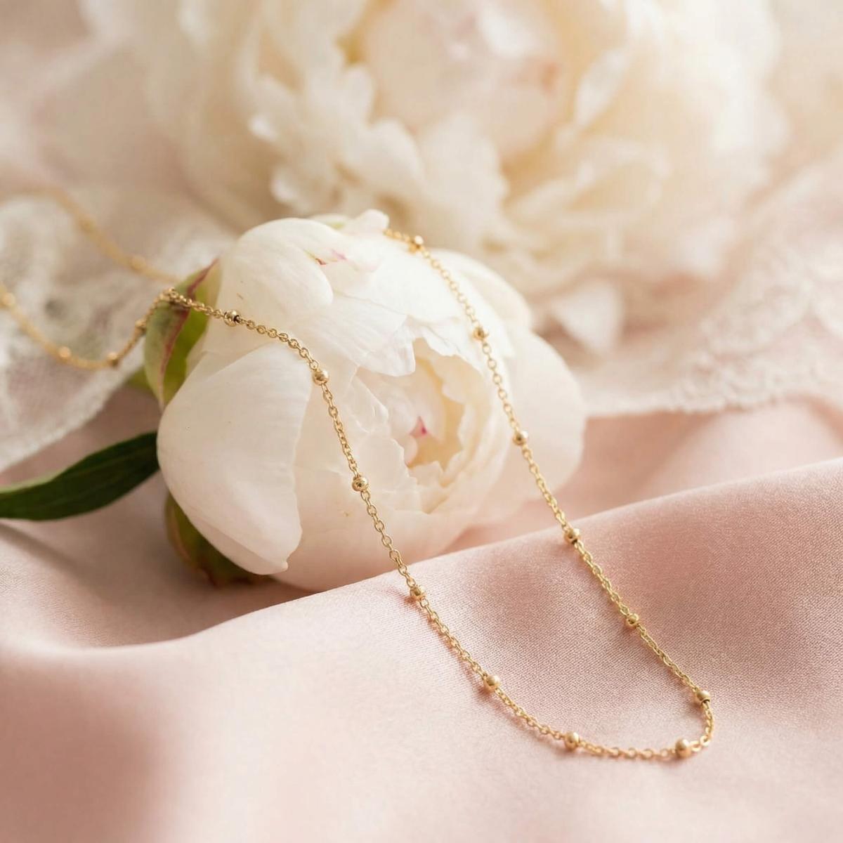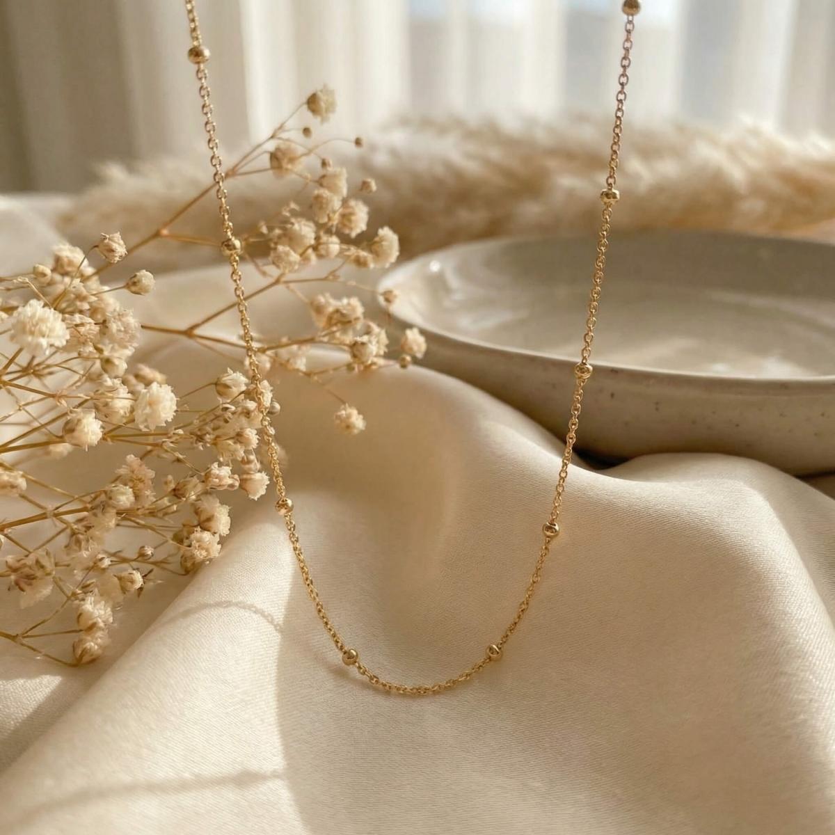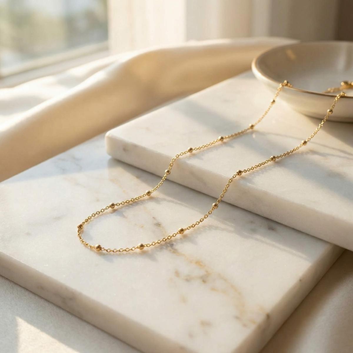 Нежно златно колие изработено от 14-каратово злато с малки топчета