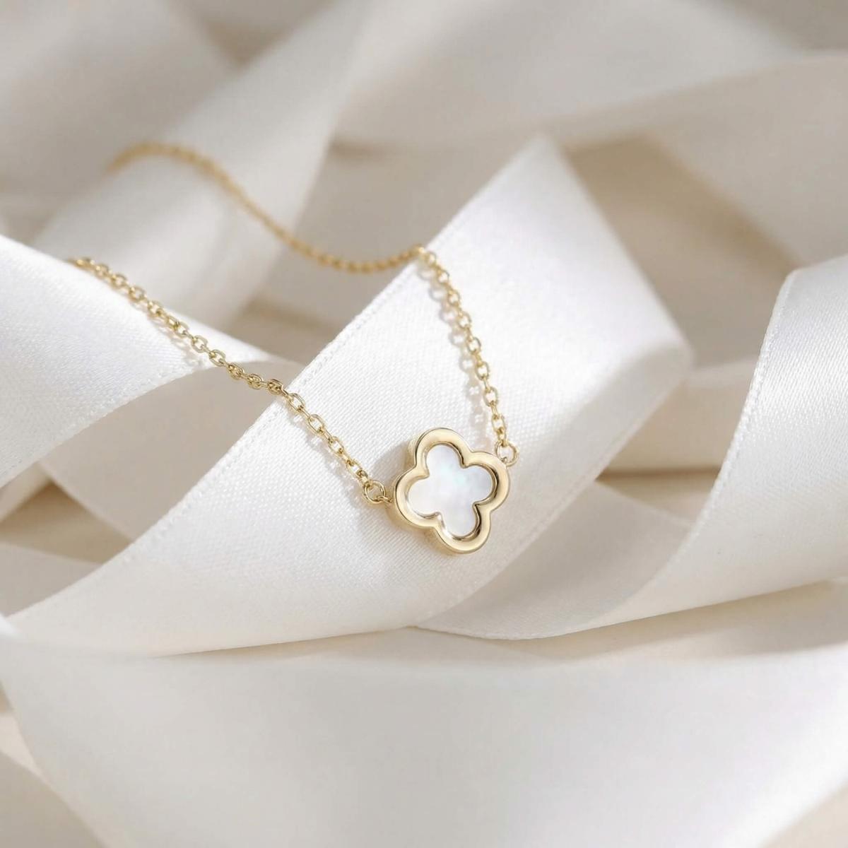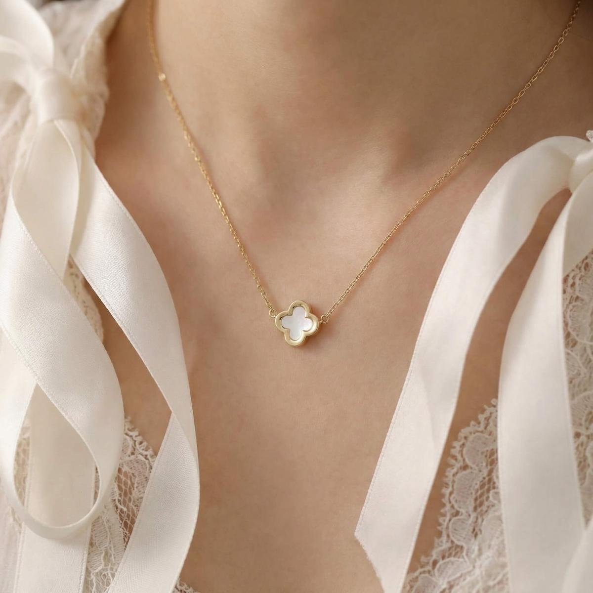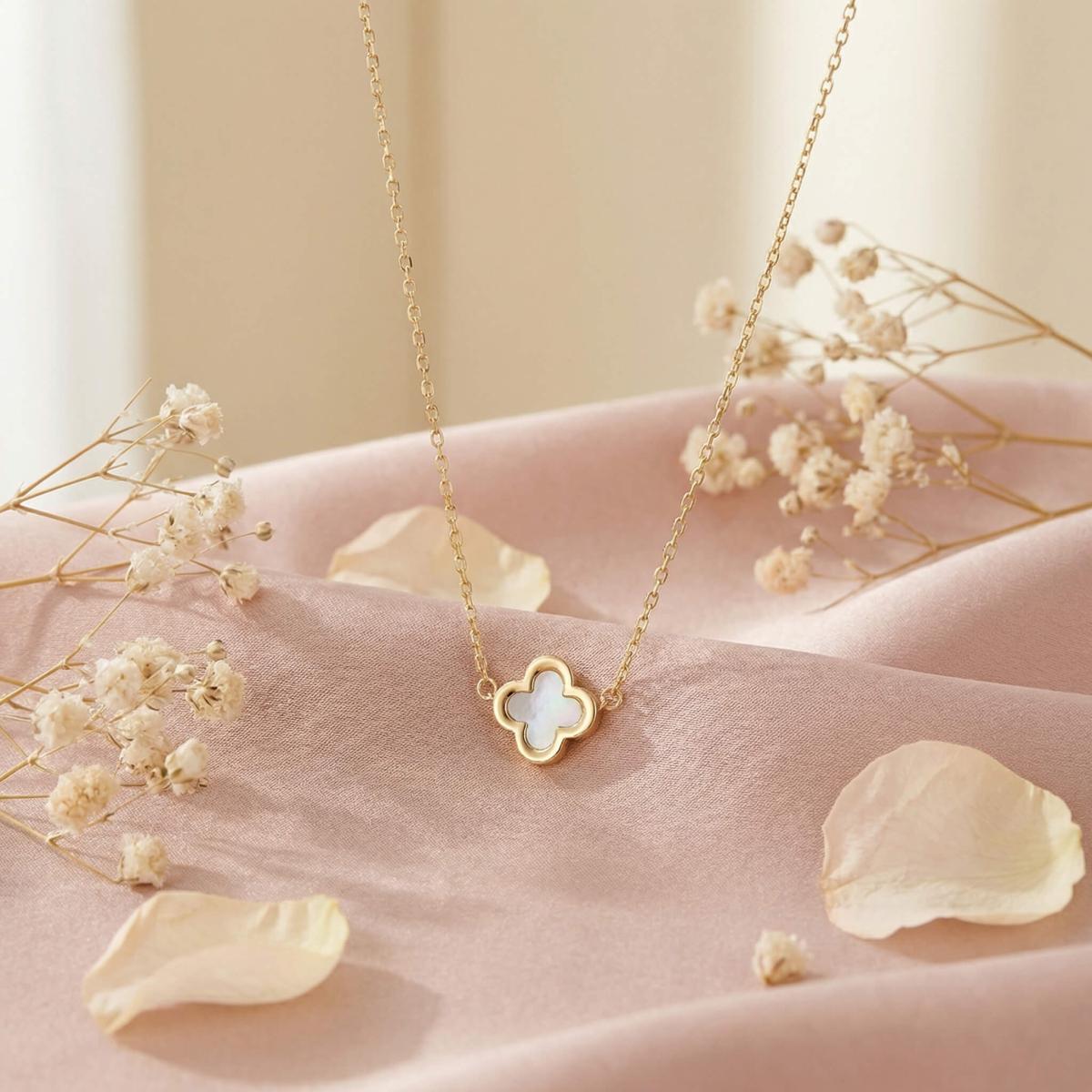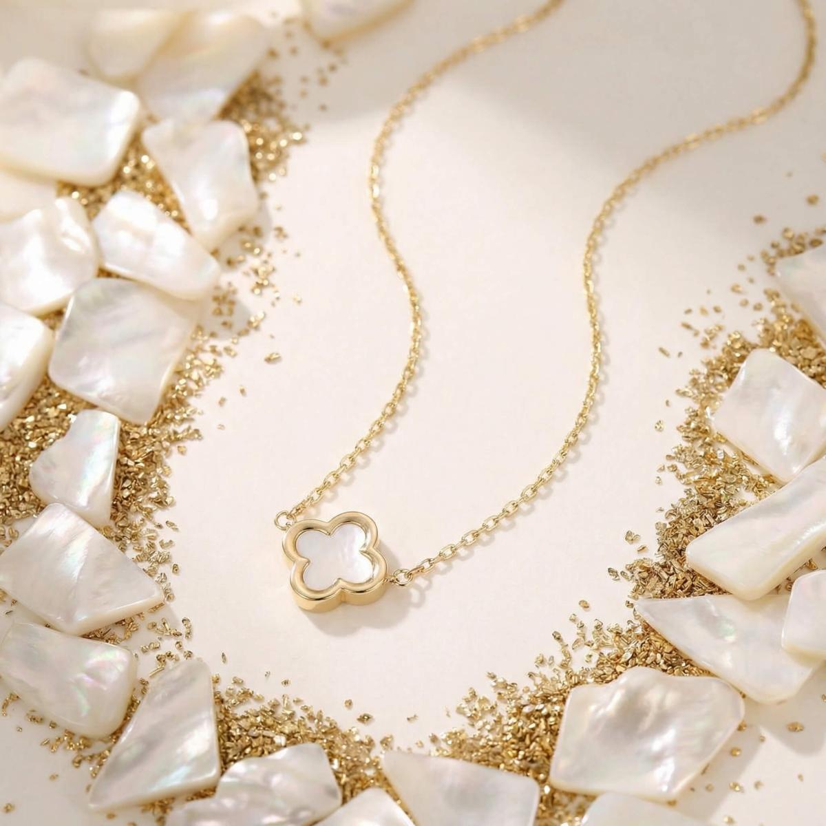 - Златно колие детелинка с бял седеф