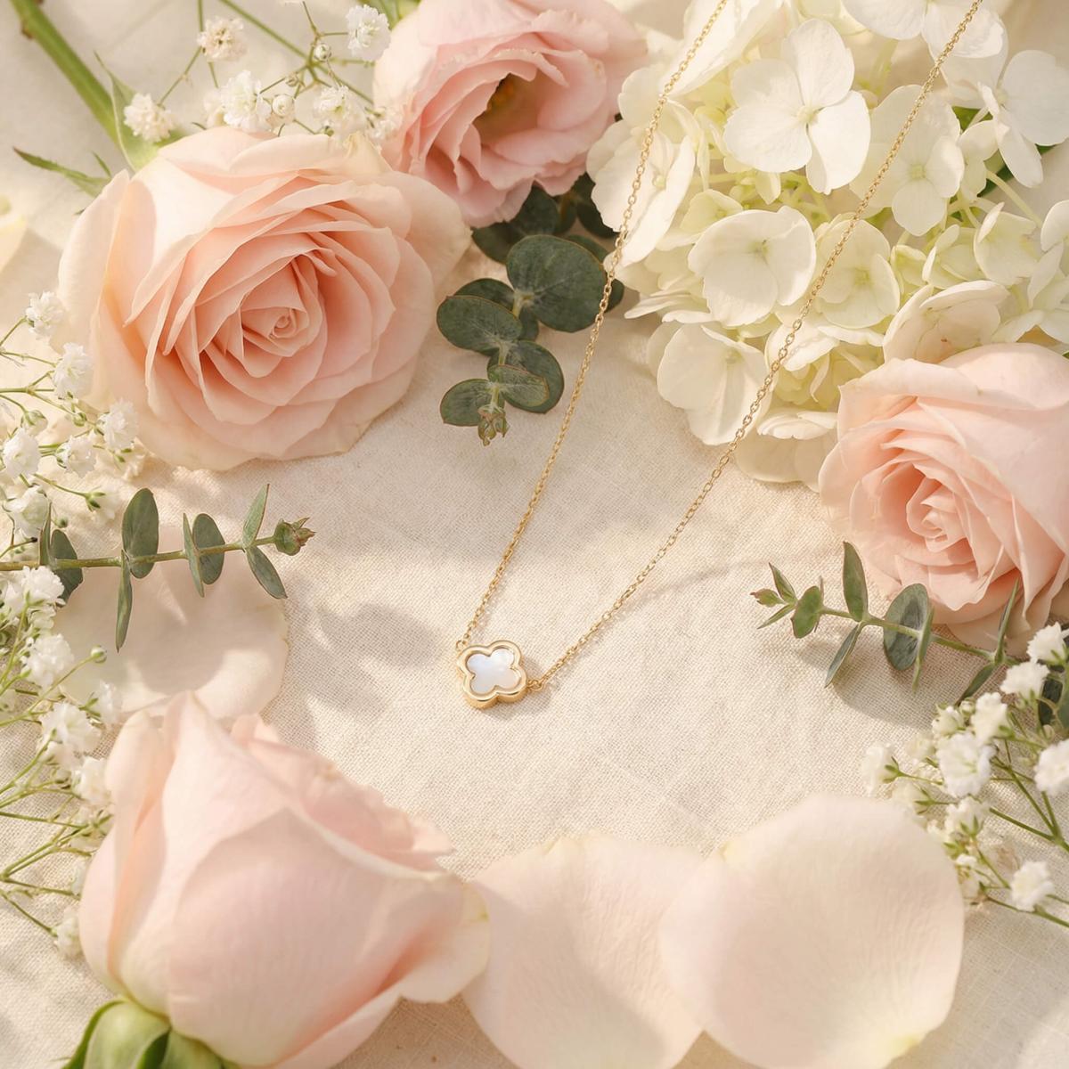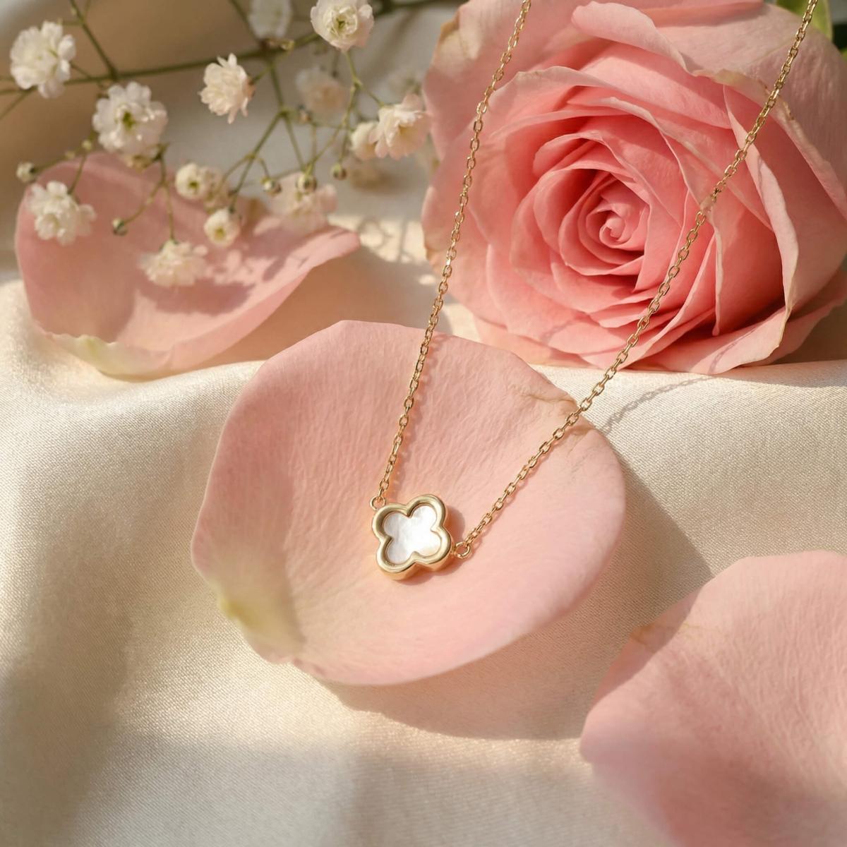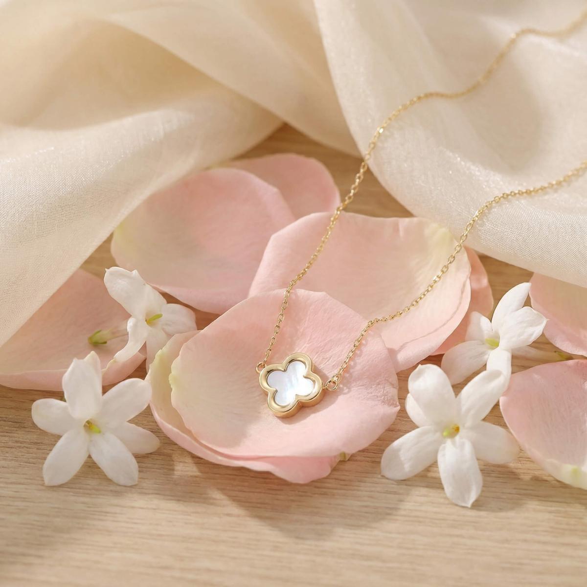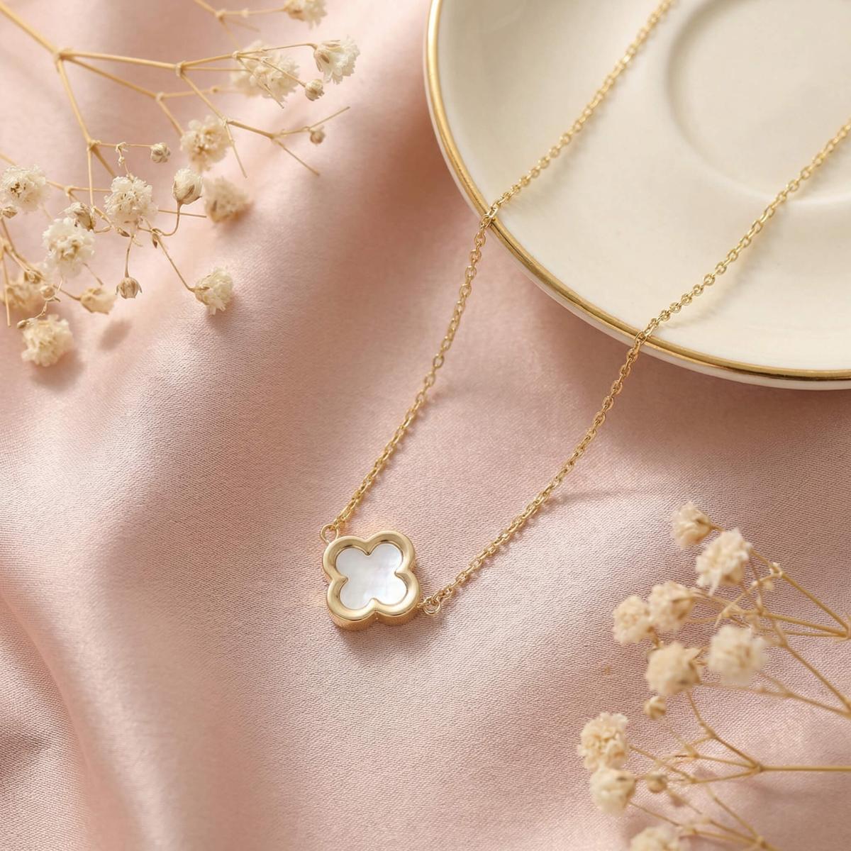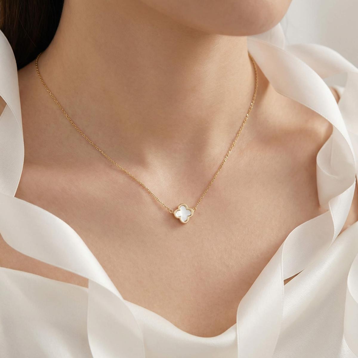 - Златно колие детелинка с бял седеф