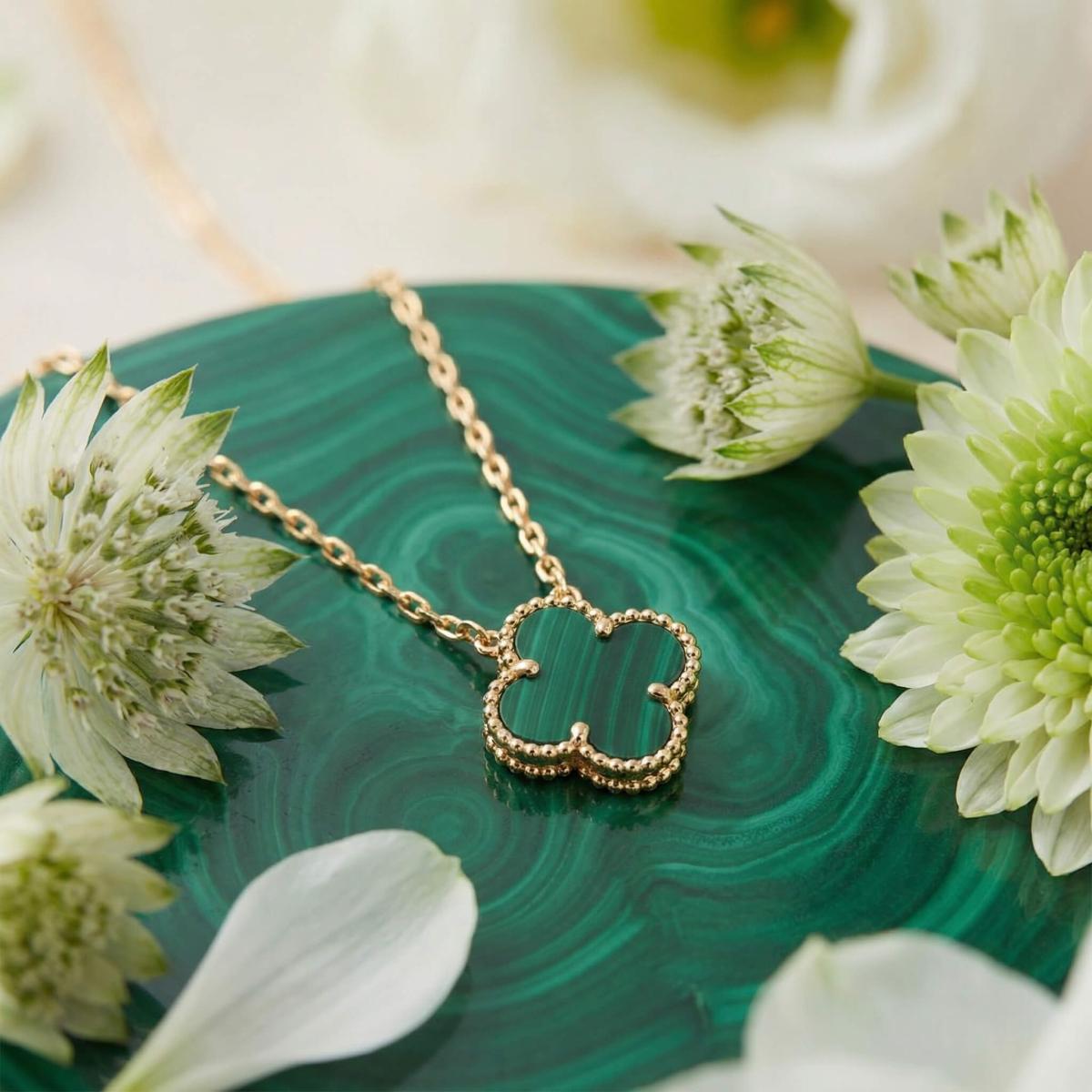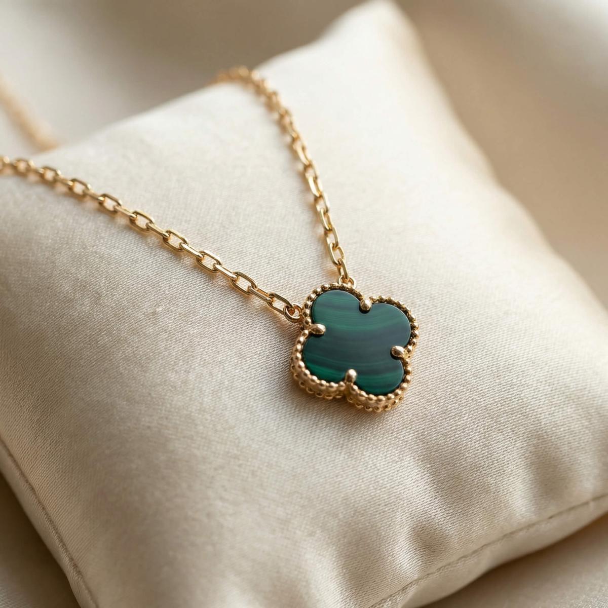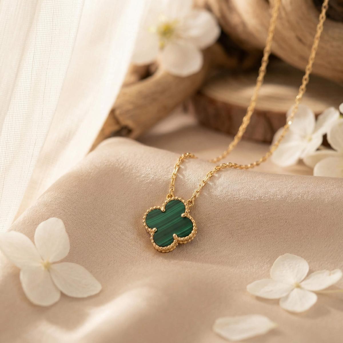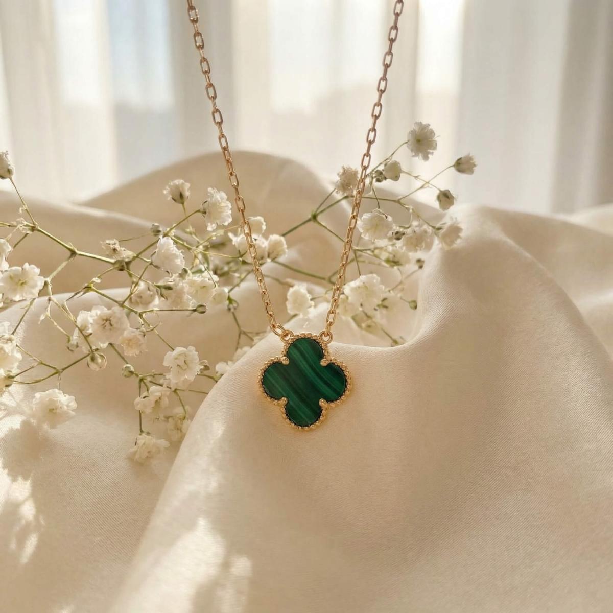 - Златно колие детелинка с малахит
