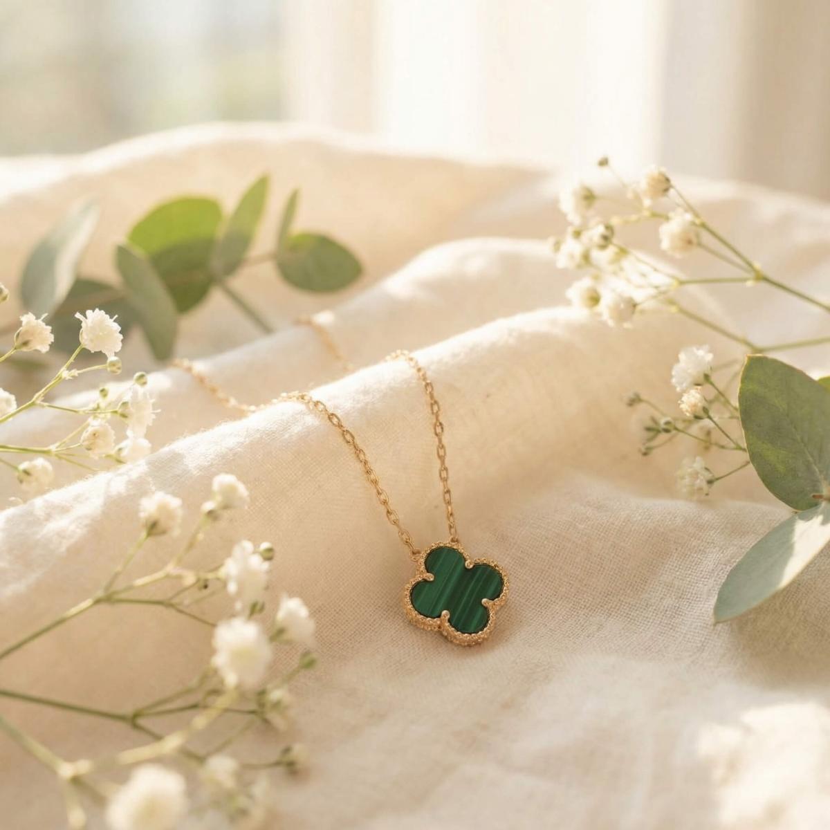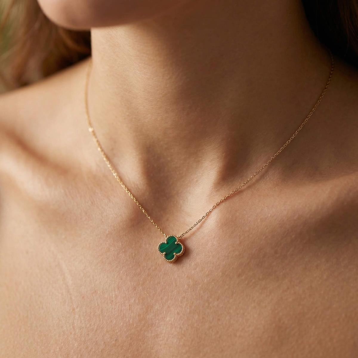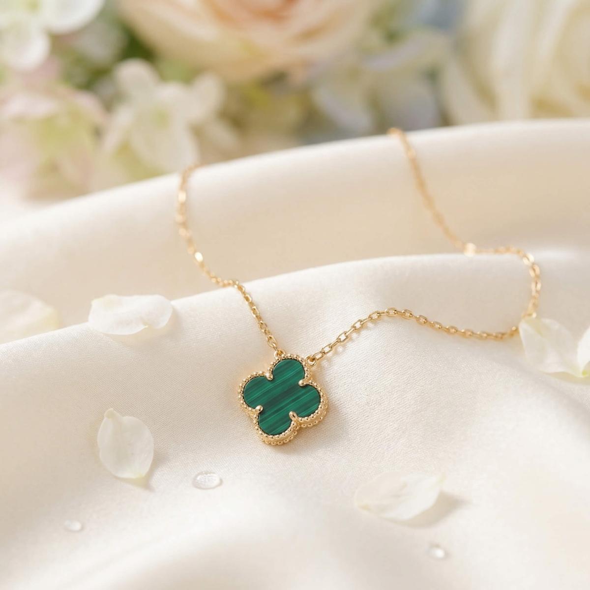 - Златно колие детелинка с малахит