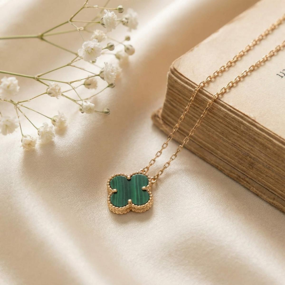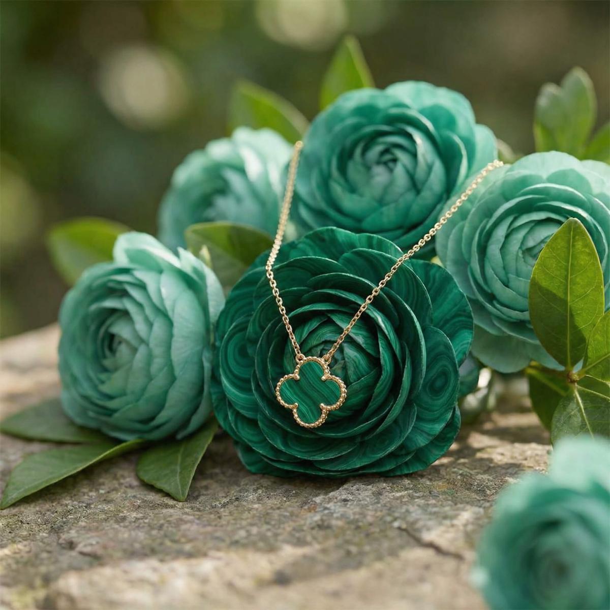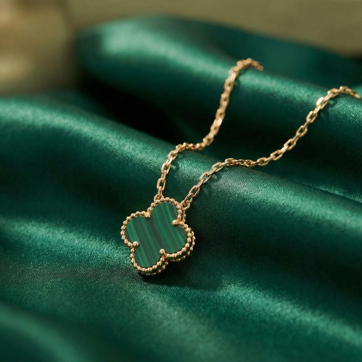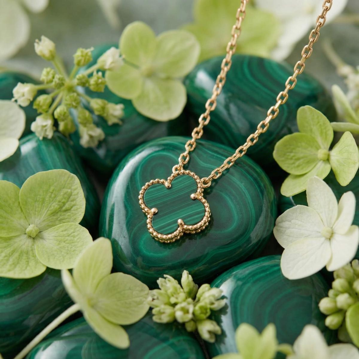 - Златно колие детелинка с малахит