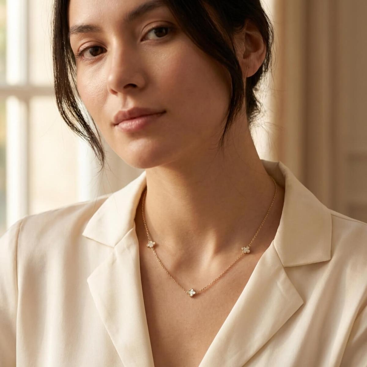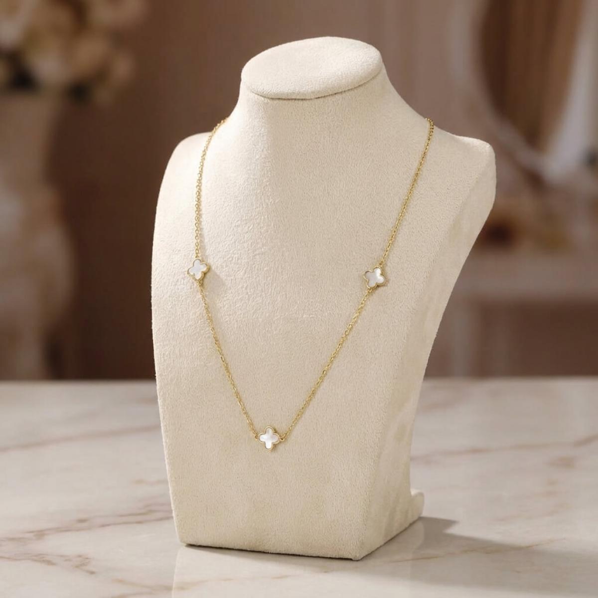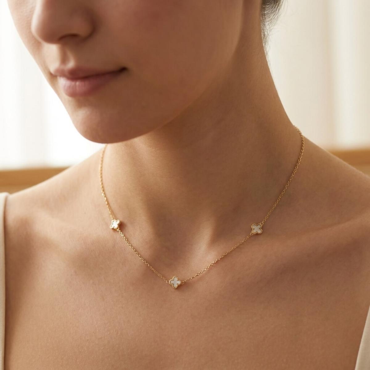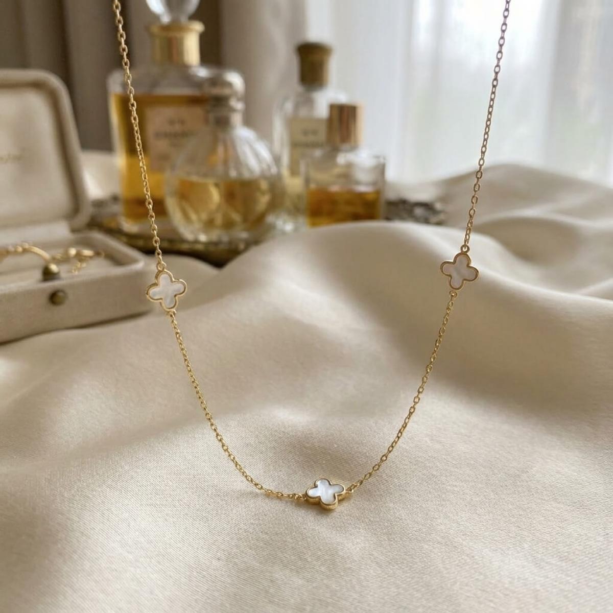- Златно колие детелинка с бял седеф