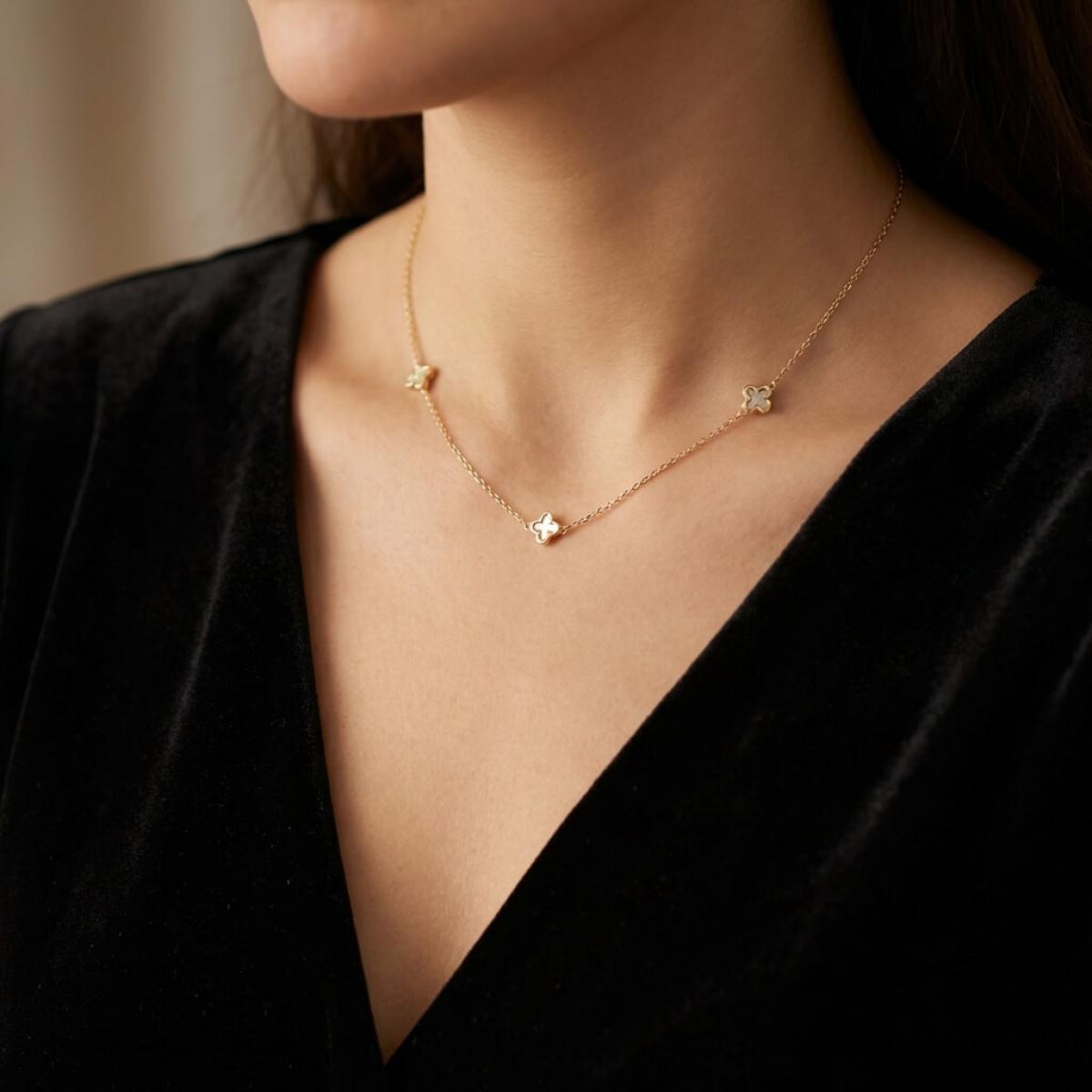 Златно колие Детелинки с бял седеф