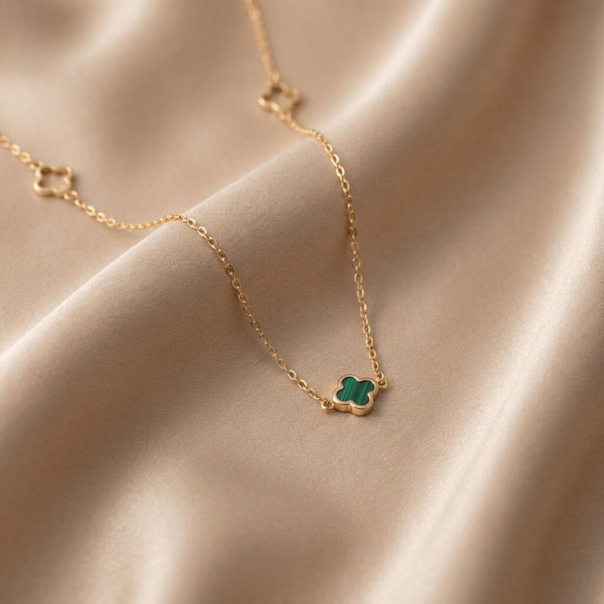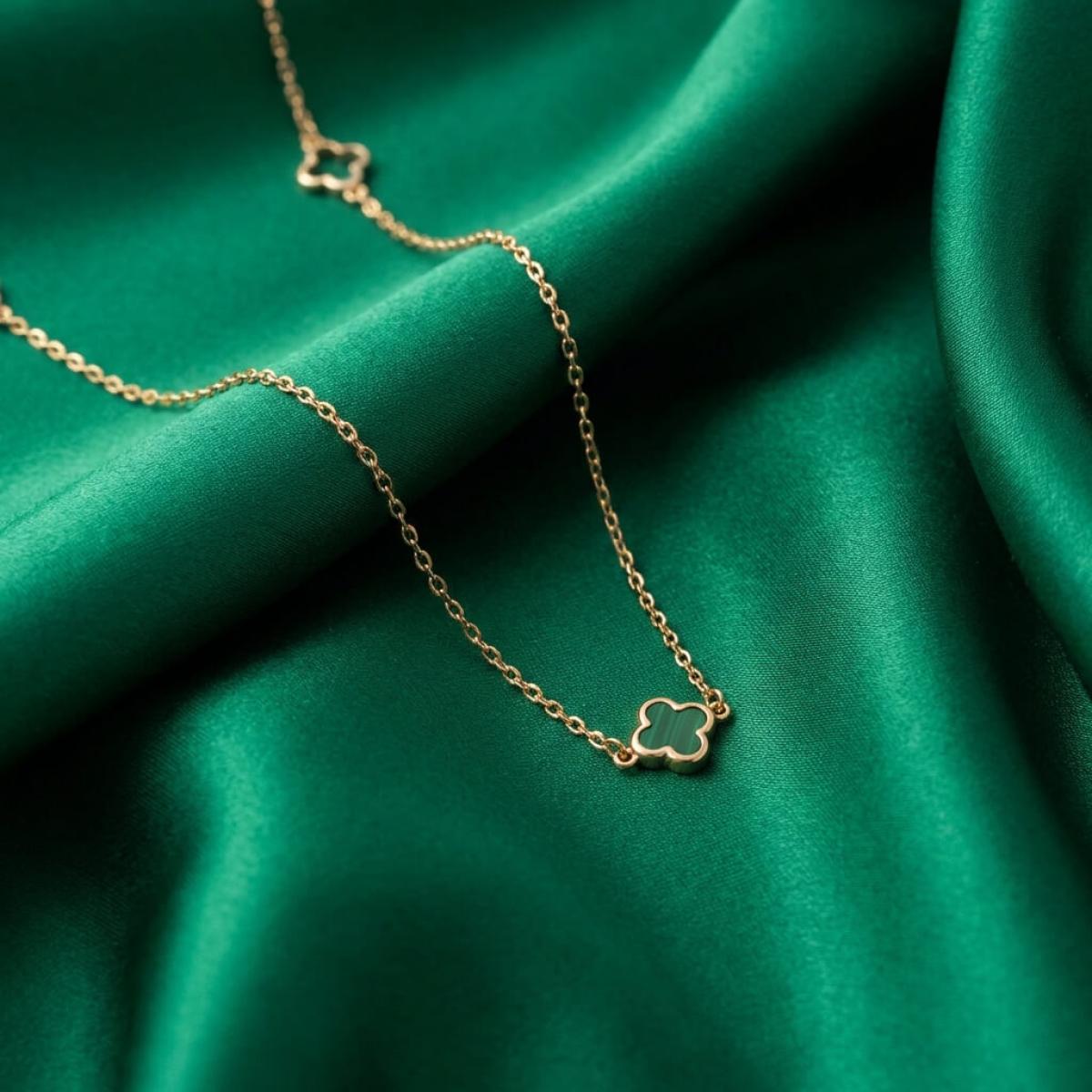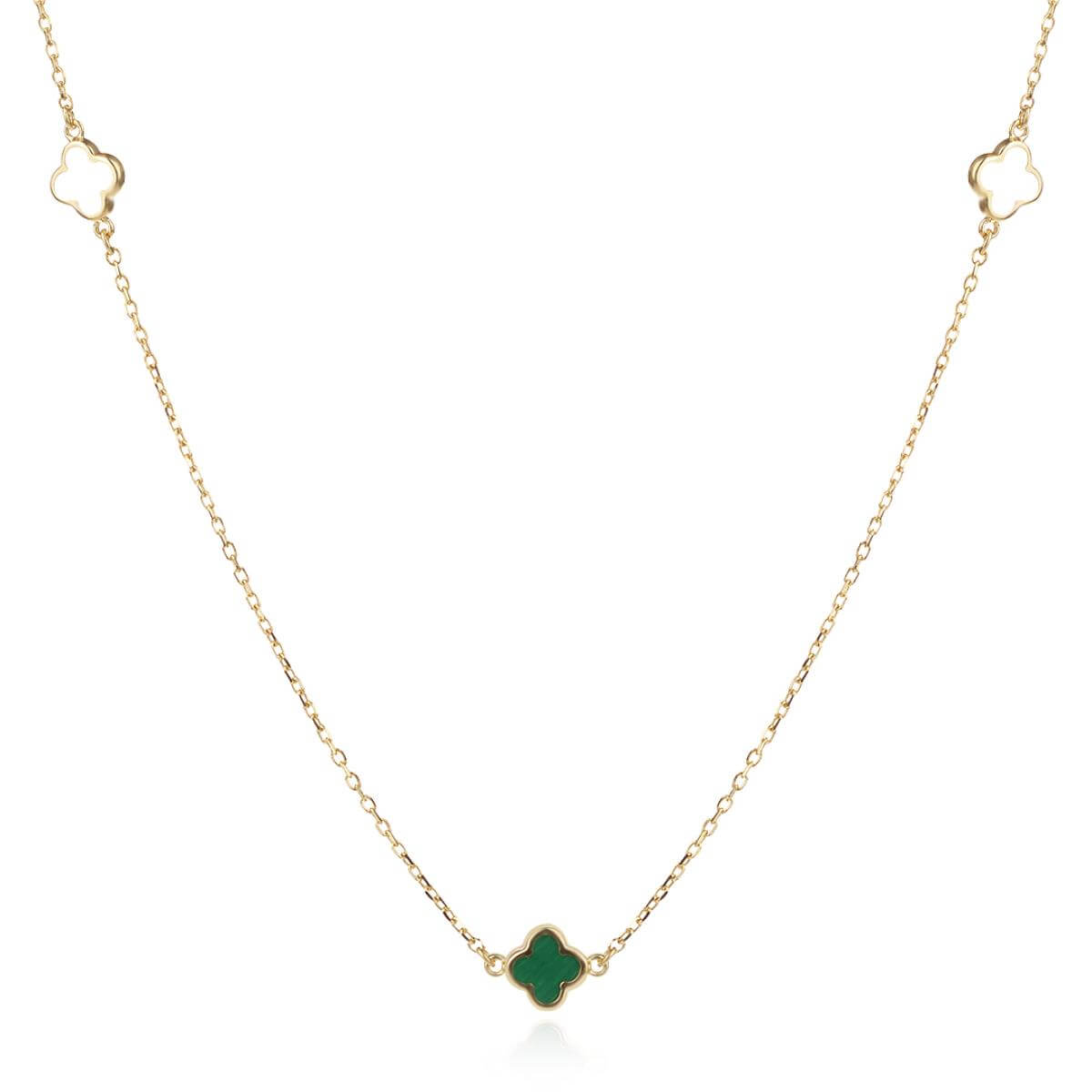 - Златно колие детелинка с малахит