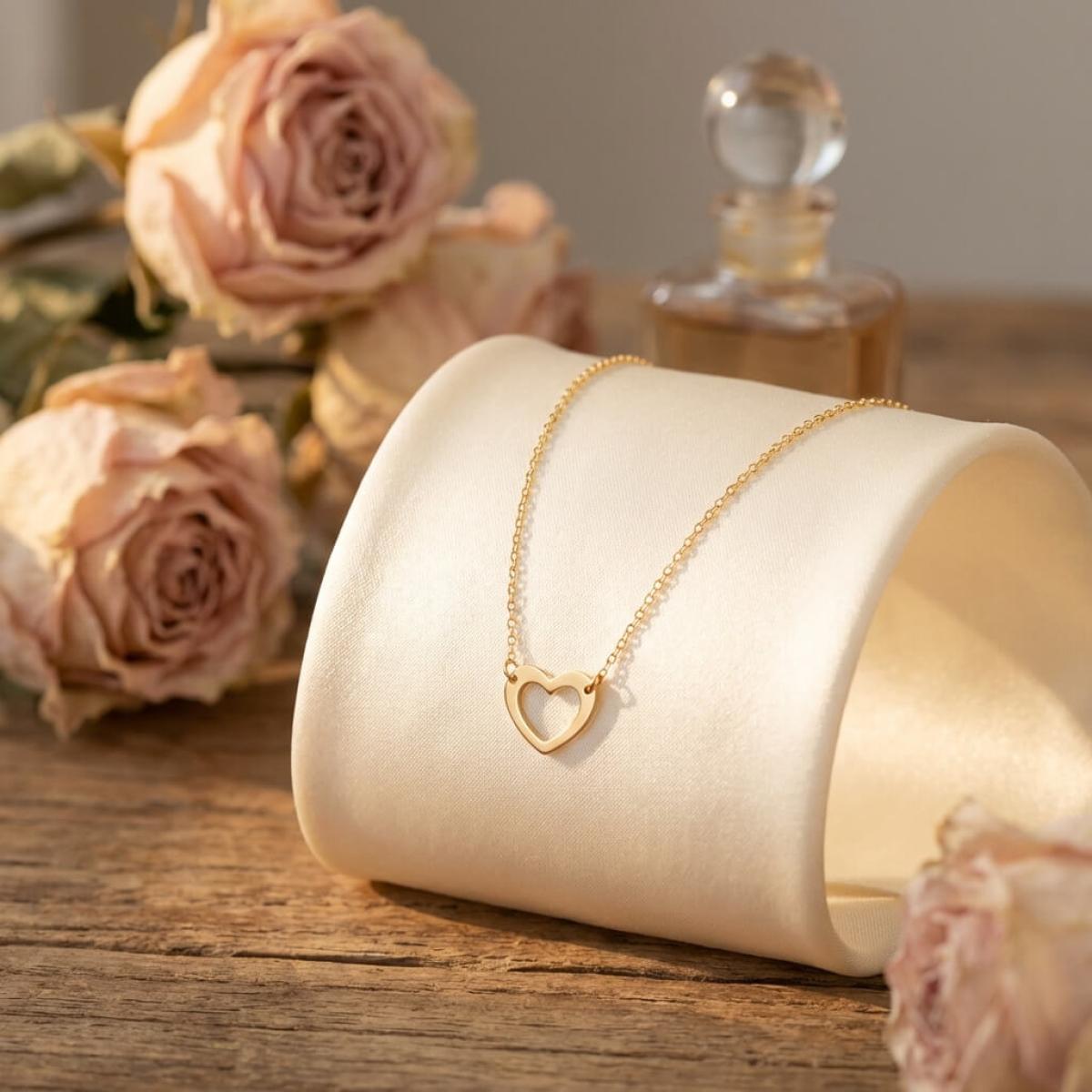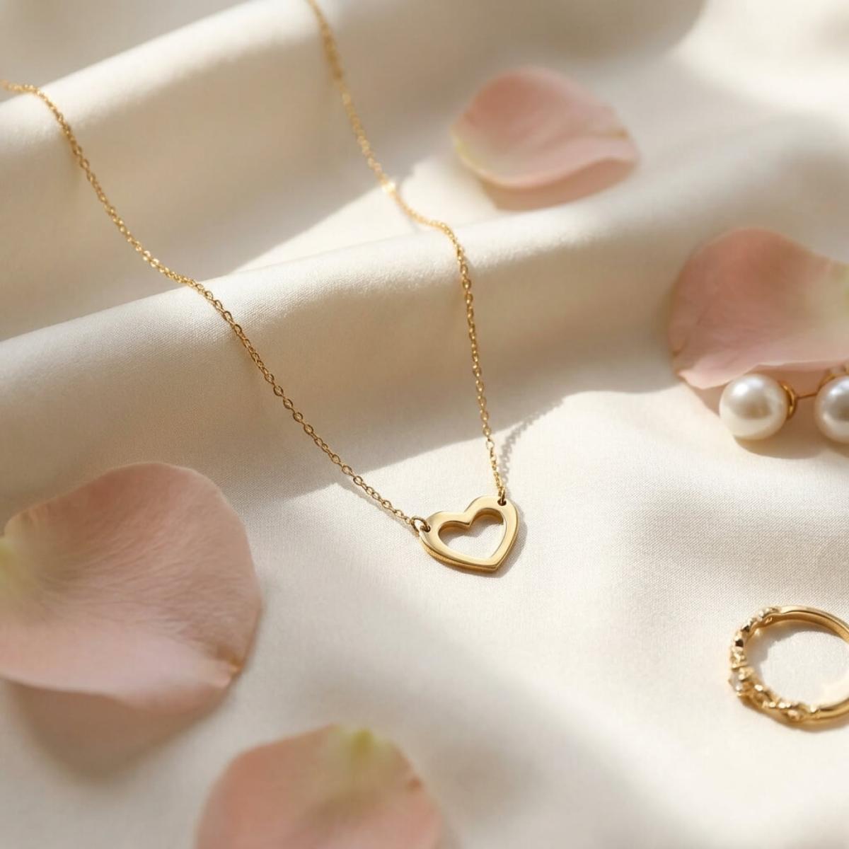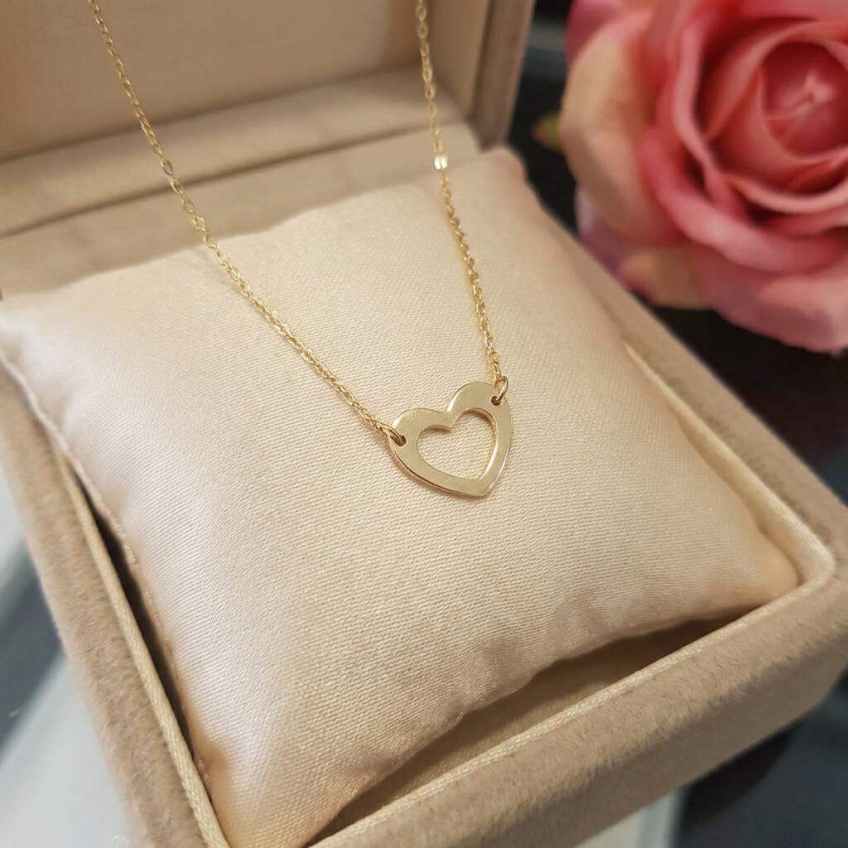 - Златно колие без камъни във формата на нежно сърце.
