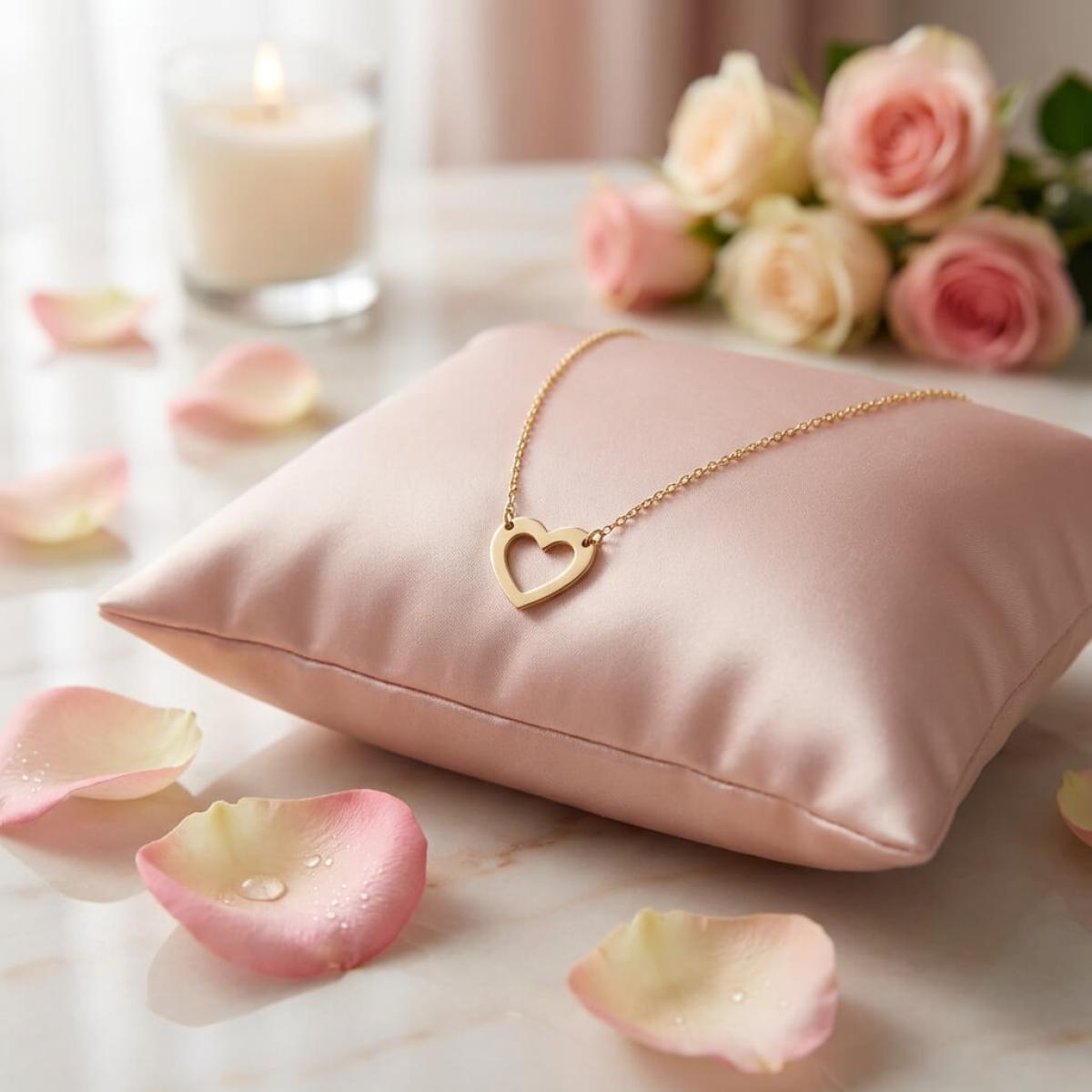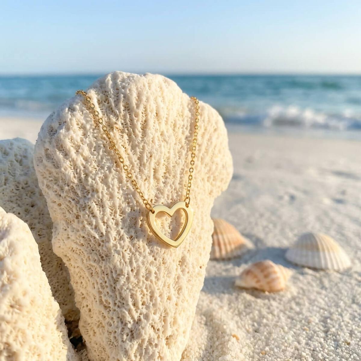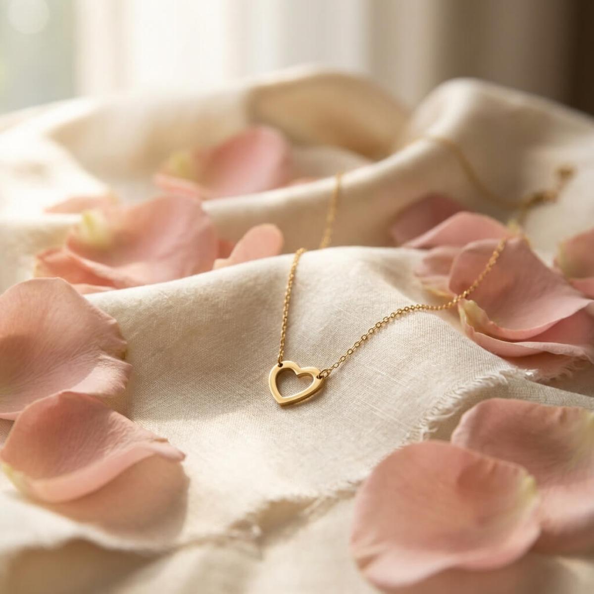 - Златно колие без камъни във формата на нежно сърце.