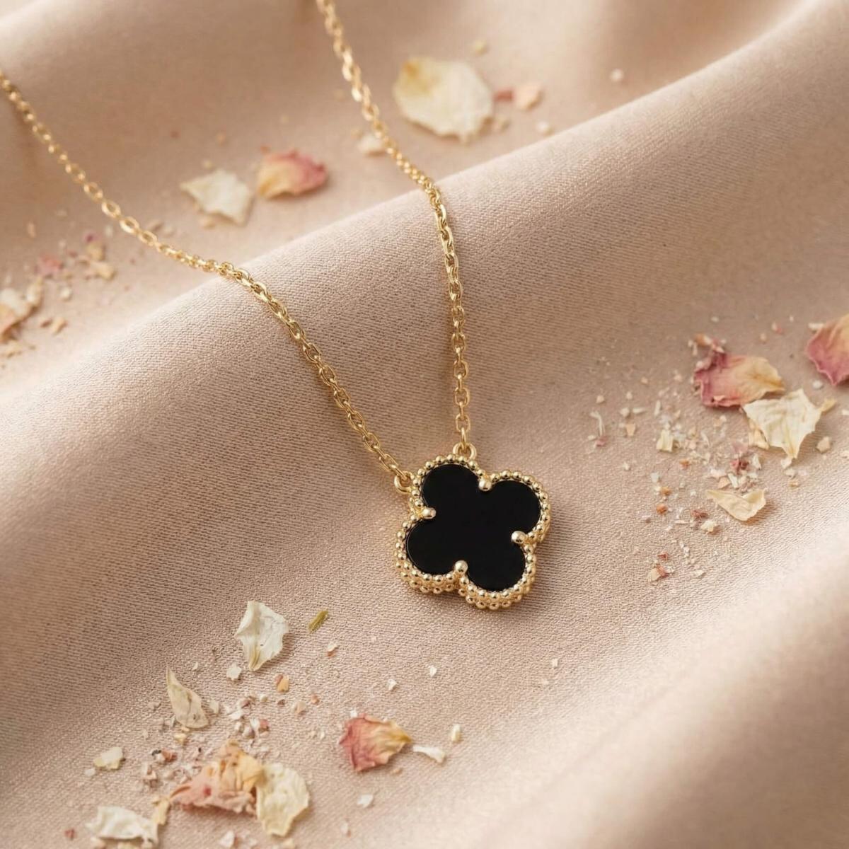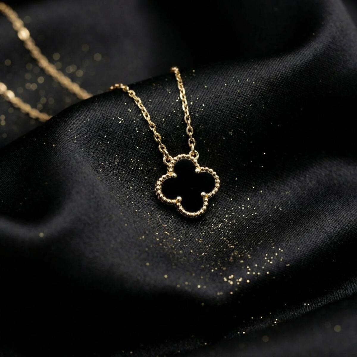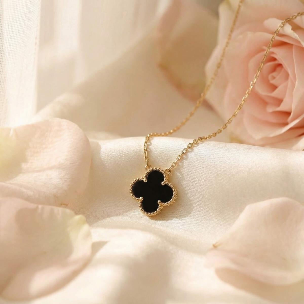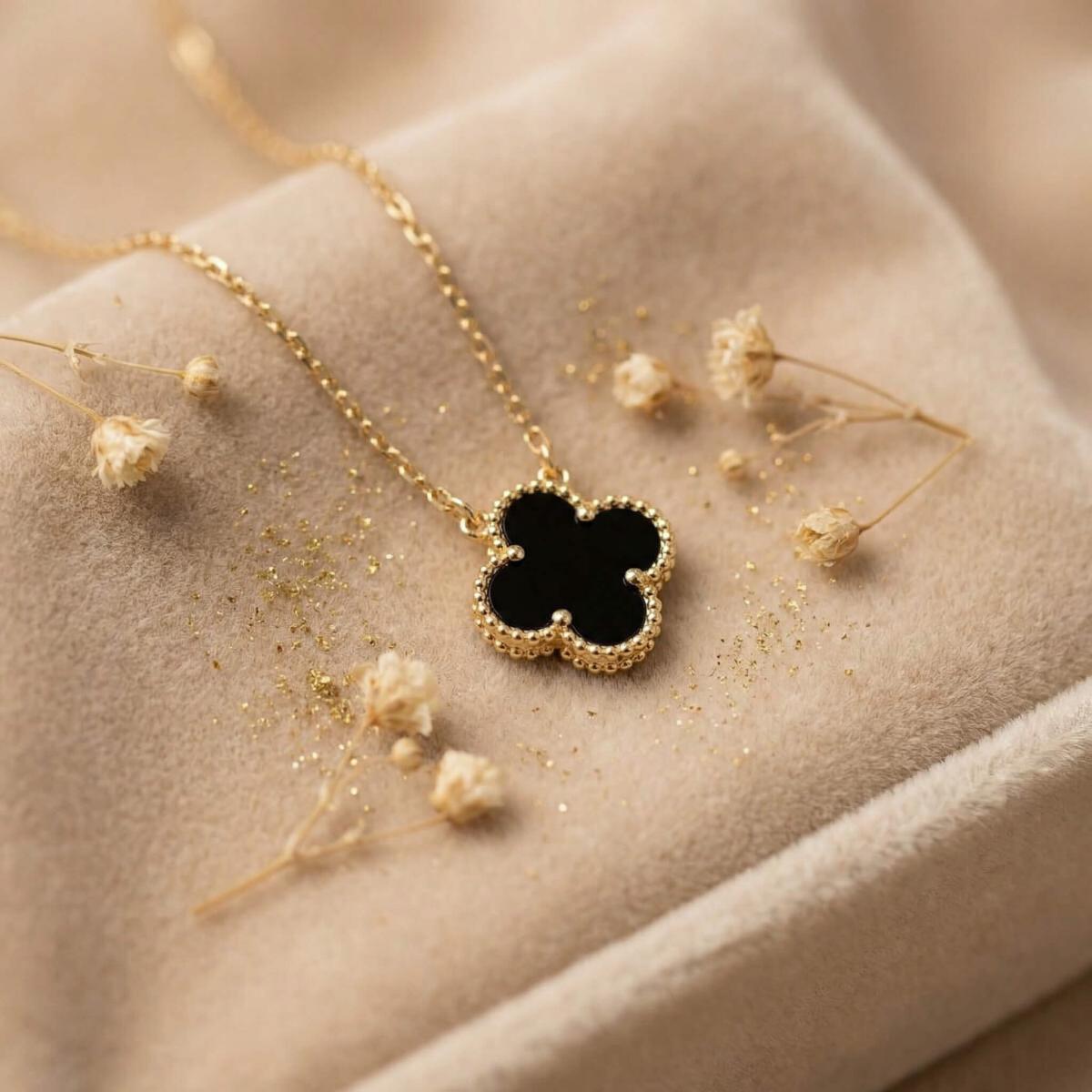 - Златно колие детелинка с оникс