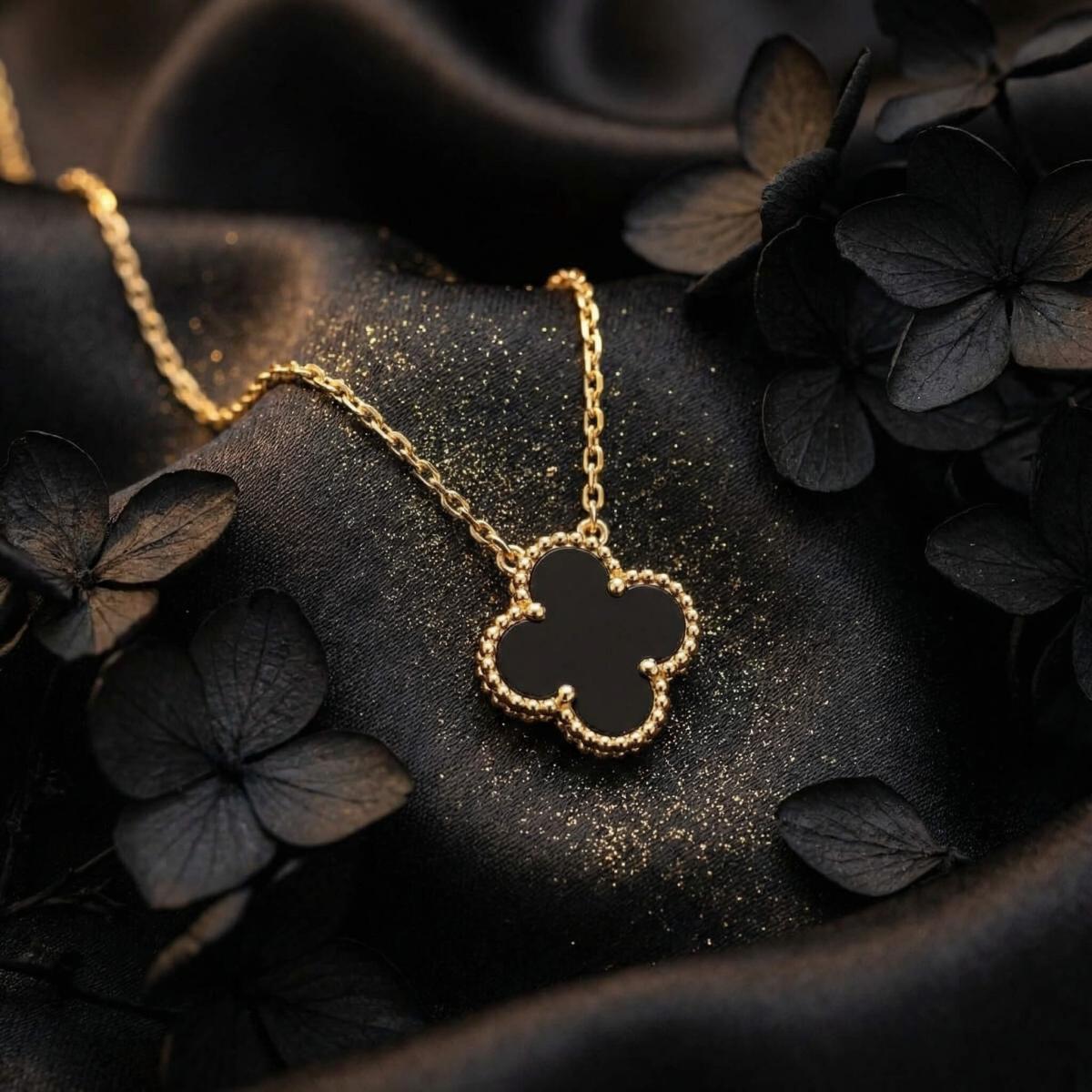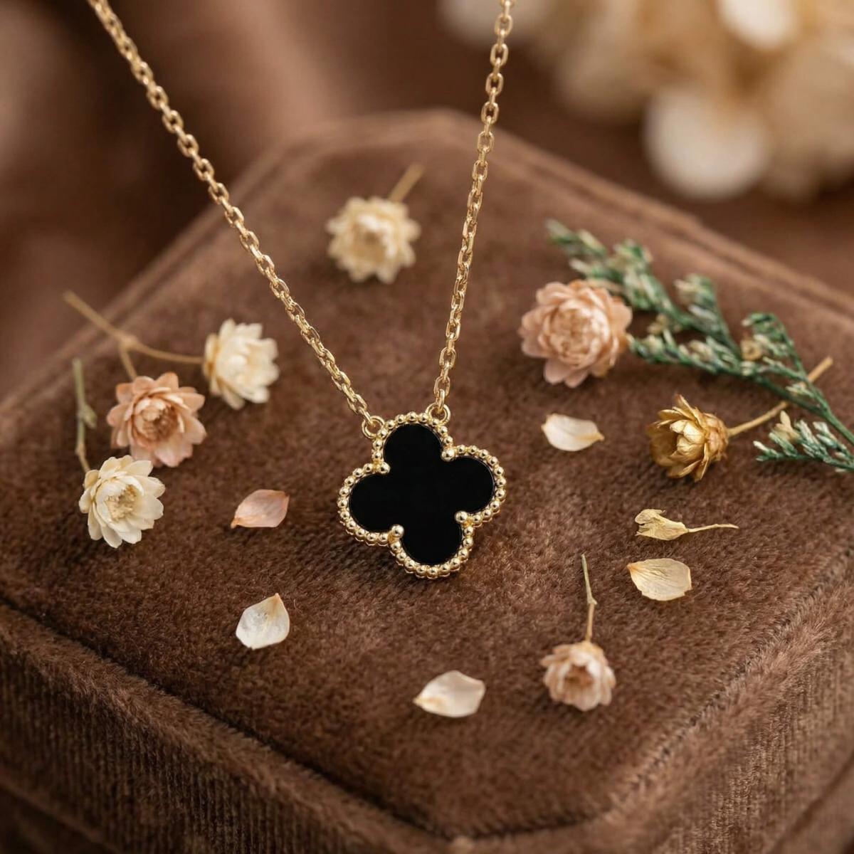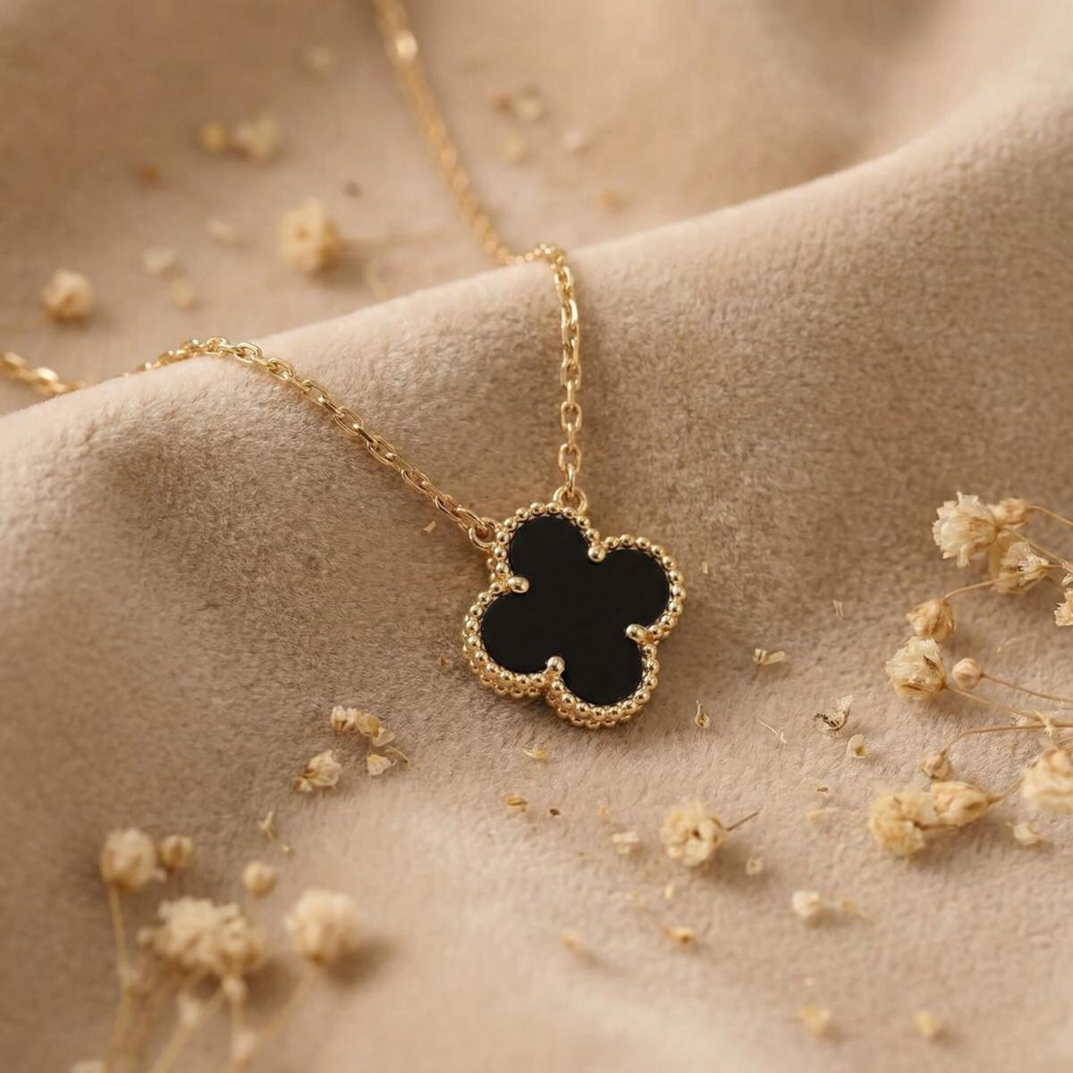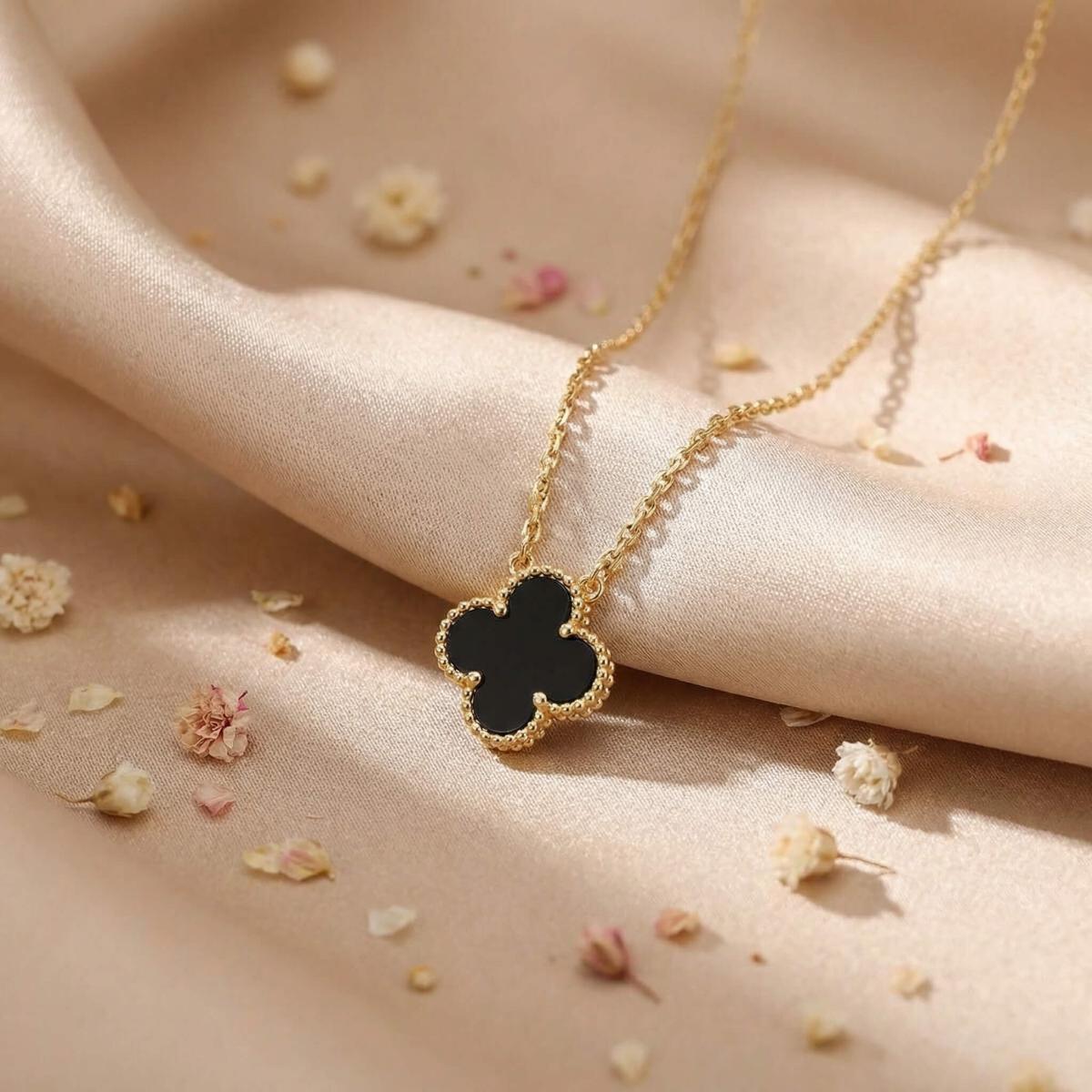 - Златно колие детелинка с оникс