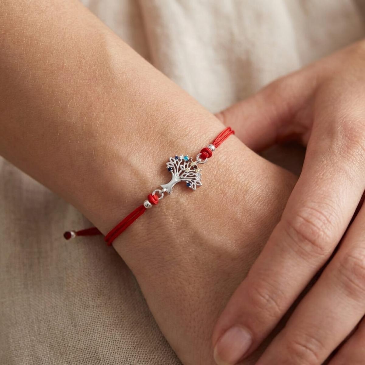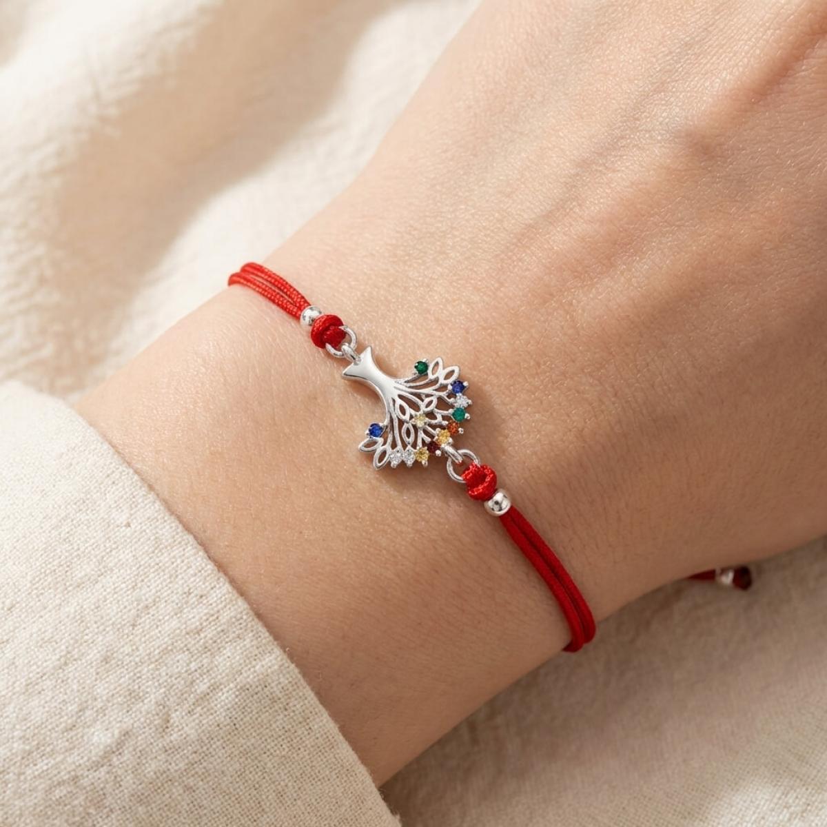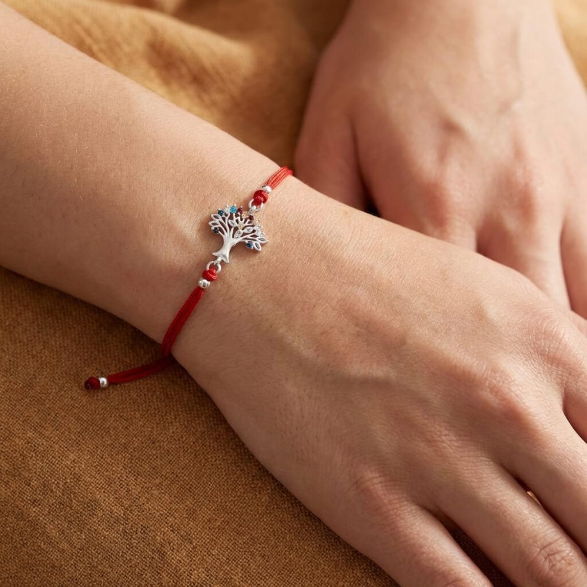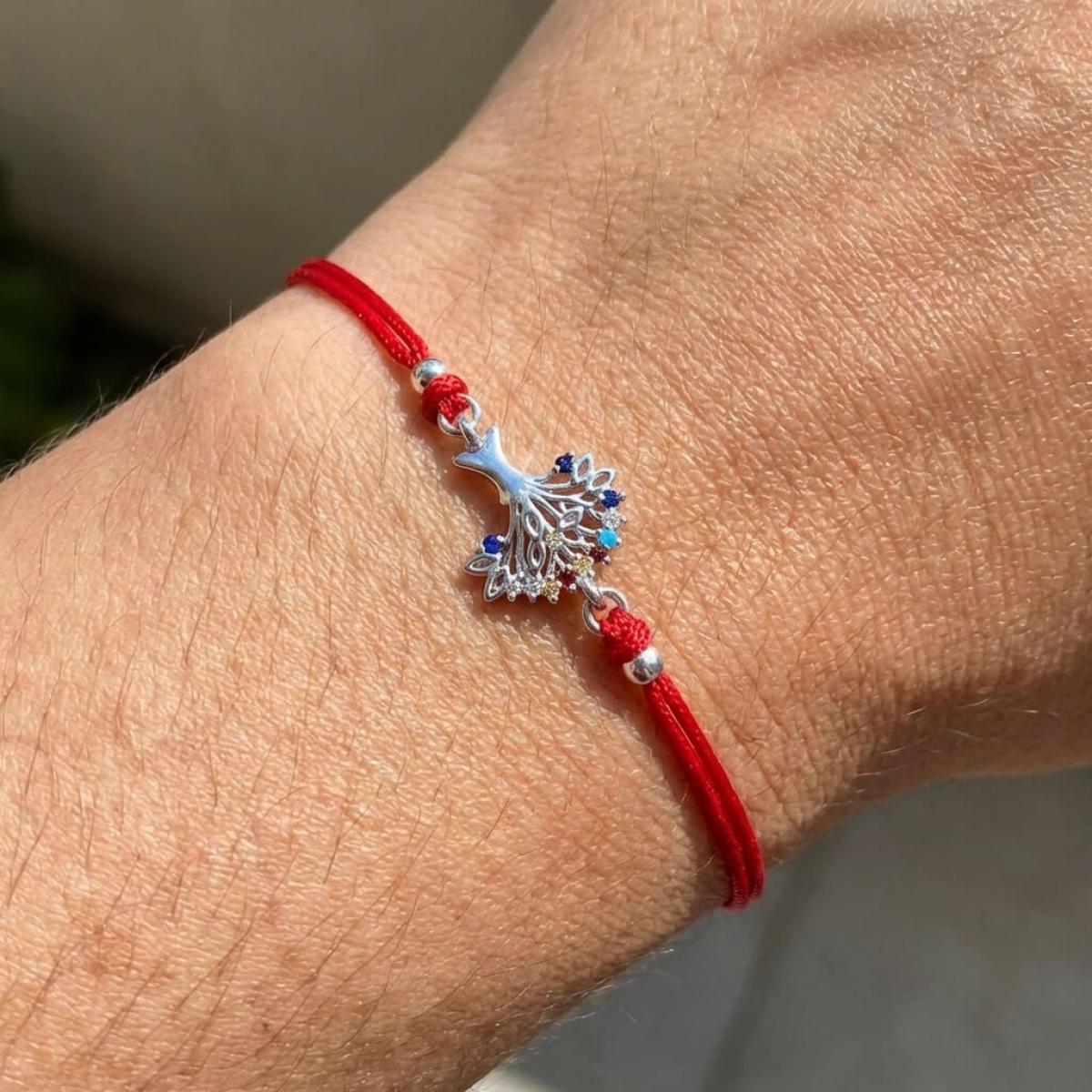 Гривна с червен конец и сребърен елемент Дървото на живота