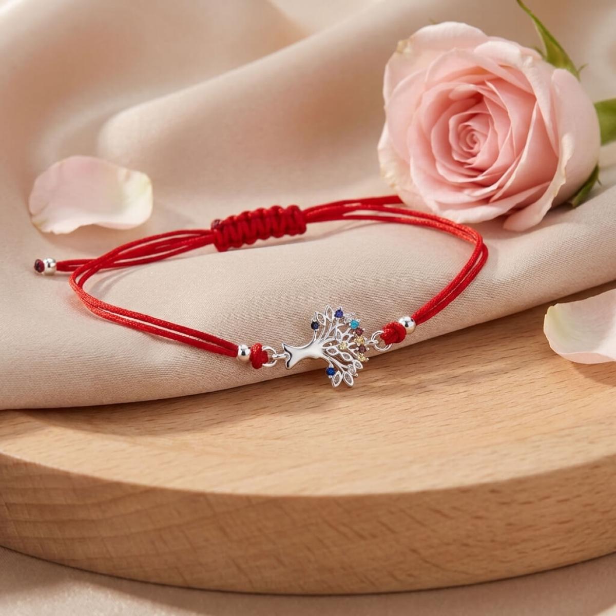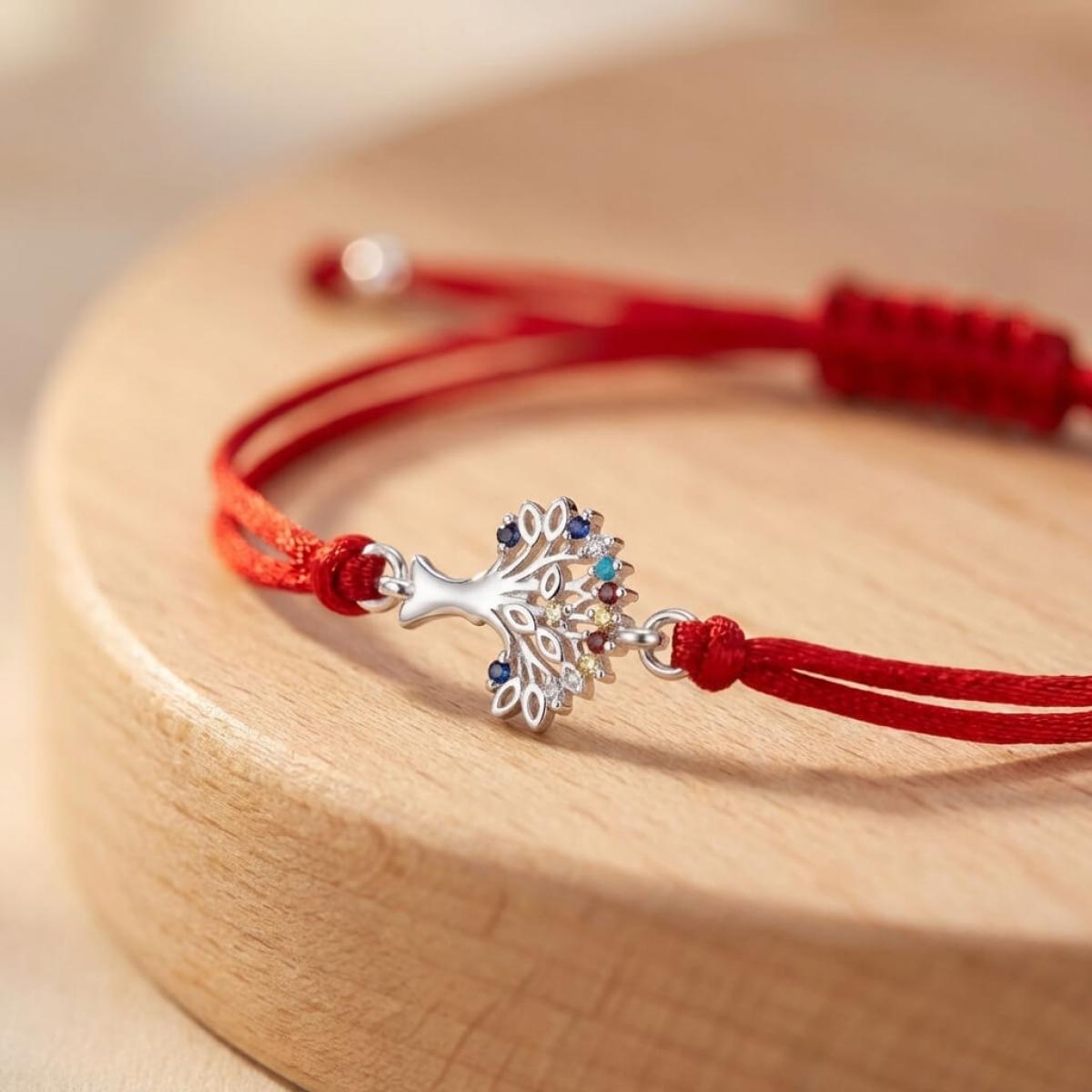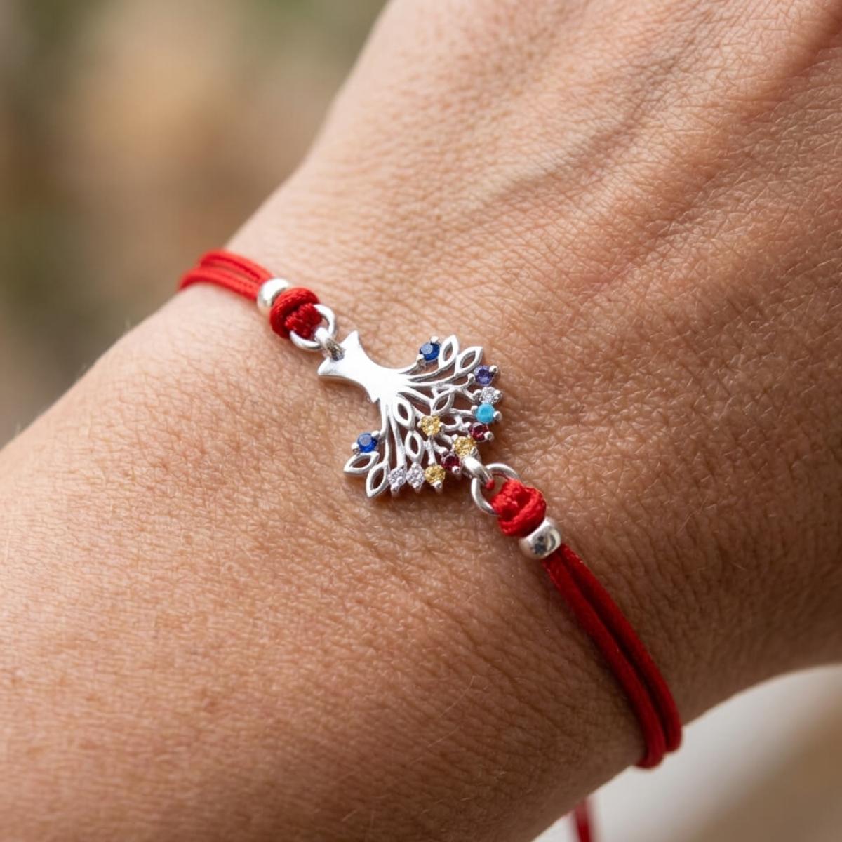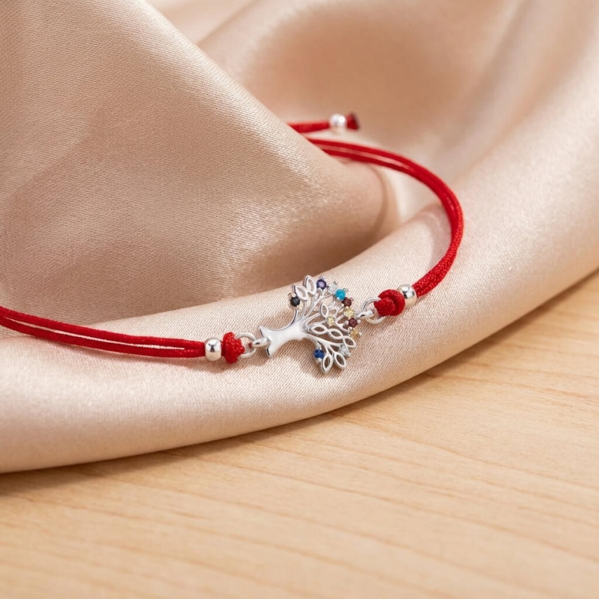 Гривна с червен конец и сребърен елемент Дървото на живота