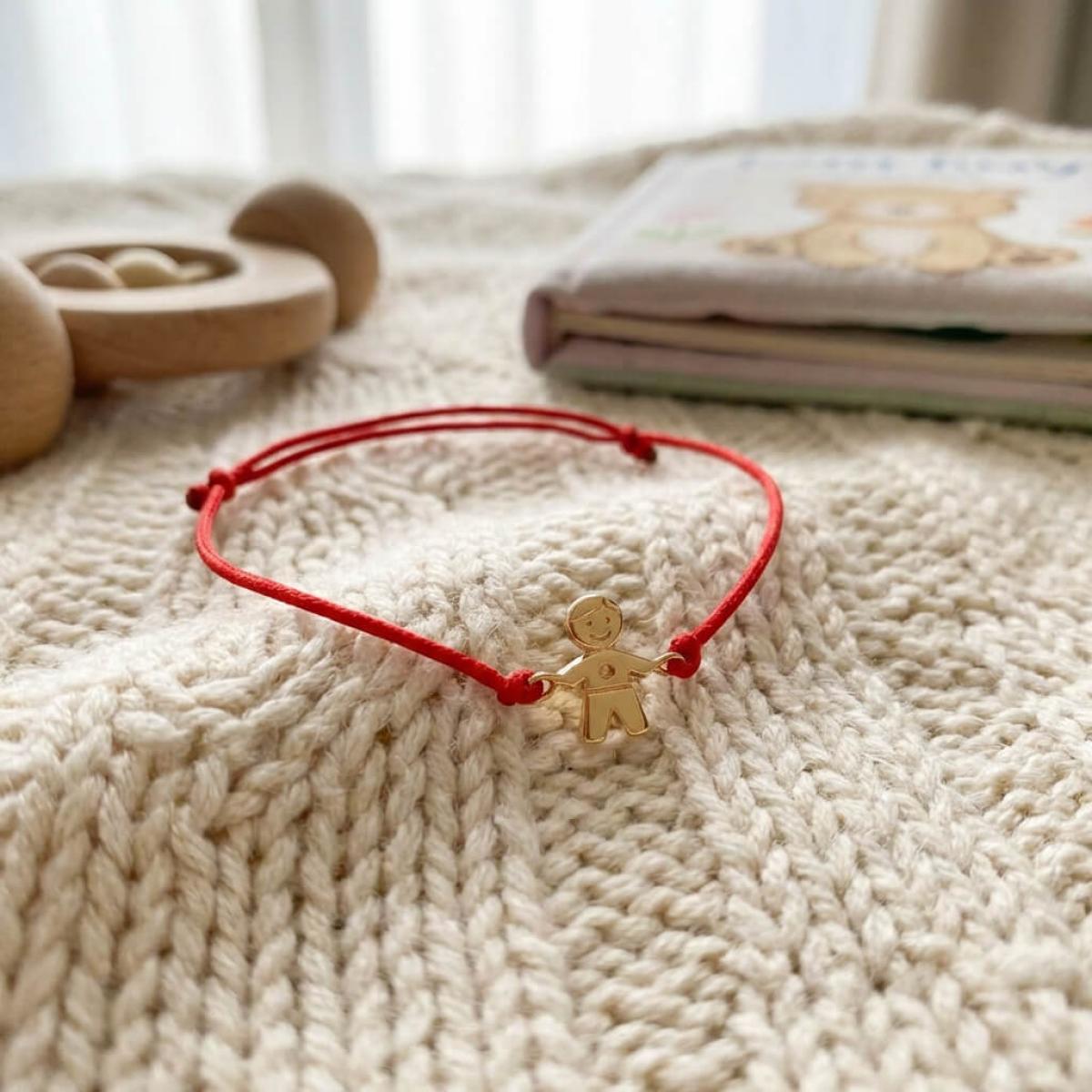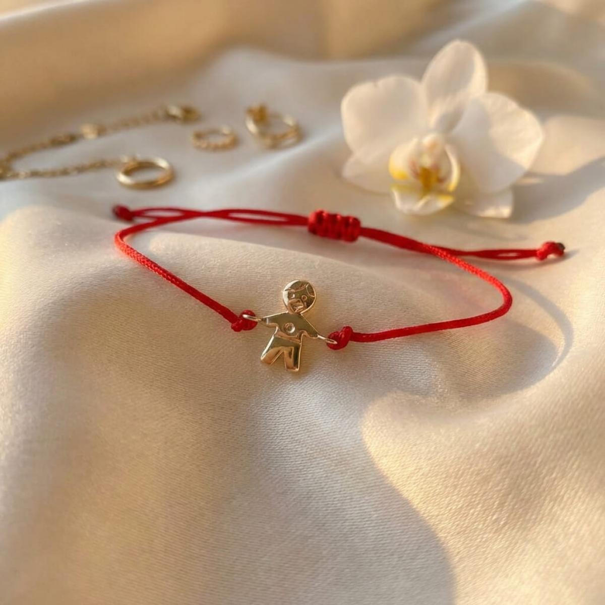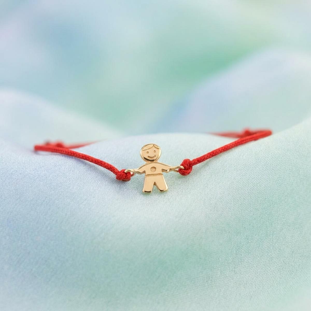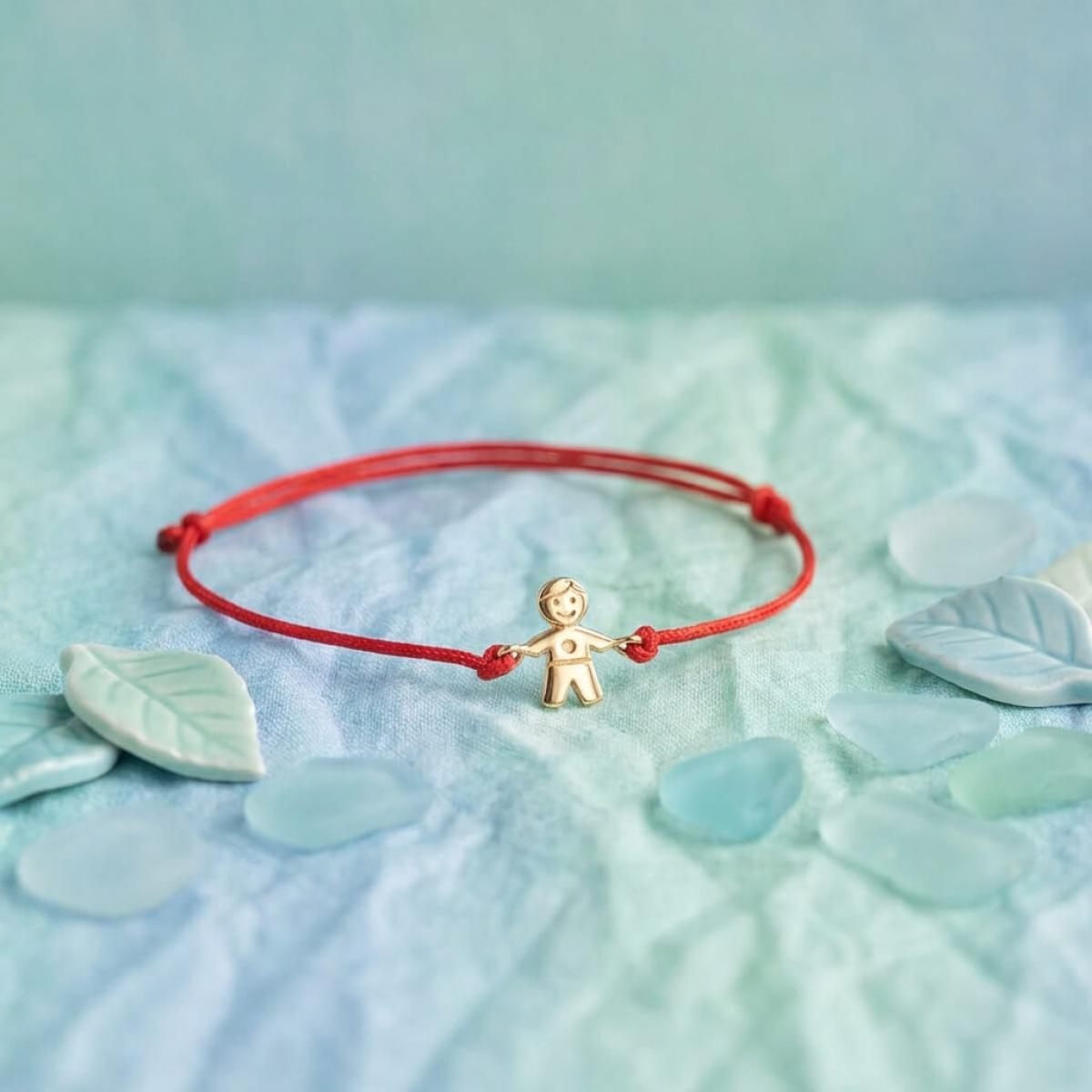 Гривна с червен конец и 14 карата златен елемент момче