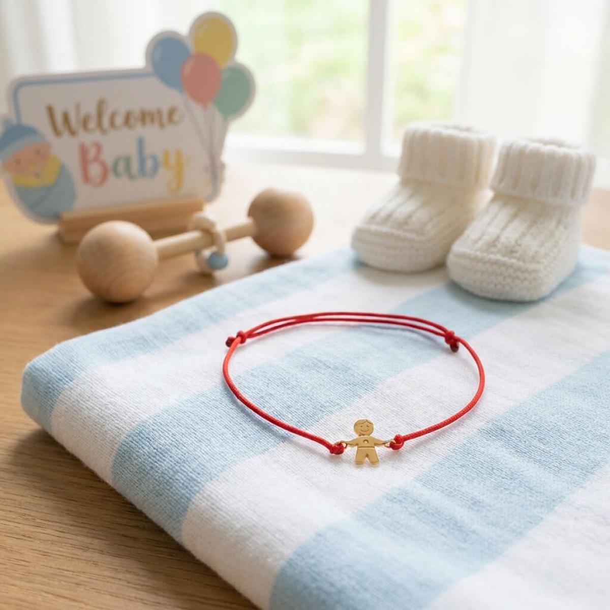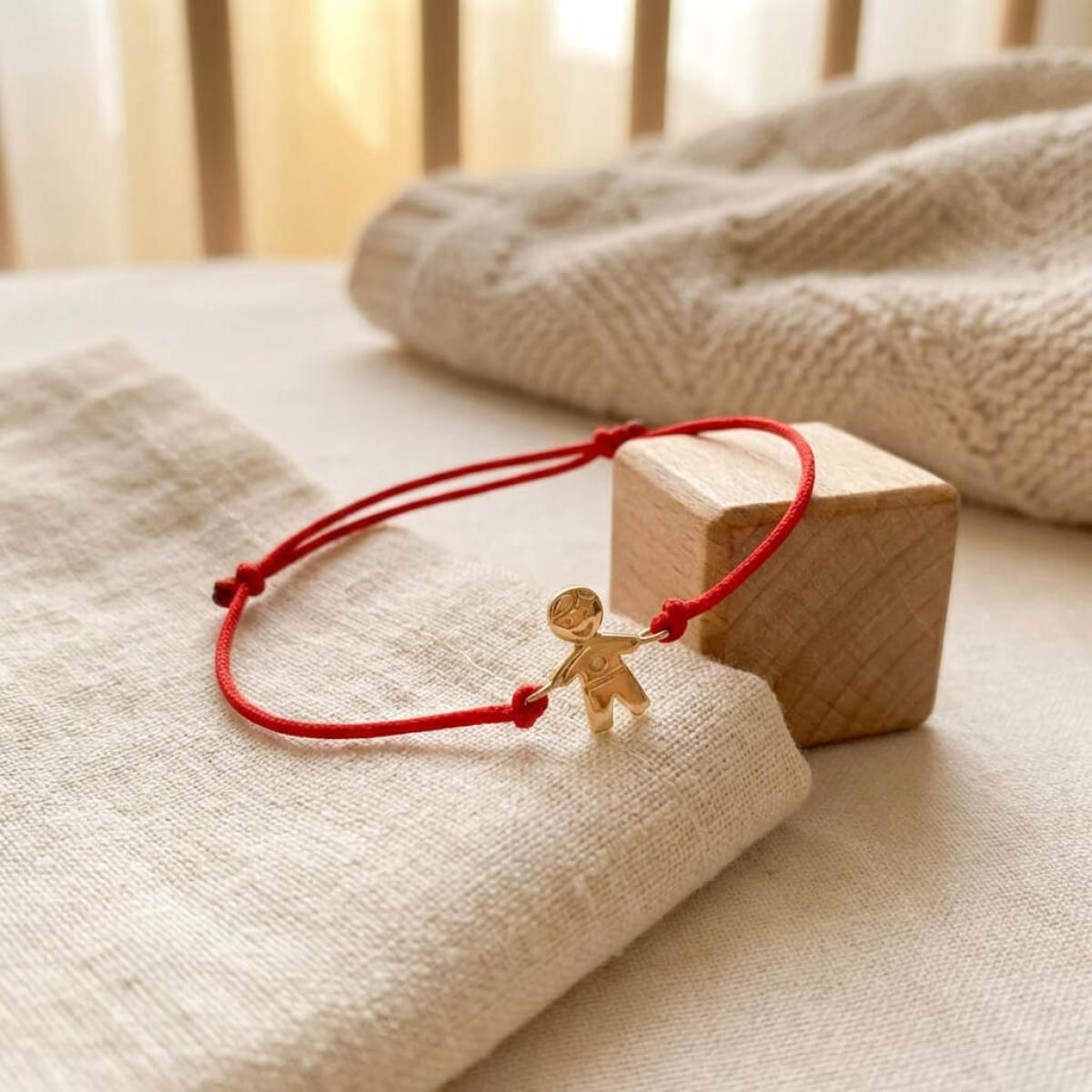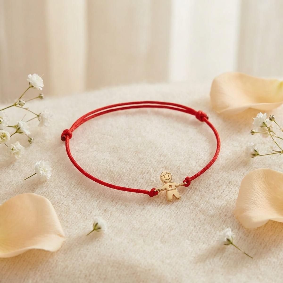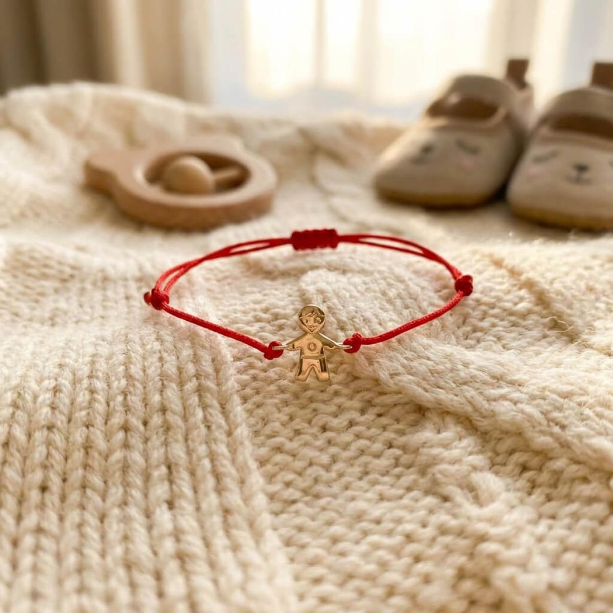 Гривна с червен конец и 14 карата златен елемент момче