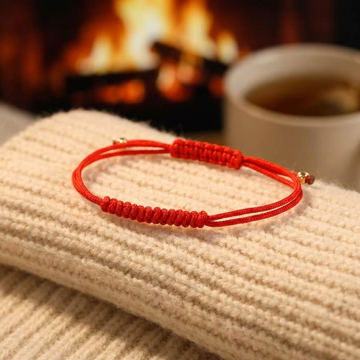Гривната е изработена от висококачествена връв в червено, която притежава много по-добри характеристики от обикновените памучни и вълнени конци, използвани от нашите баби със същата цел. Връвта е изплетена от висококачествени синтетични нишки в здрава, но същевременно фина оплетка.