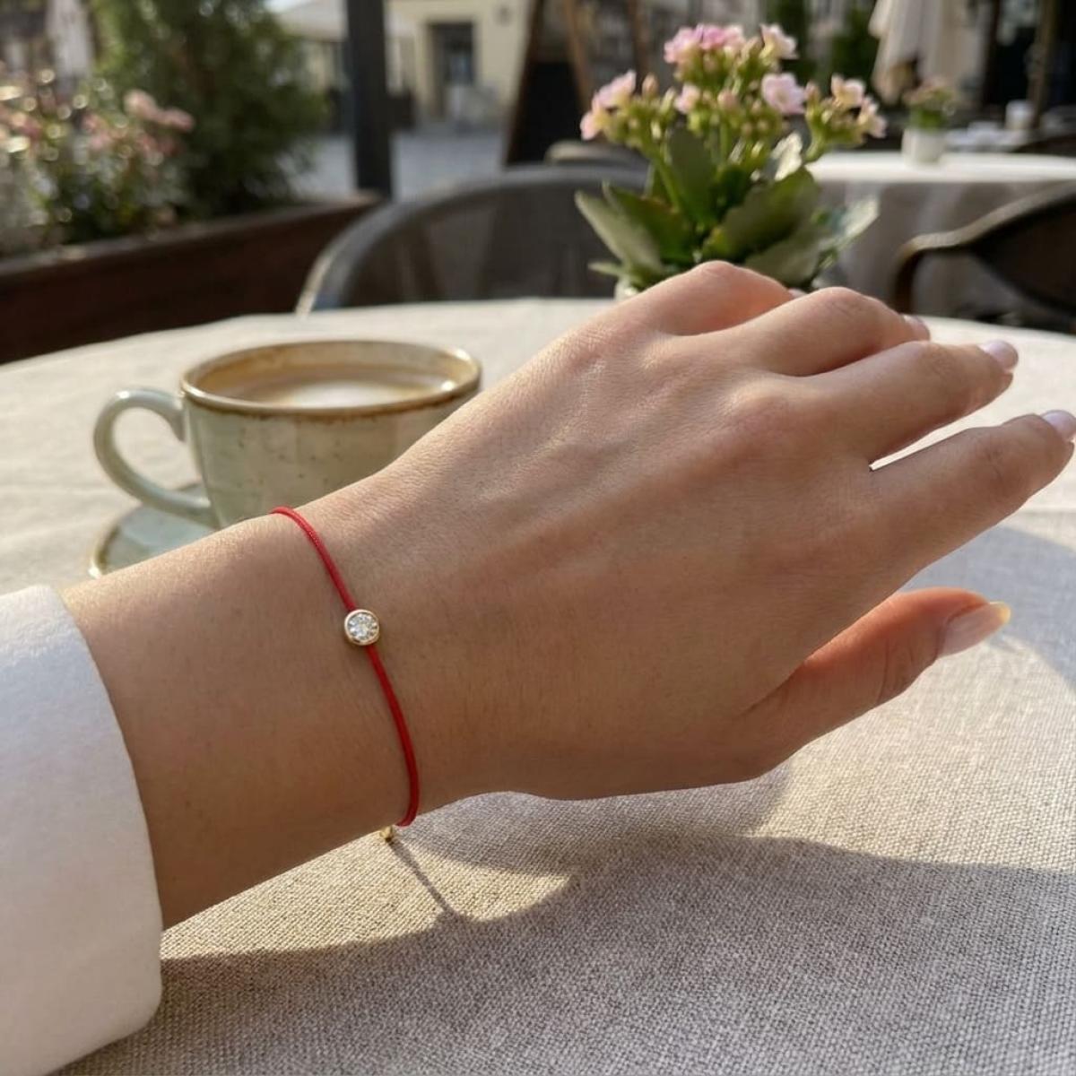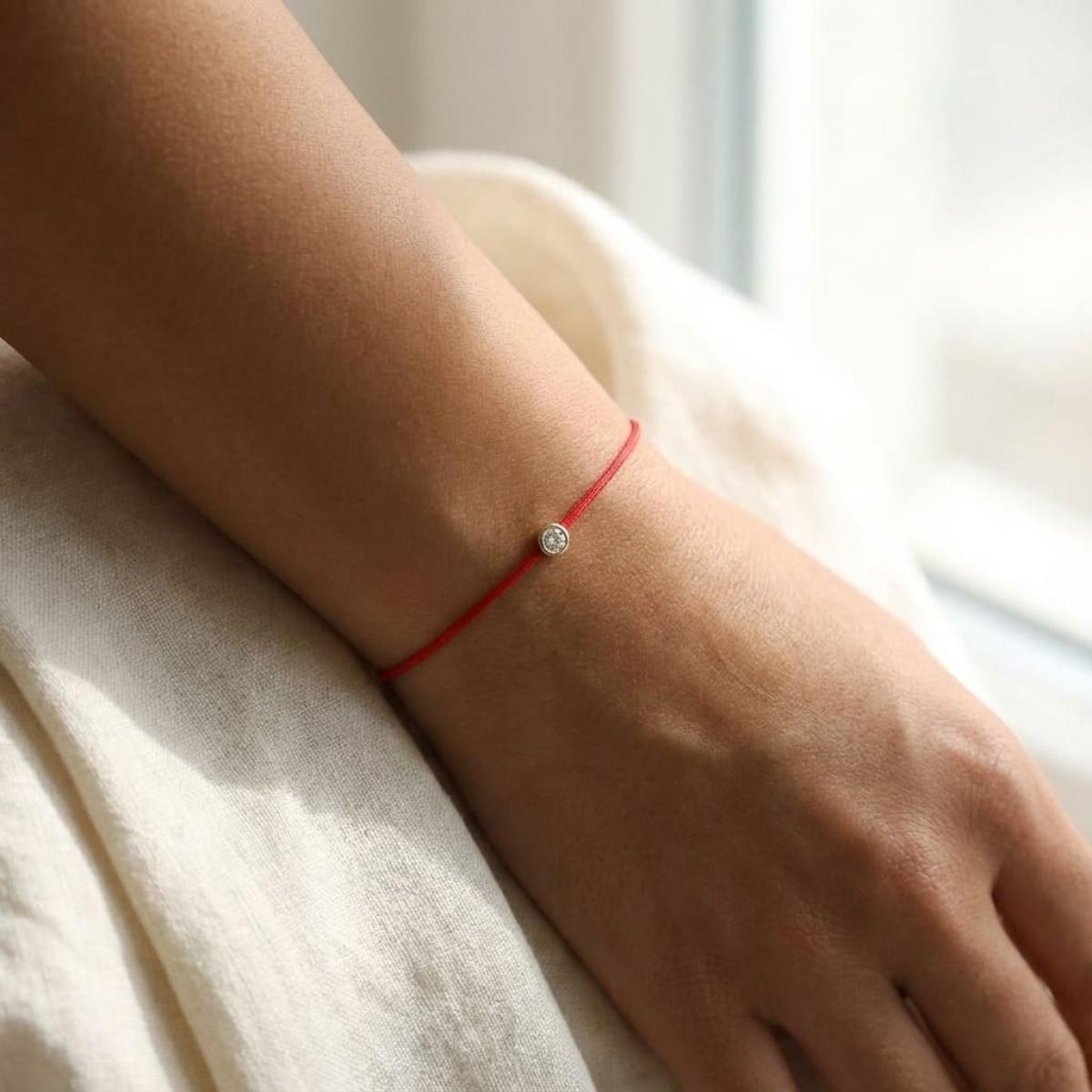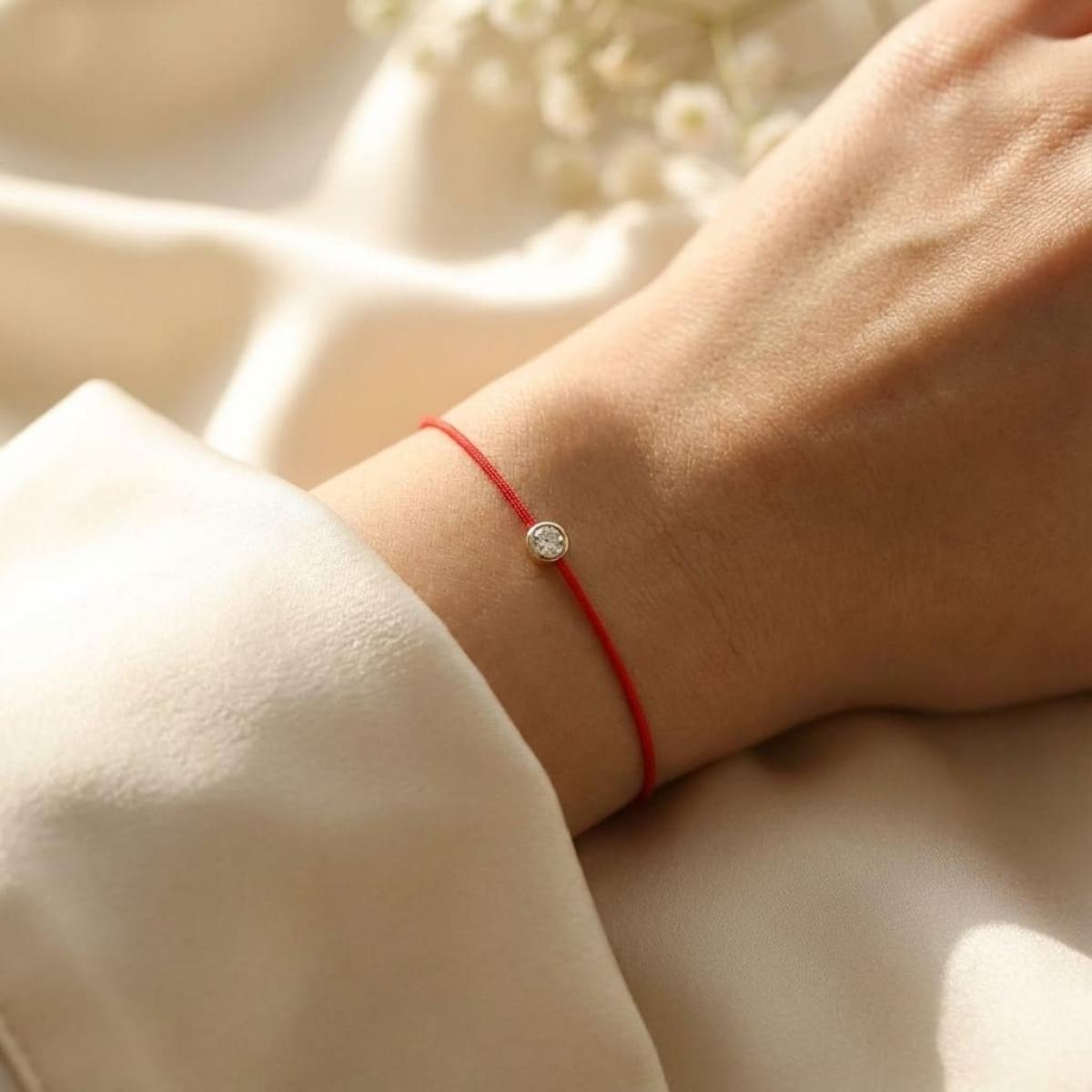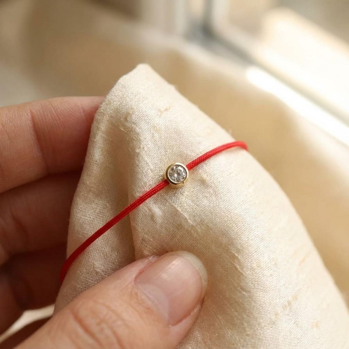 Гривна с червен конец и диамант