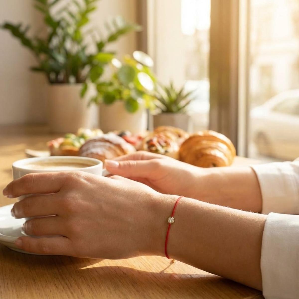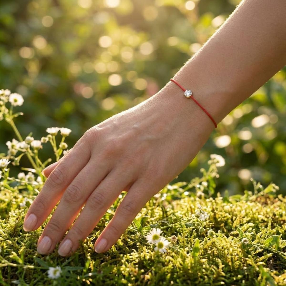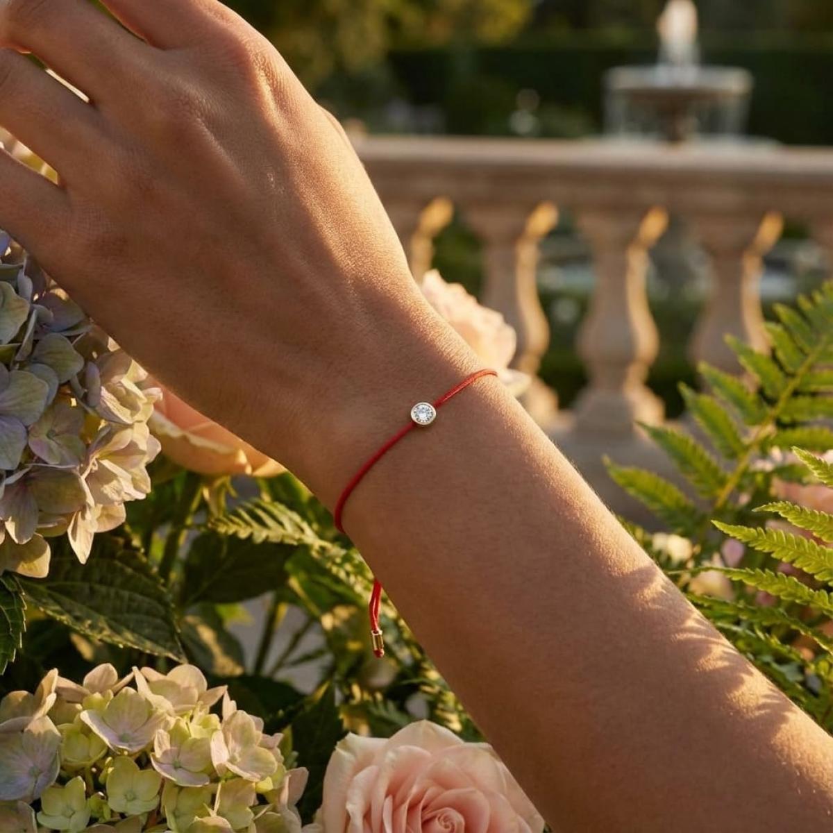 Нежна и стилна гривна, изработена с внимание към детайла — червен конец, символ на защита, любов и късмет, в съчетание с естествен диамант, поставен в златнакаса. Минималистична и елегантна, тази гривна е перфектен подарък за любим човек или за себе си като амулет с послание.