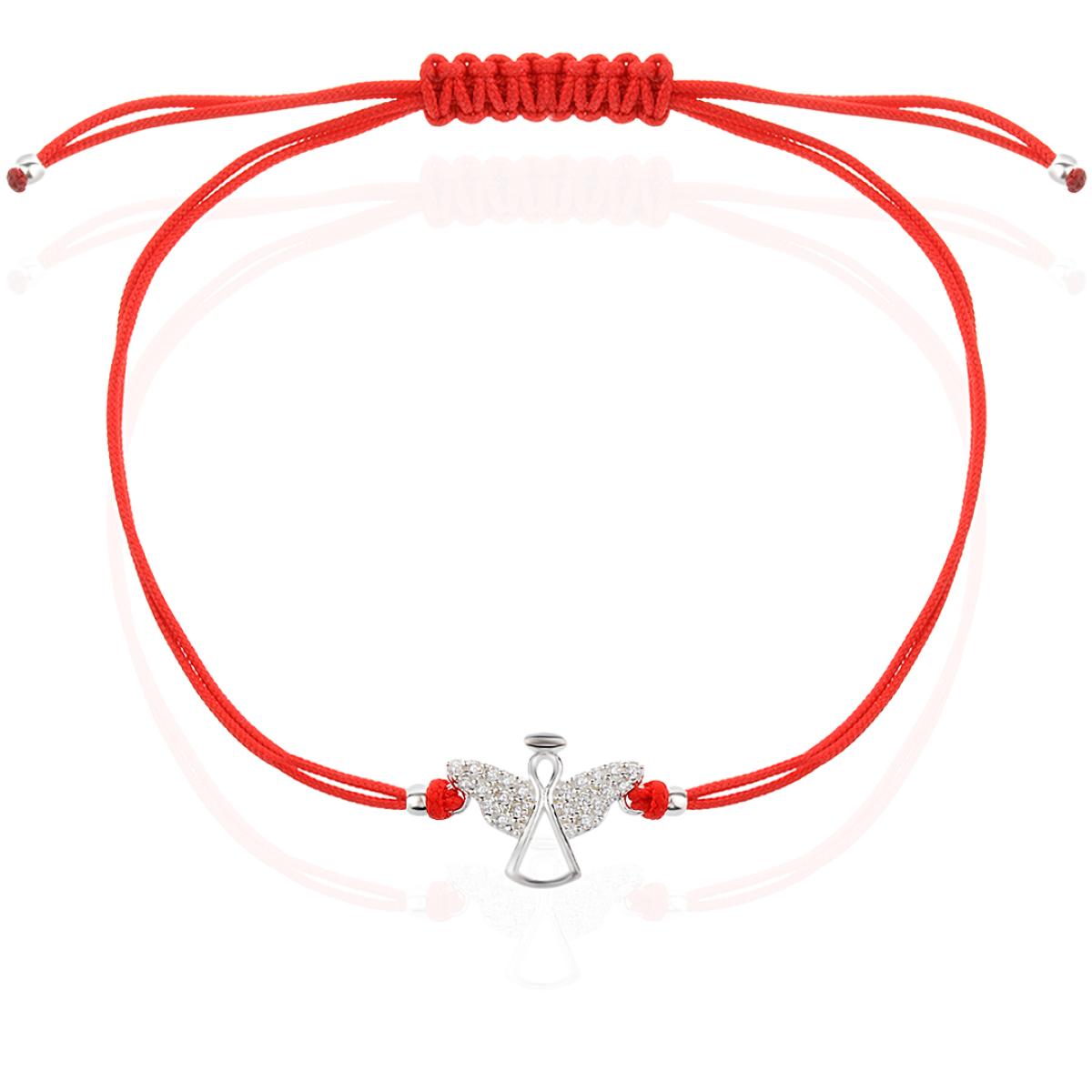 Гривна с червен конец и сребърен елемент ангелче с циркони BT112