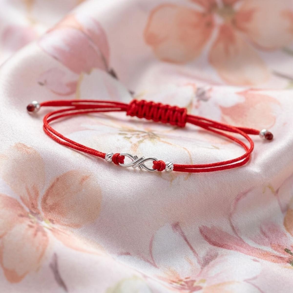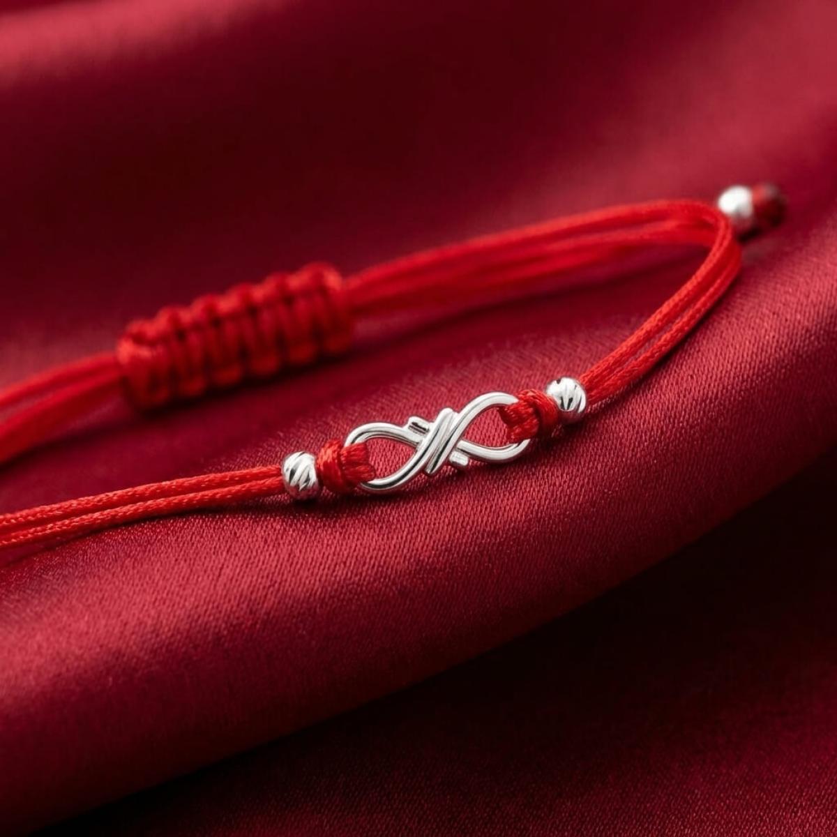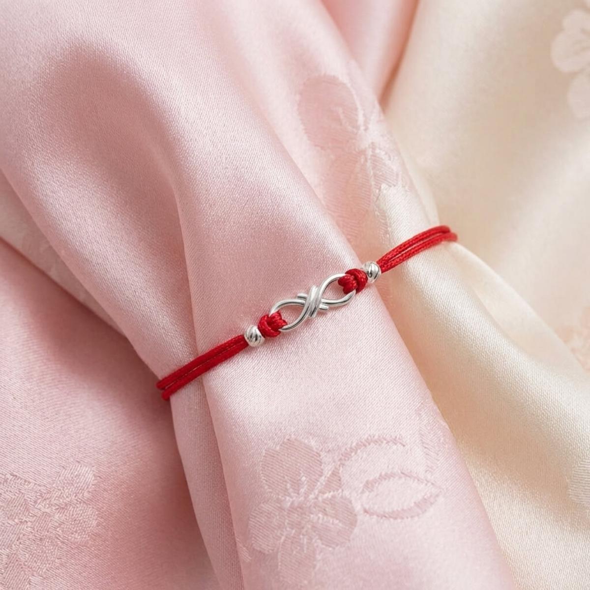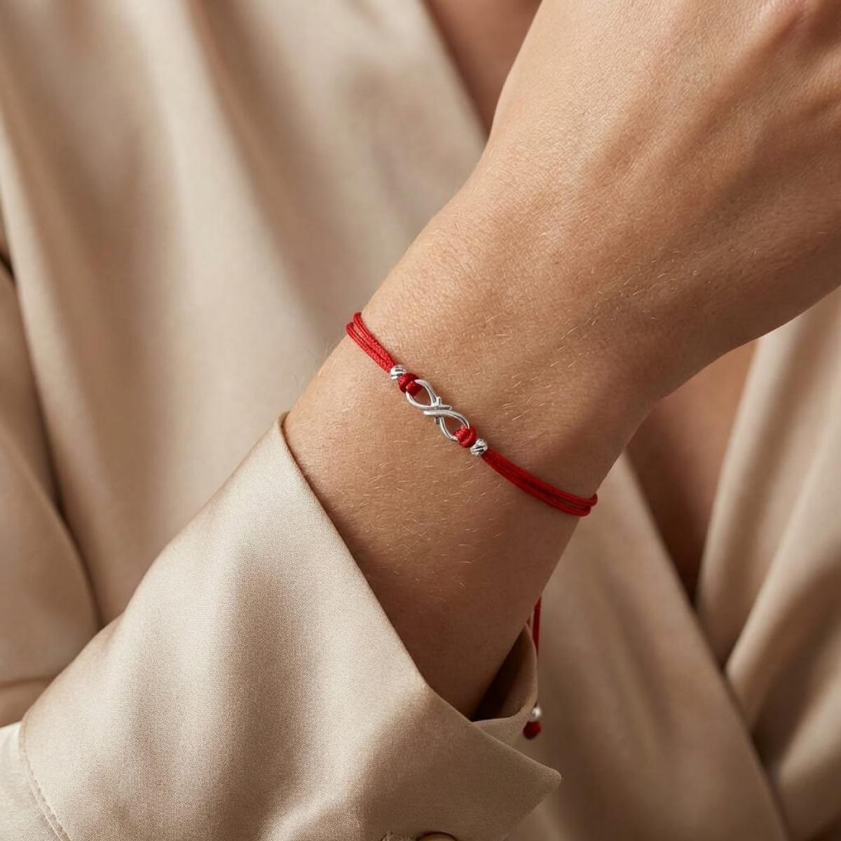 Гривна с червен конец и сребърен елемент безкрайност