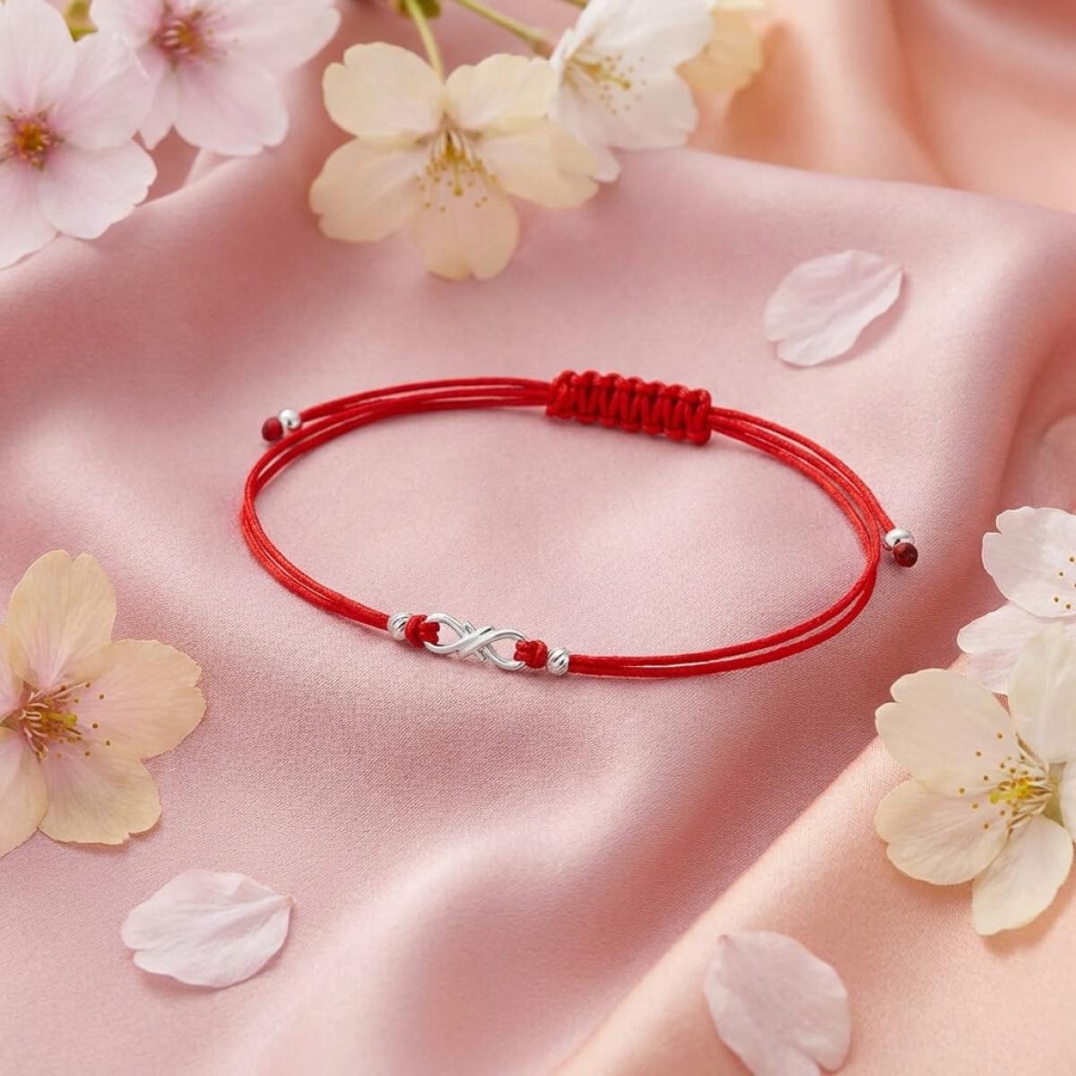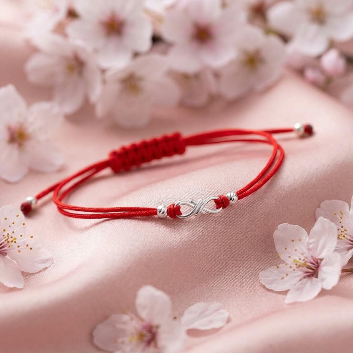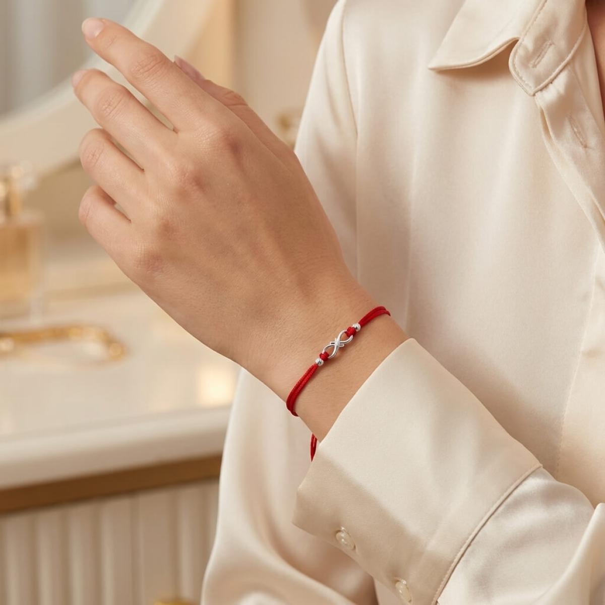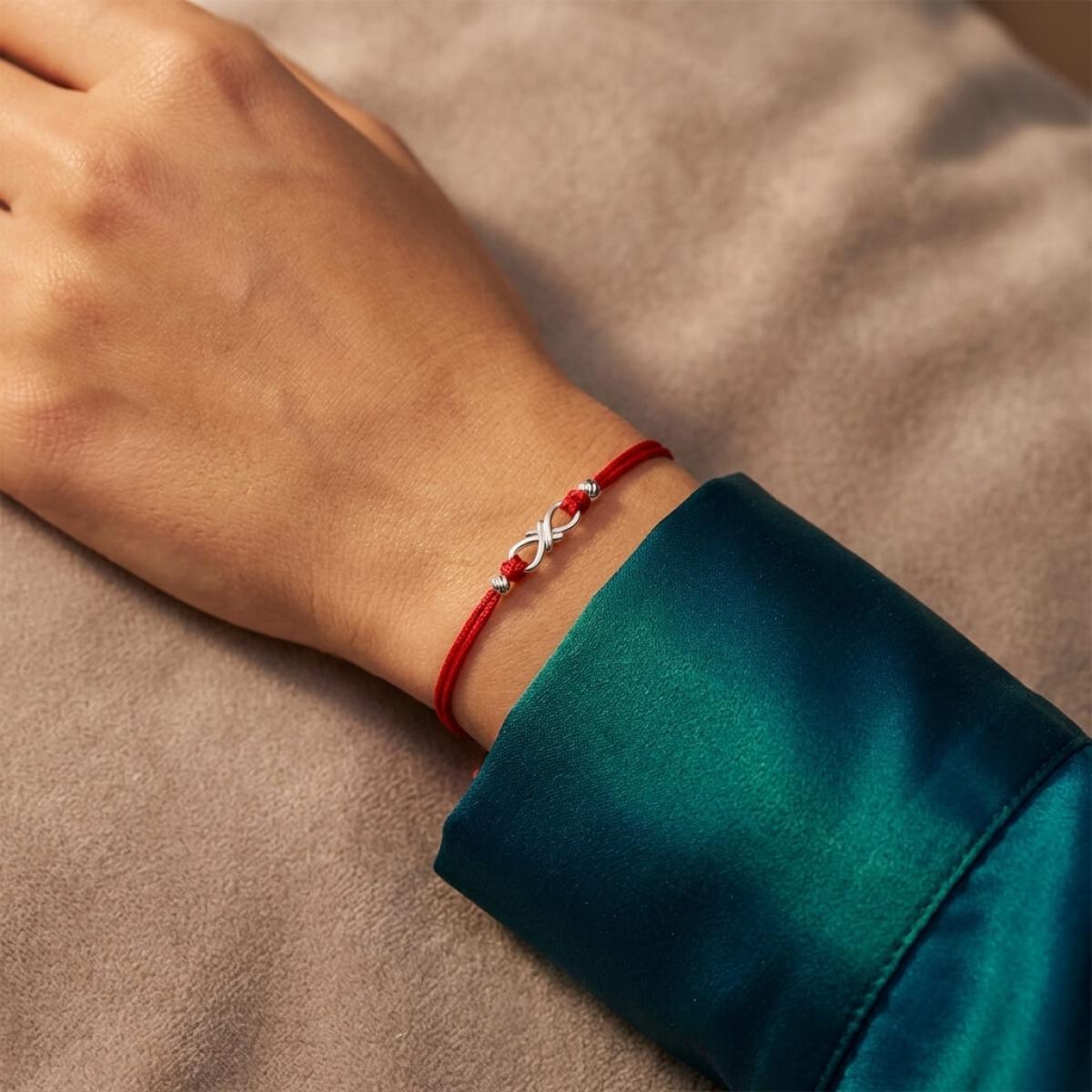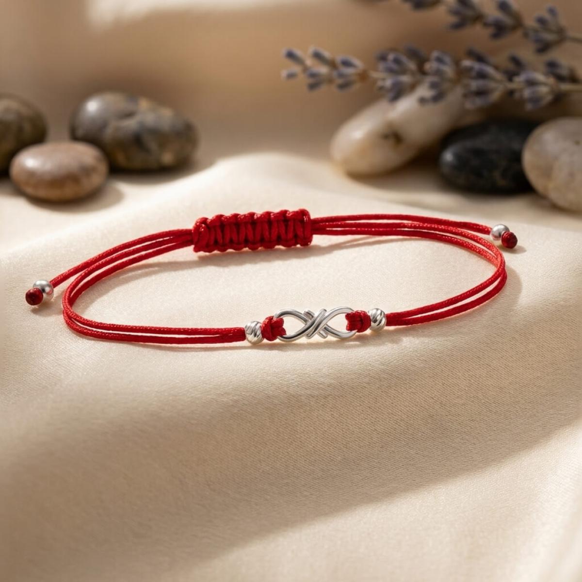 Гривна с червен конец и сребърен елемент безкрайност