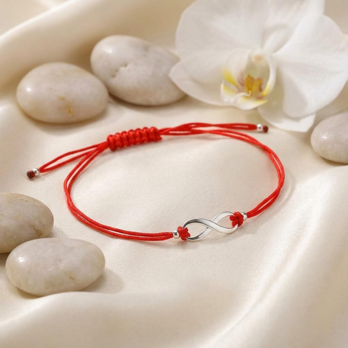 Гривна с червен конец и сребърен елемент безкрайност В93S