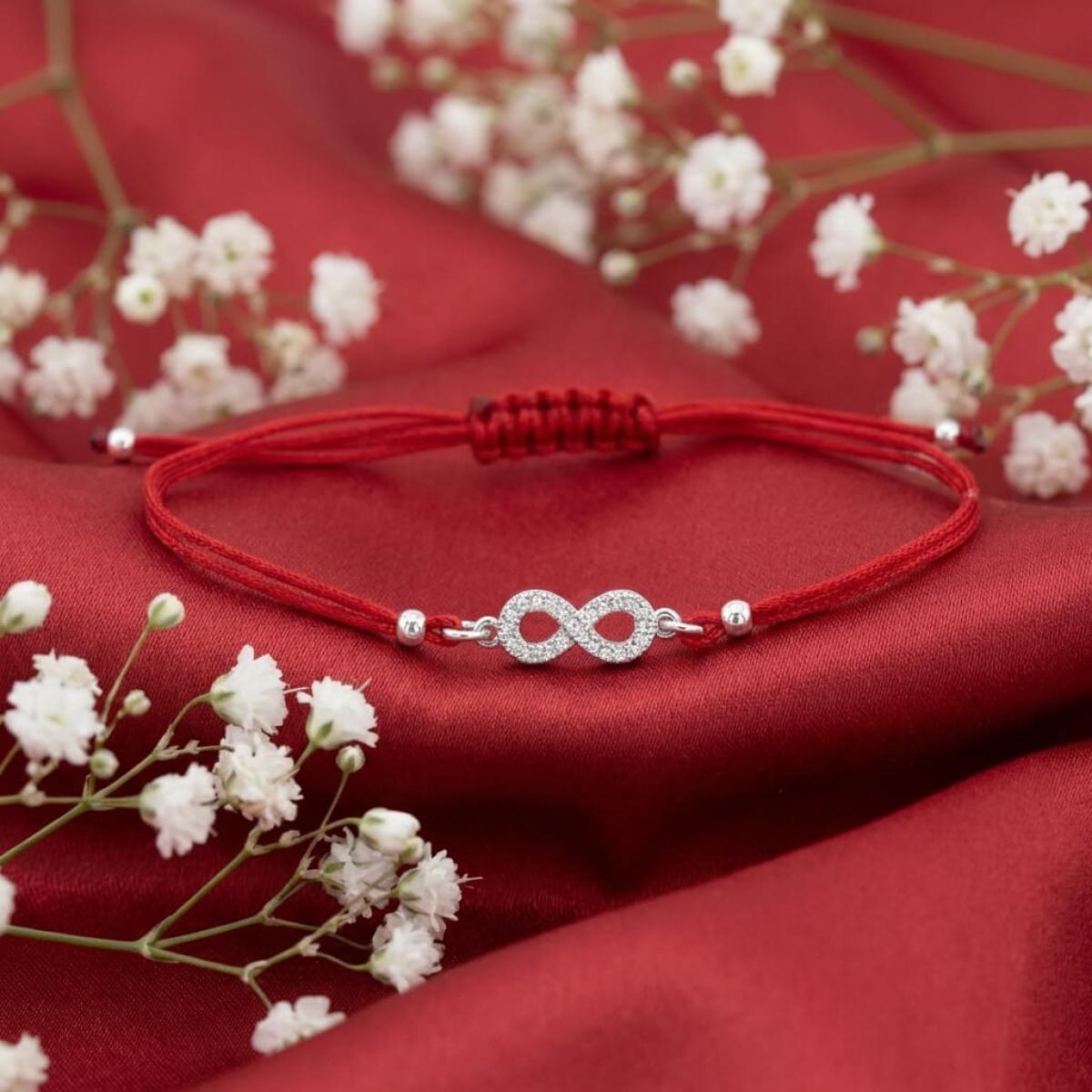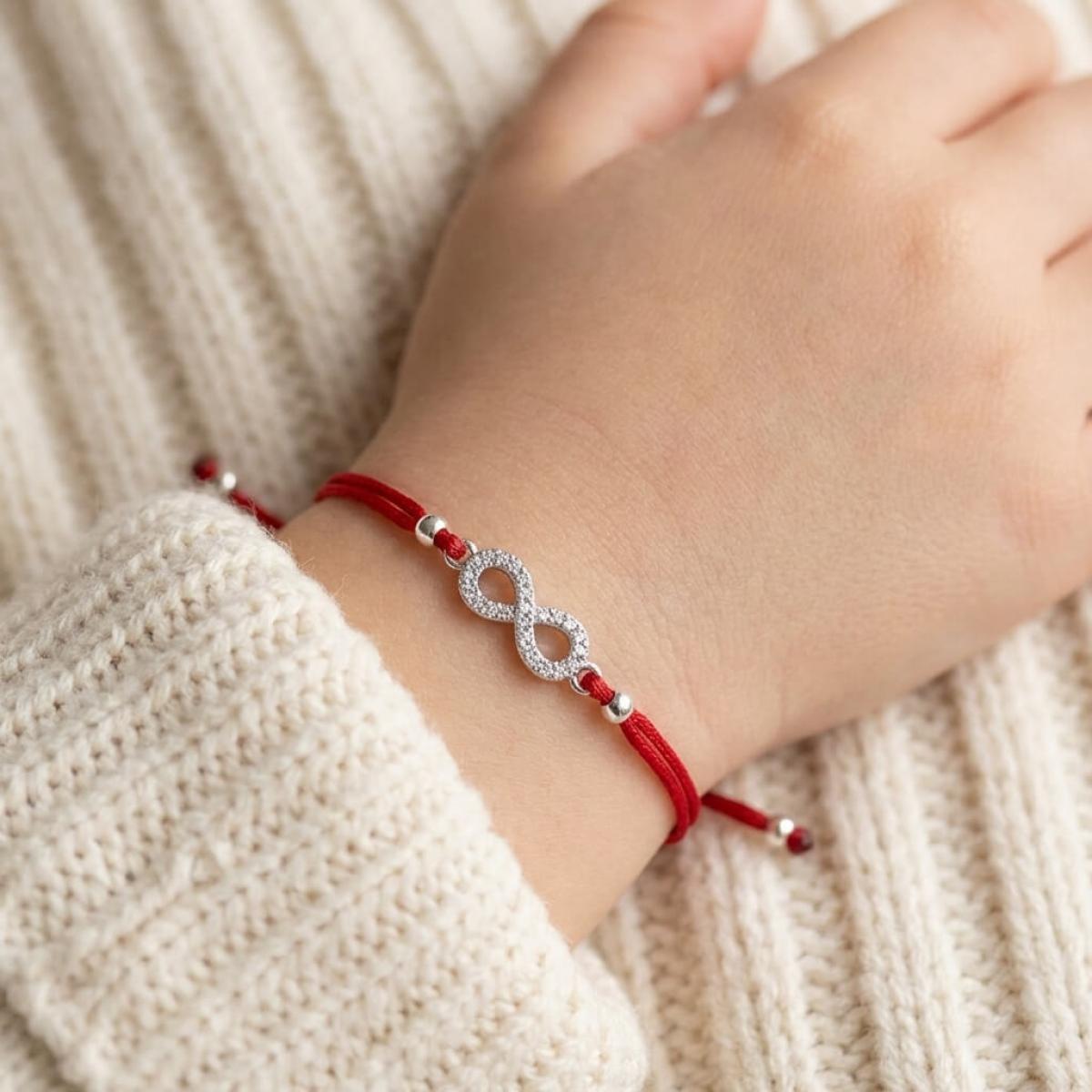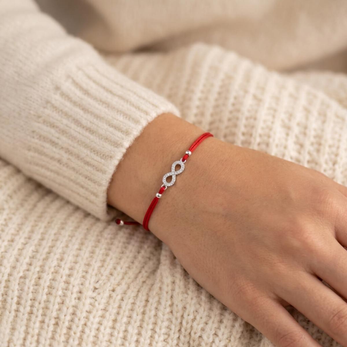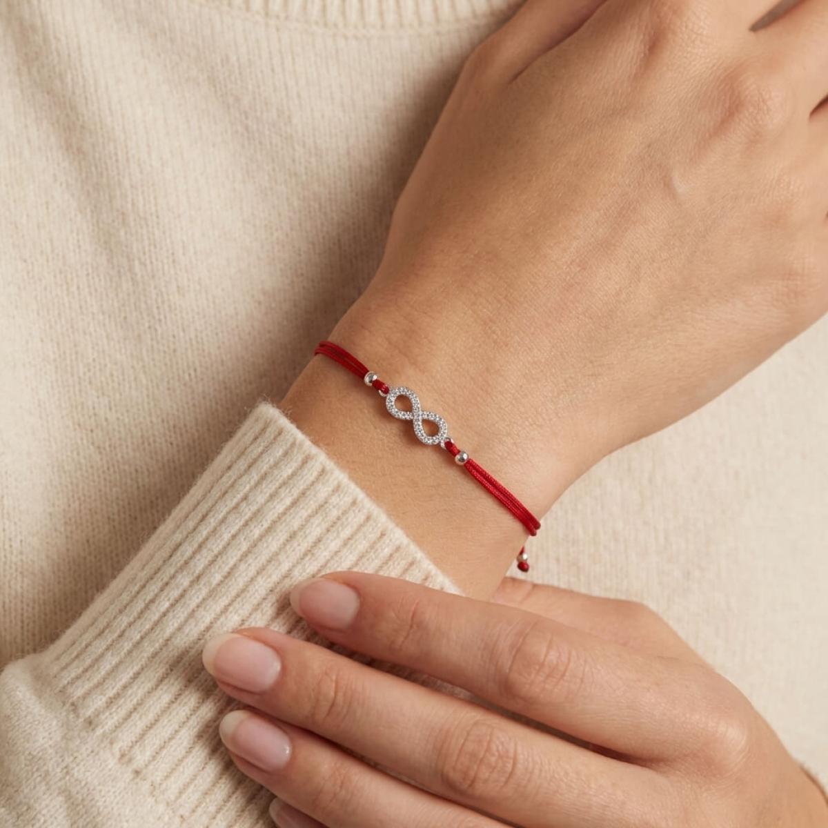 Гривна с червен конец и сребърен елемент безкрайност BT15