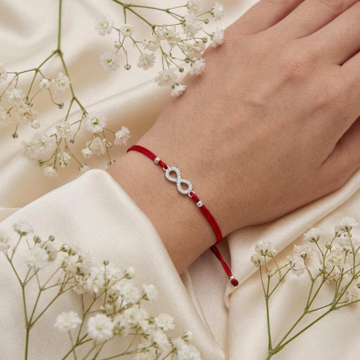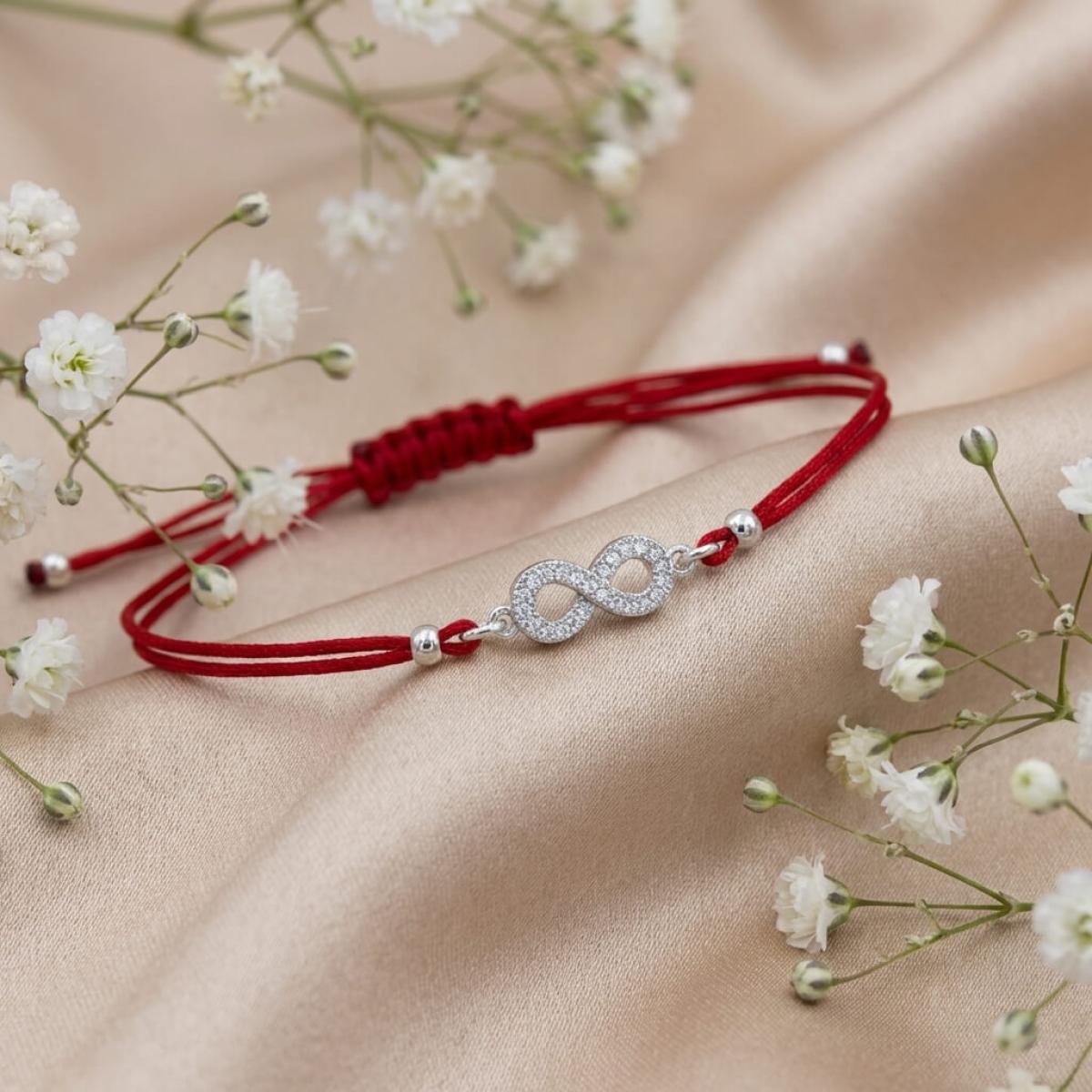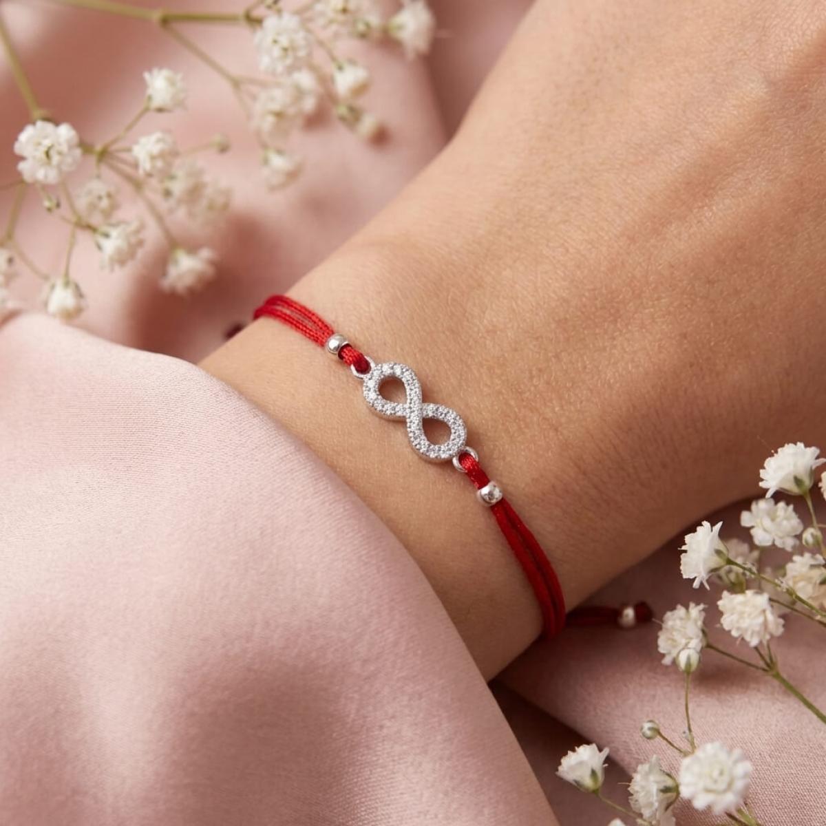 Гривна с червен конец и сребърен елемент безкрайност BT15