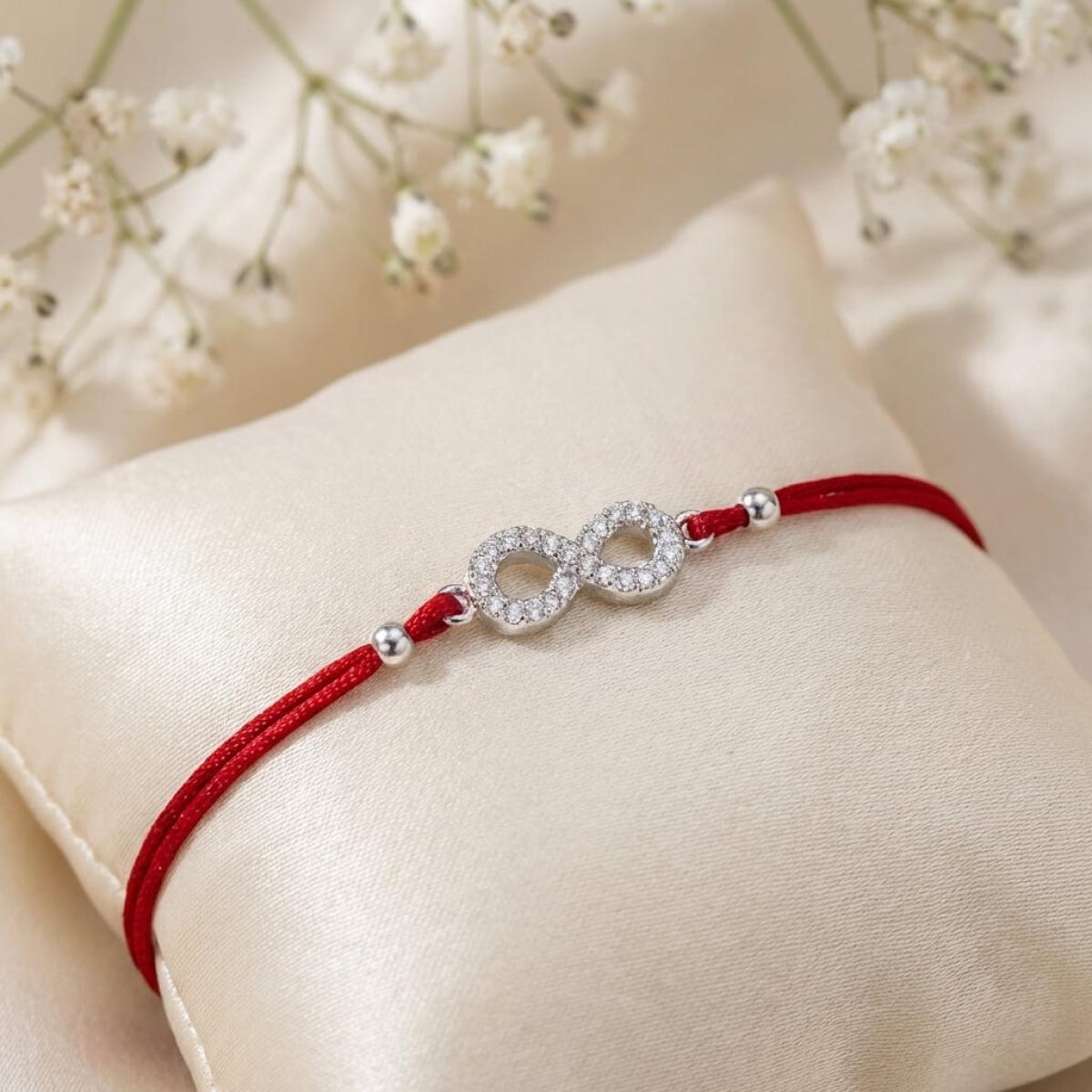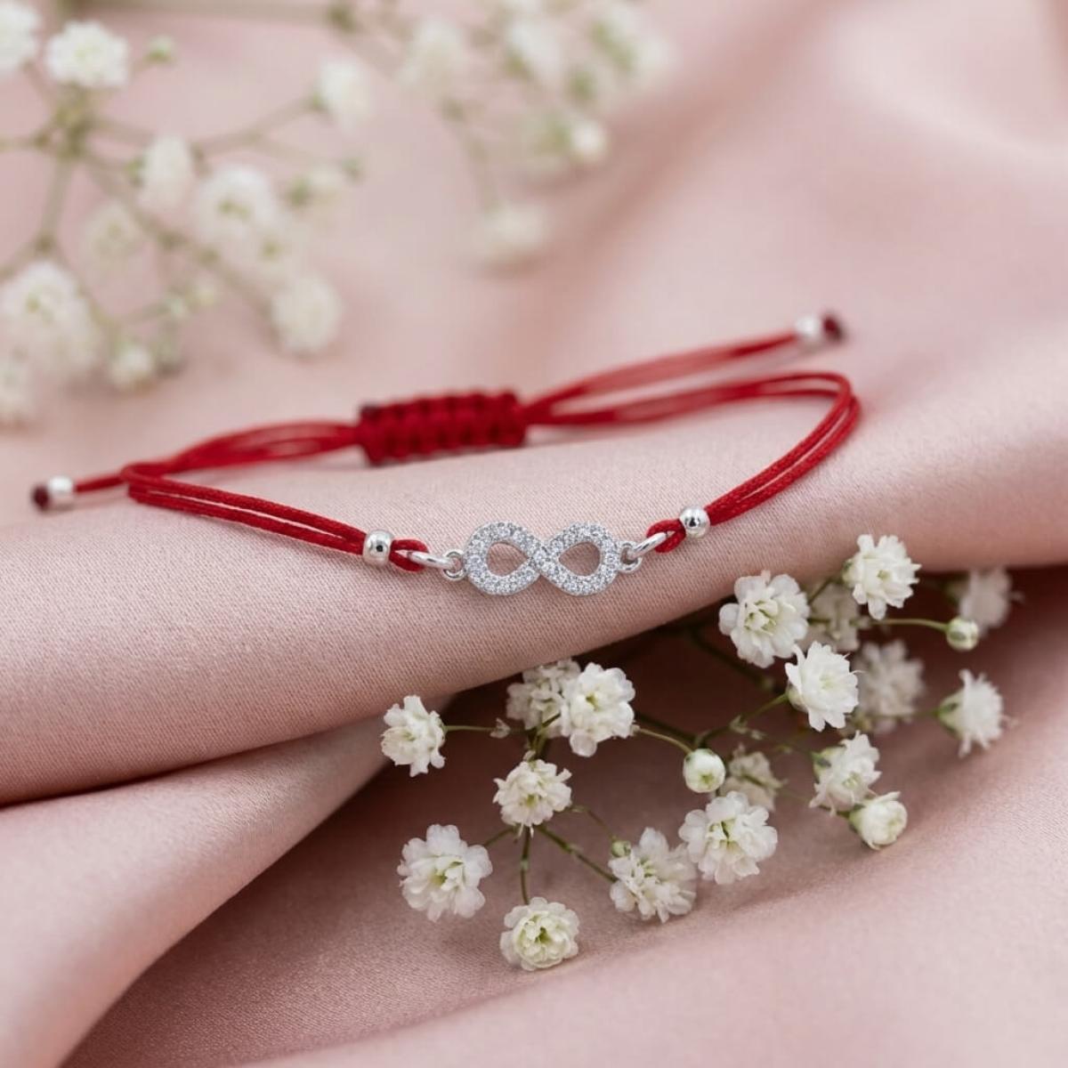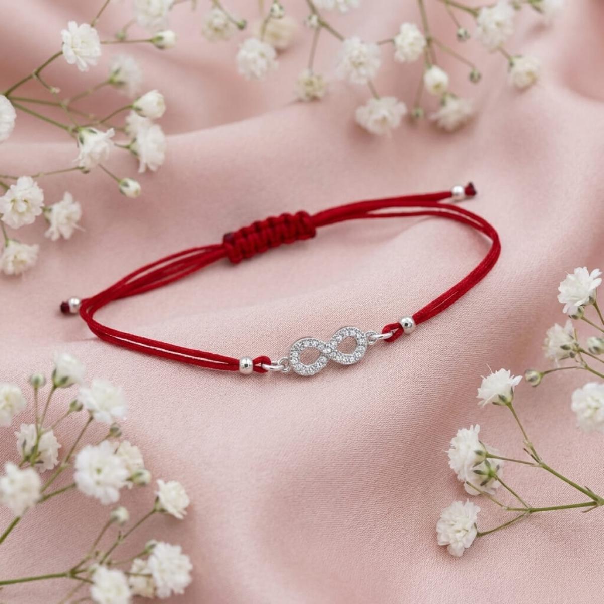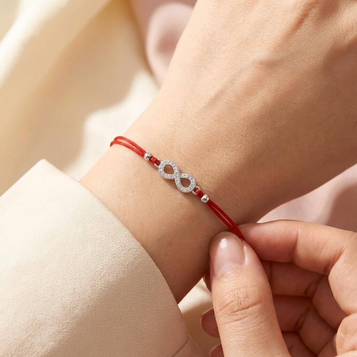 Гривна с червен конец и сребърен елемент безкрайност BT15