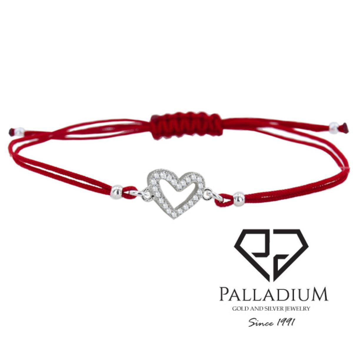 Гривна с червен конец и сребърен елемент сърце с цирконий BT18
