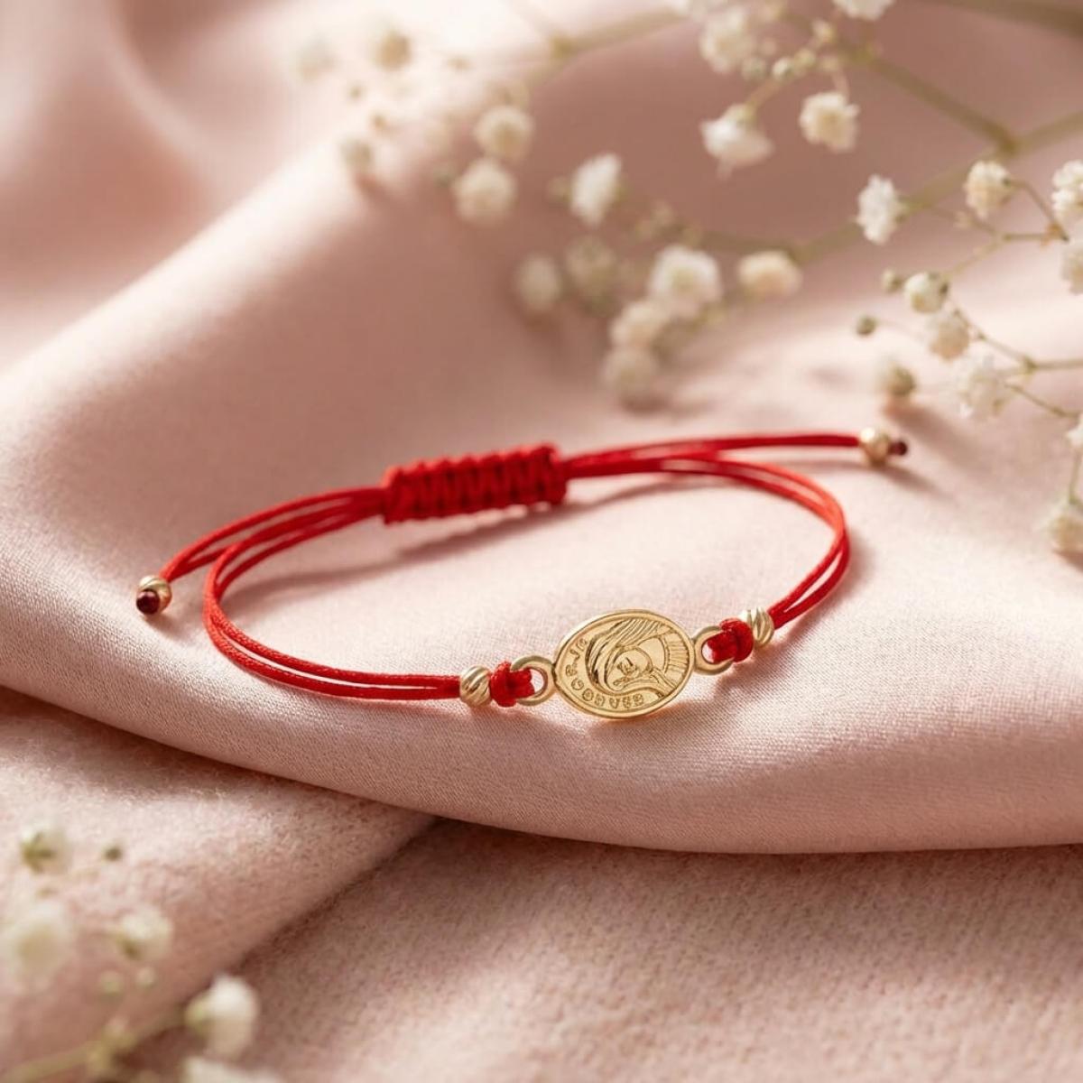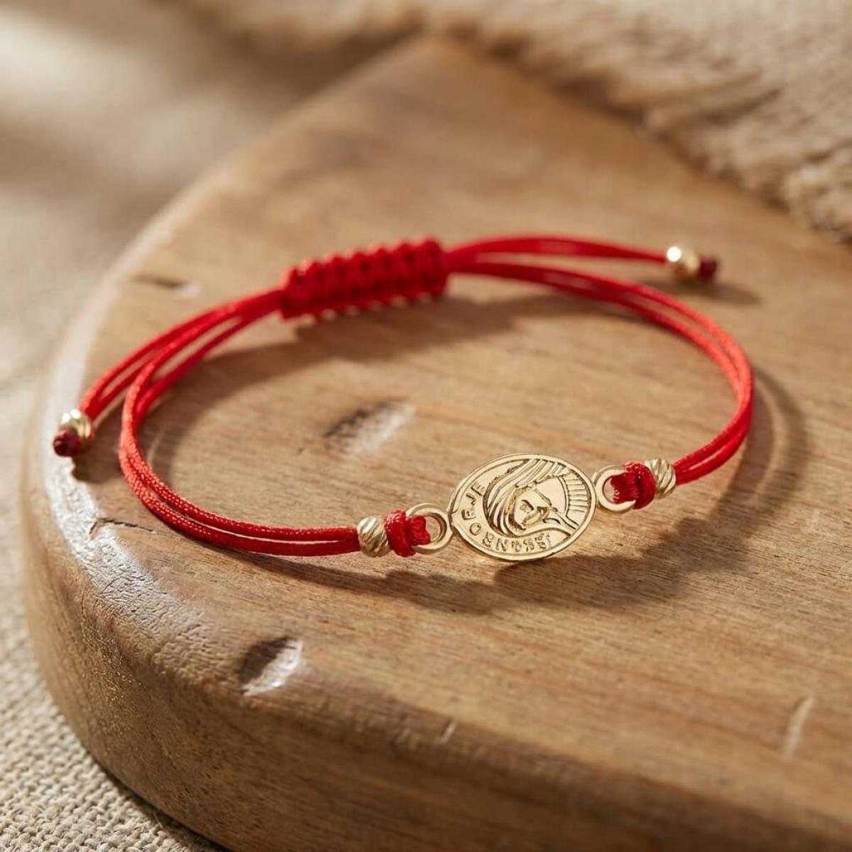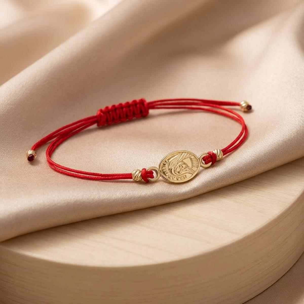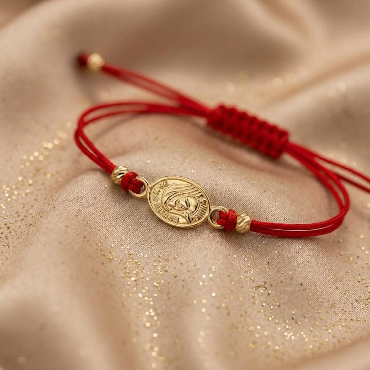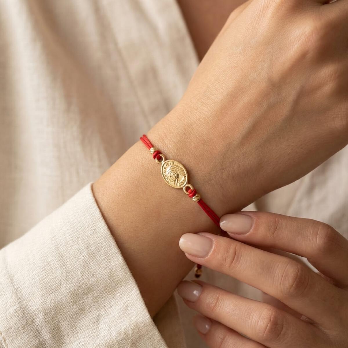 Предлагаме ви гривна с червен конец и златен елемент Богородица. Това красиво ювелирно изделие е перфектният подарък за всеки – мъж, жена или дете. Конецът в червено, съчетан с лика на Божията майка се превръща в персонален амулет с изключителна мощ. Талисманът ще пази своя притежател от лоши очи, болести и нещастия.
