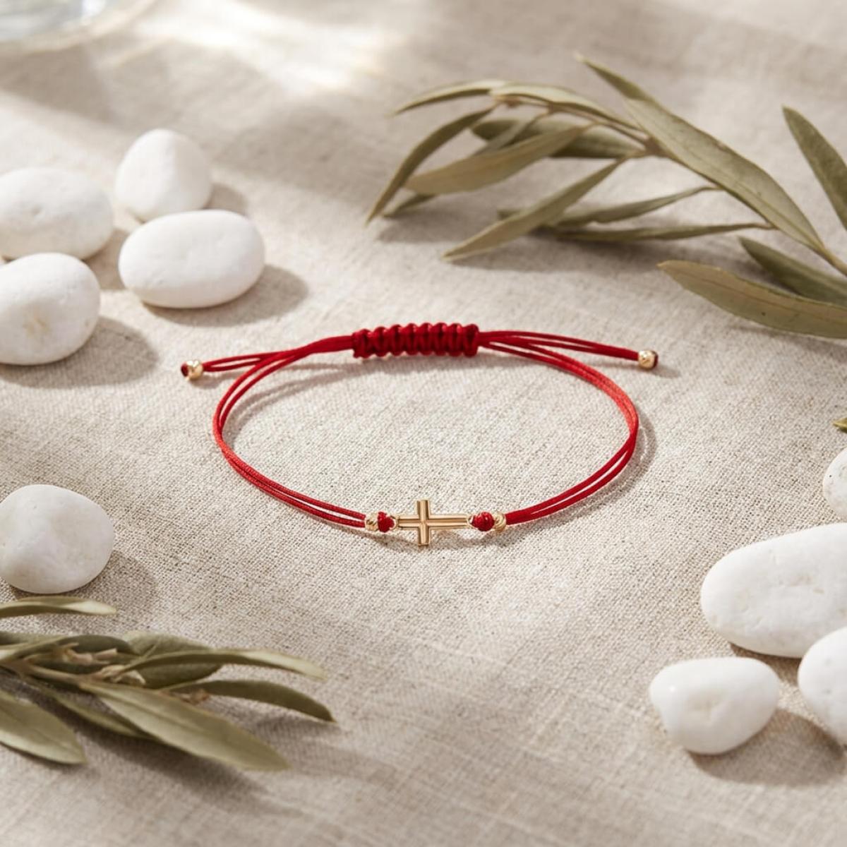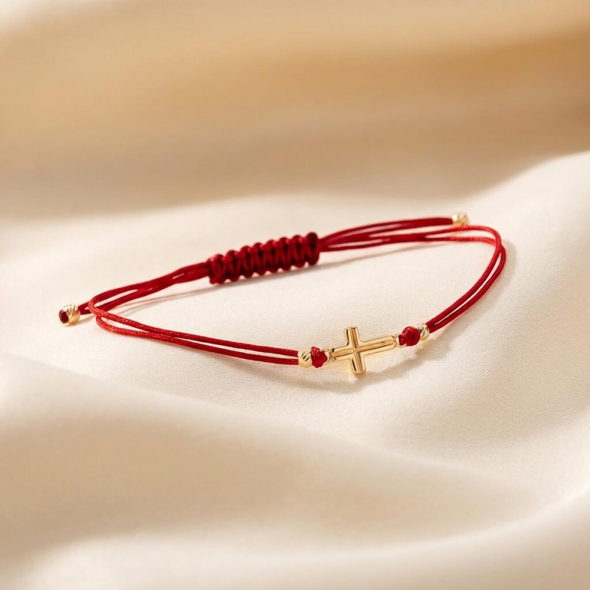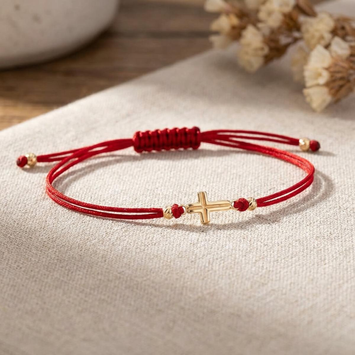 Гривна с червен конец и 14 карата златен елемент кръст B55