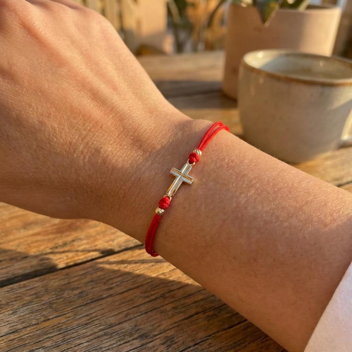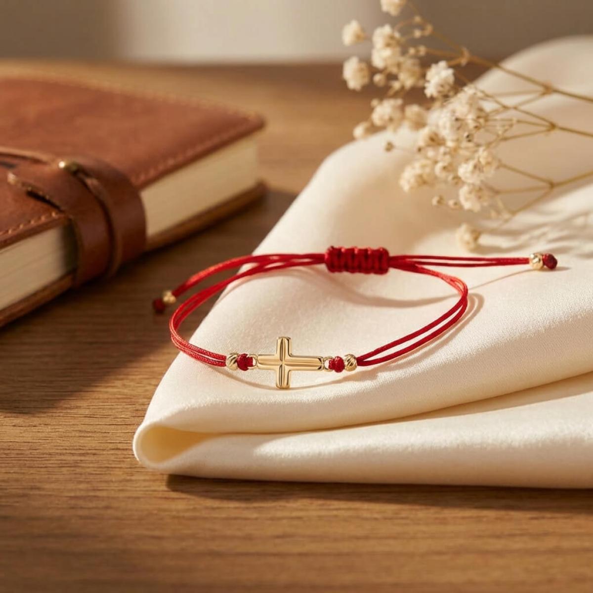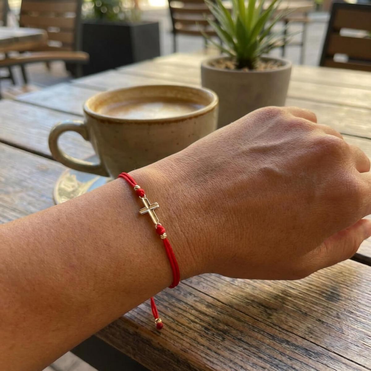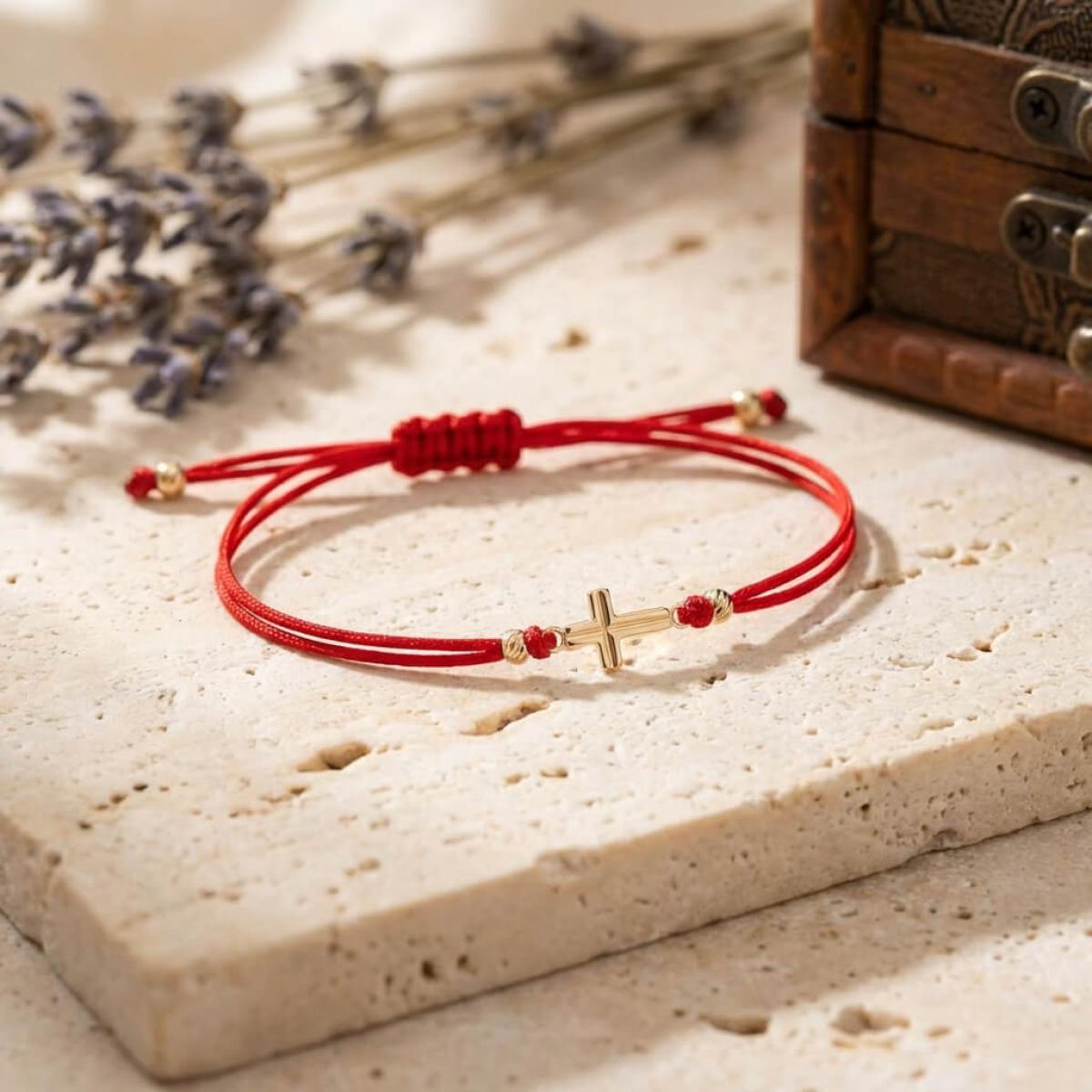 Гривна с червен конец и 14 карата златен елемент кръст B55