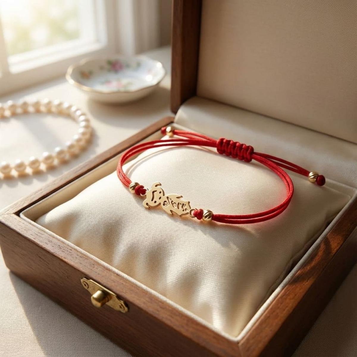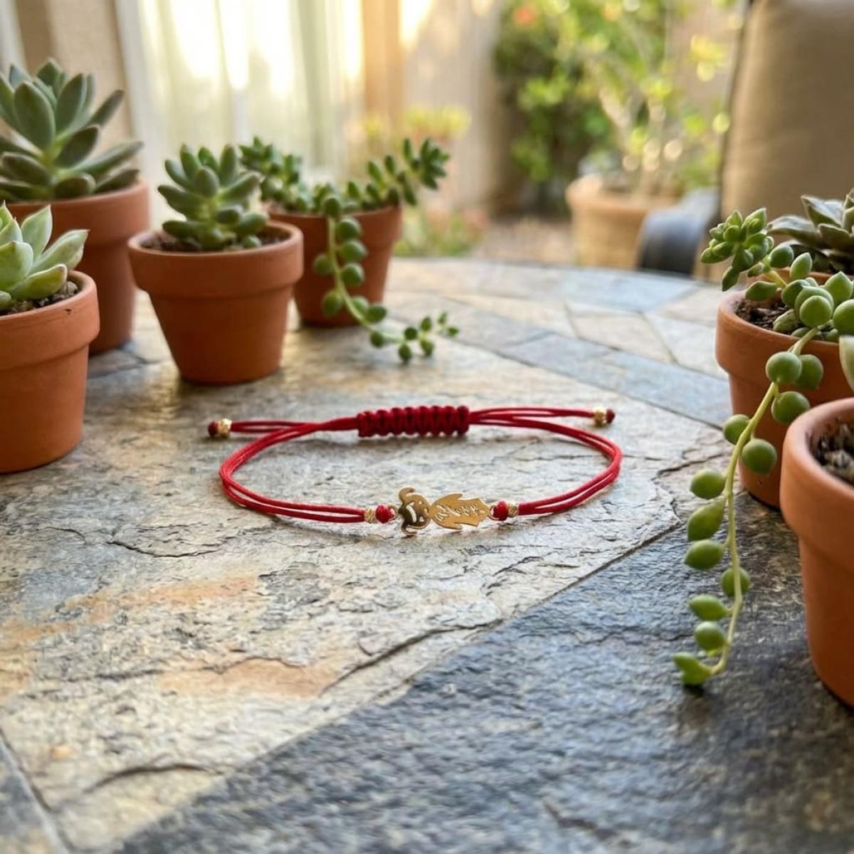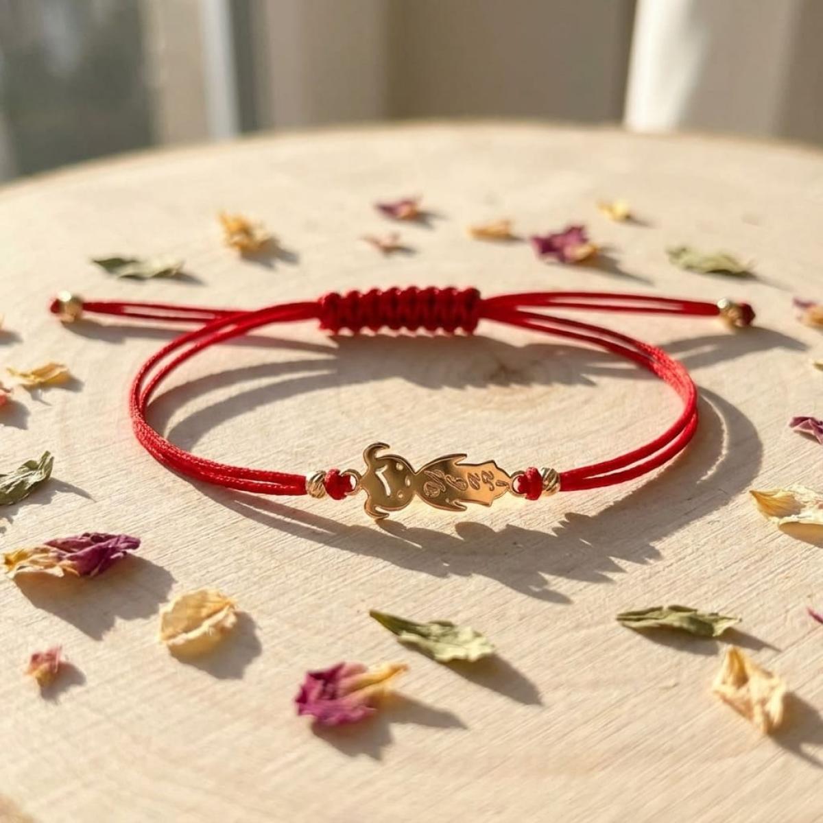 Подарък гривна с червен конец никога не е неуместен. Тук ви предлагаме едно изящно изделие, подходящо както за новородени момиченца, така и за майки на женски рожби. Това е един стилен амулет, който ще ви пази от лоши очи и нещастия. Специалният акцент в изделието е златната фигурка, която ще гравираме за вас напълно безплатно.
