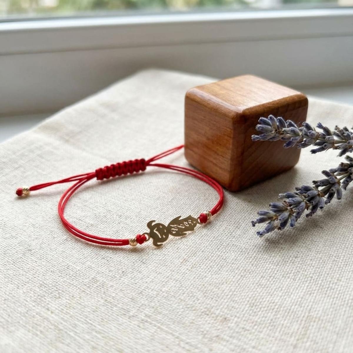 Гривна с червен конец и 14 карата златен елемент момиченце