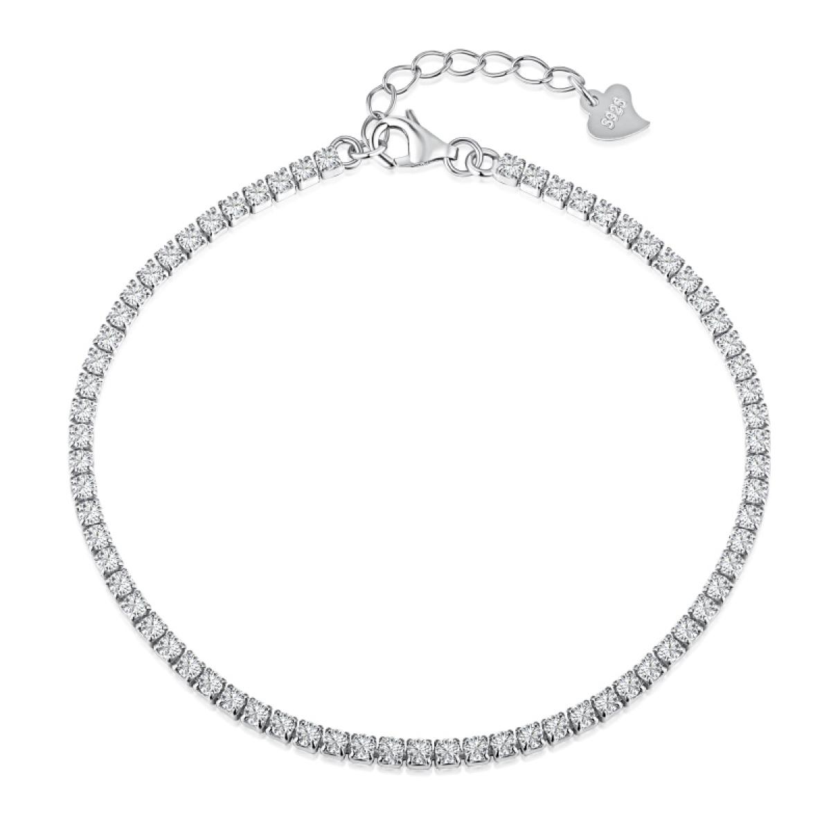 Бяла тенис гривна от чисто сребро е изработена от квадратни части, които захващат всеки един от цирконите. Уникално бижу, което може да носите за повод или без. За модерен, съвременен външен вид я съчетайте с други гривни със същия цвят на метала или на цирконите.