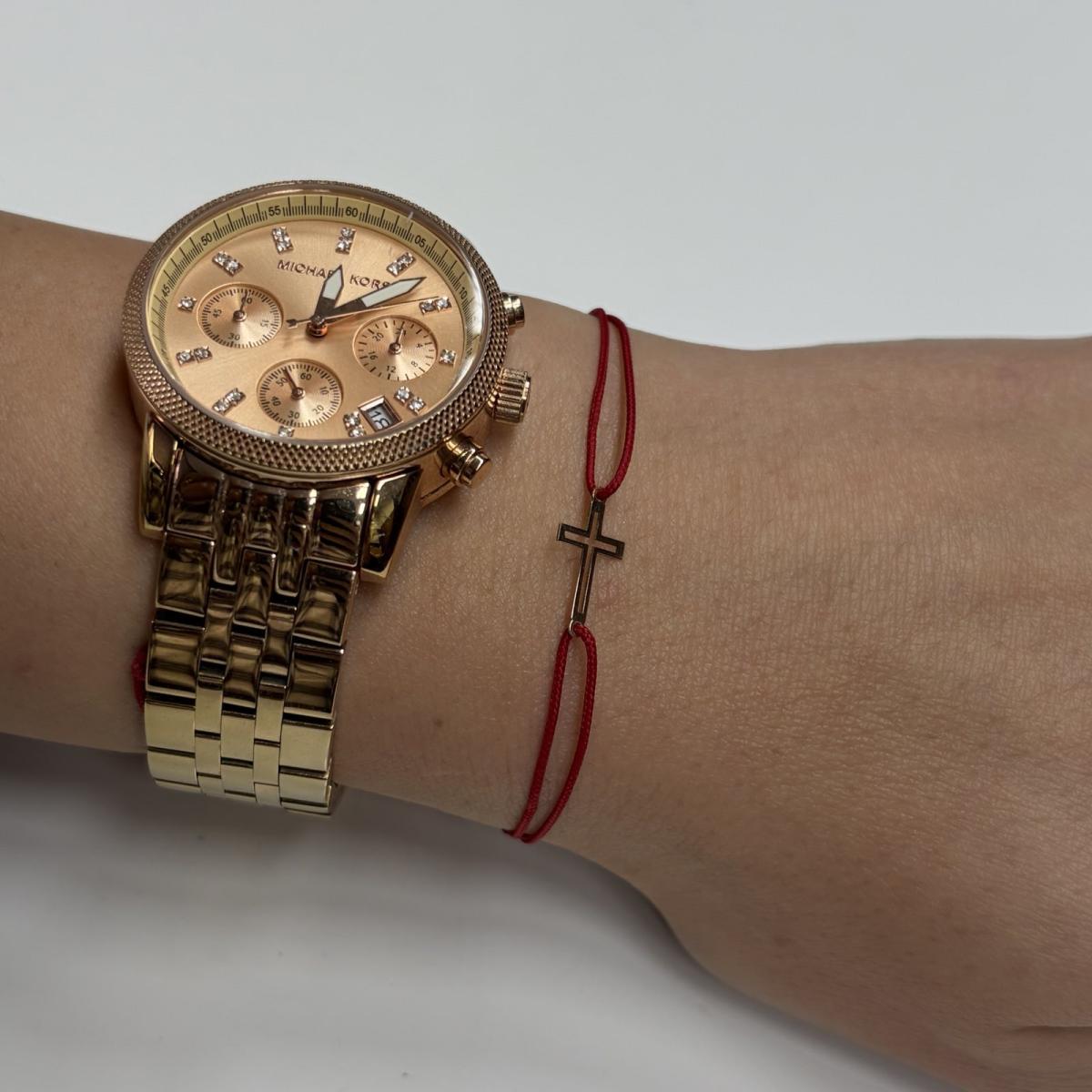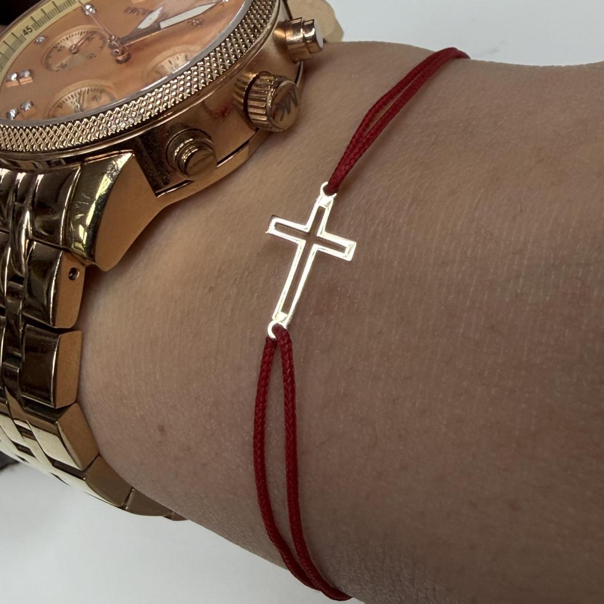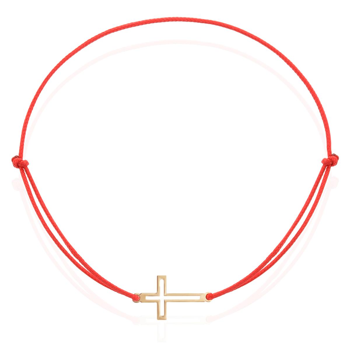Гривна с червен конец и 14 карата златен елемент кръст