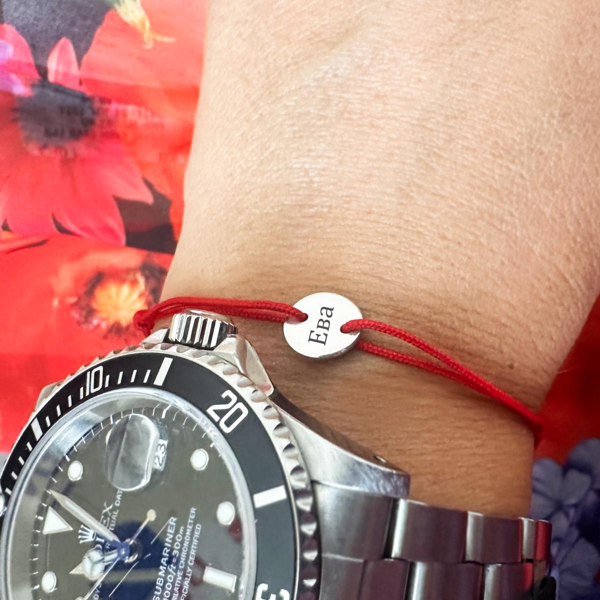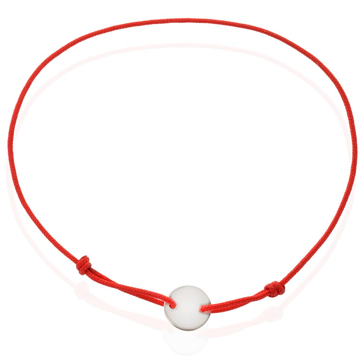 Гривна с червен конец и сребърно кръгче с гравиране по избор