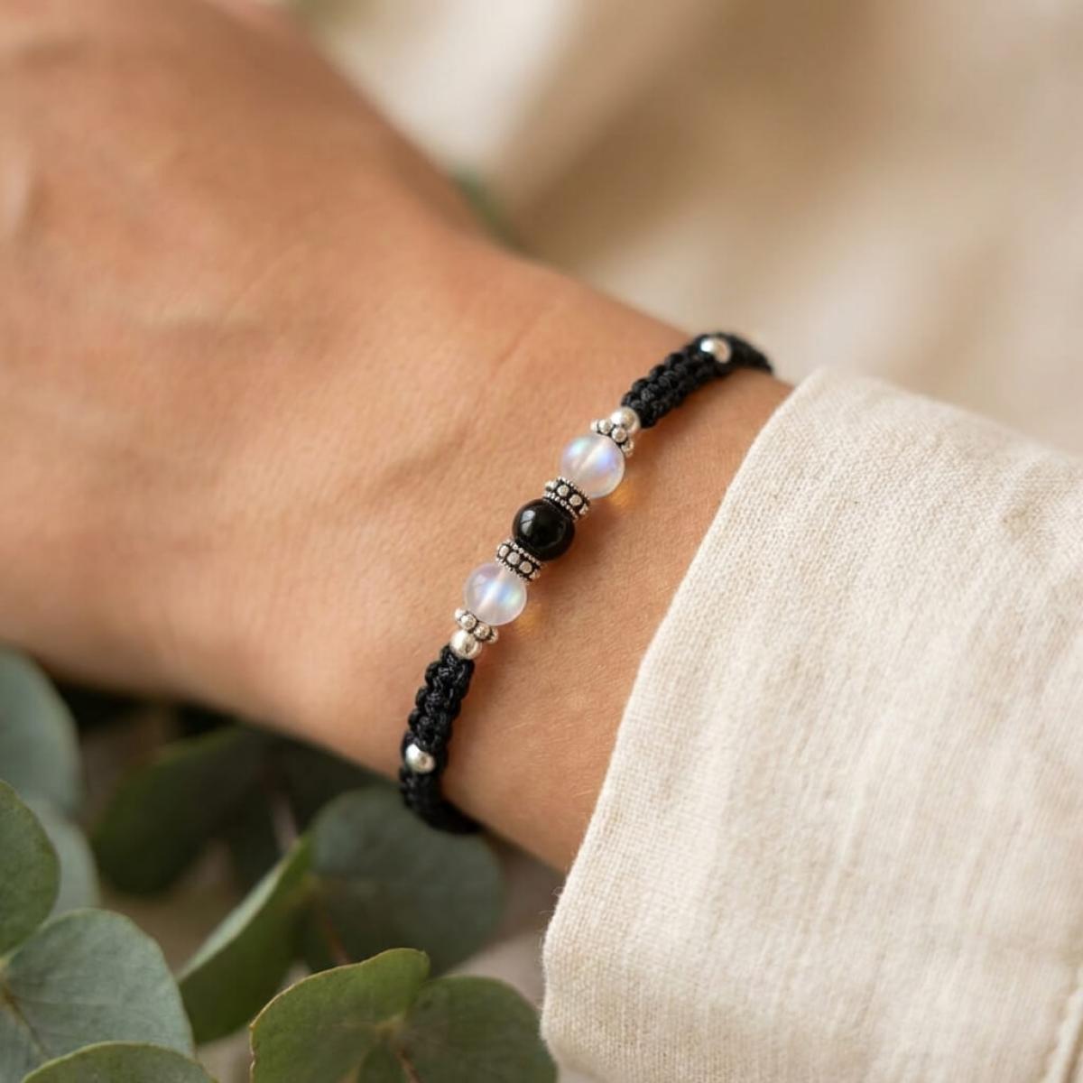 Елегантна унисекс гривна със сребърни топчета и мъниста