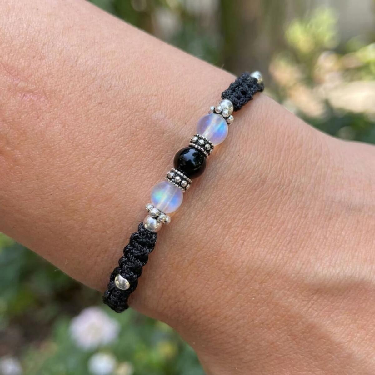 Тази изящна гривна комбинира фини сребърни топчета (проба 925) с мъниста в различни цветове, които нежно преливат в различни нюанси според светлината. Игривите отблясъци създават усещане за магия и уникалност, а сребърните елементи придават изтънчен лукс.
