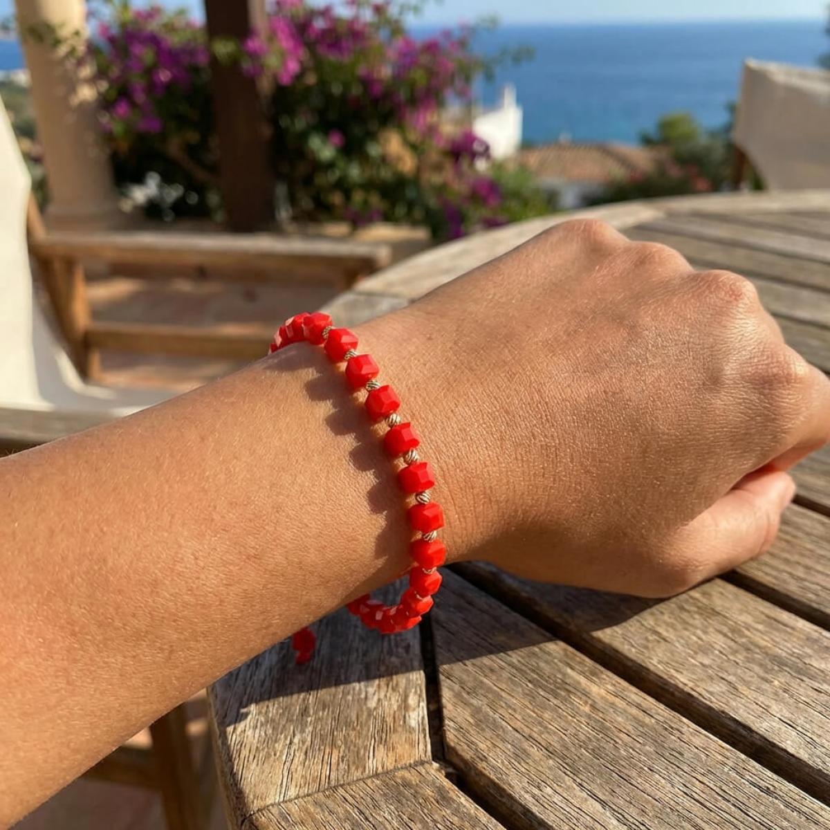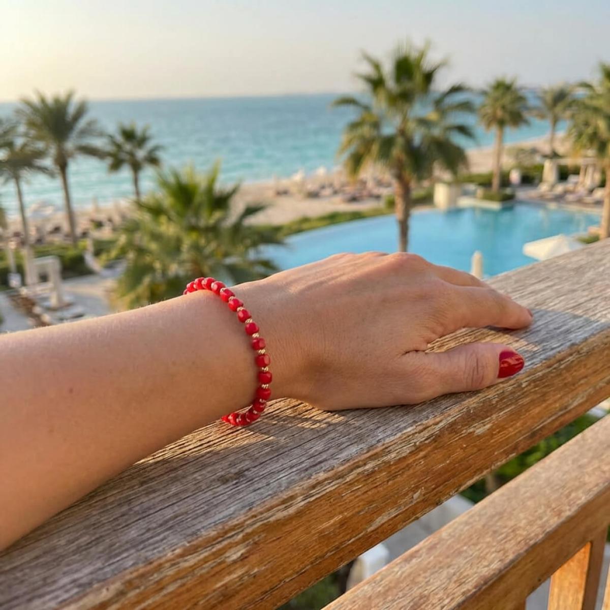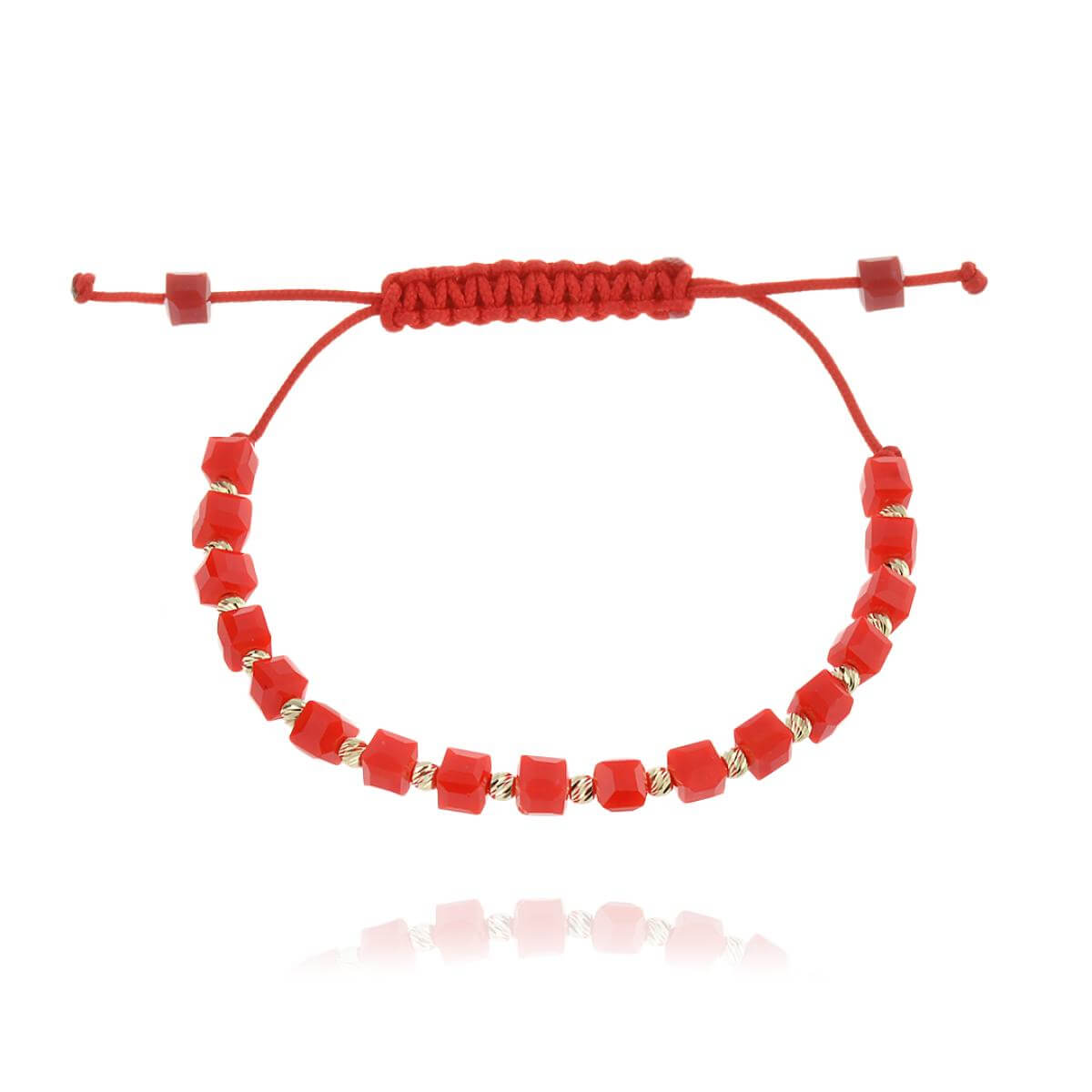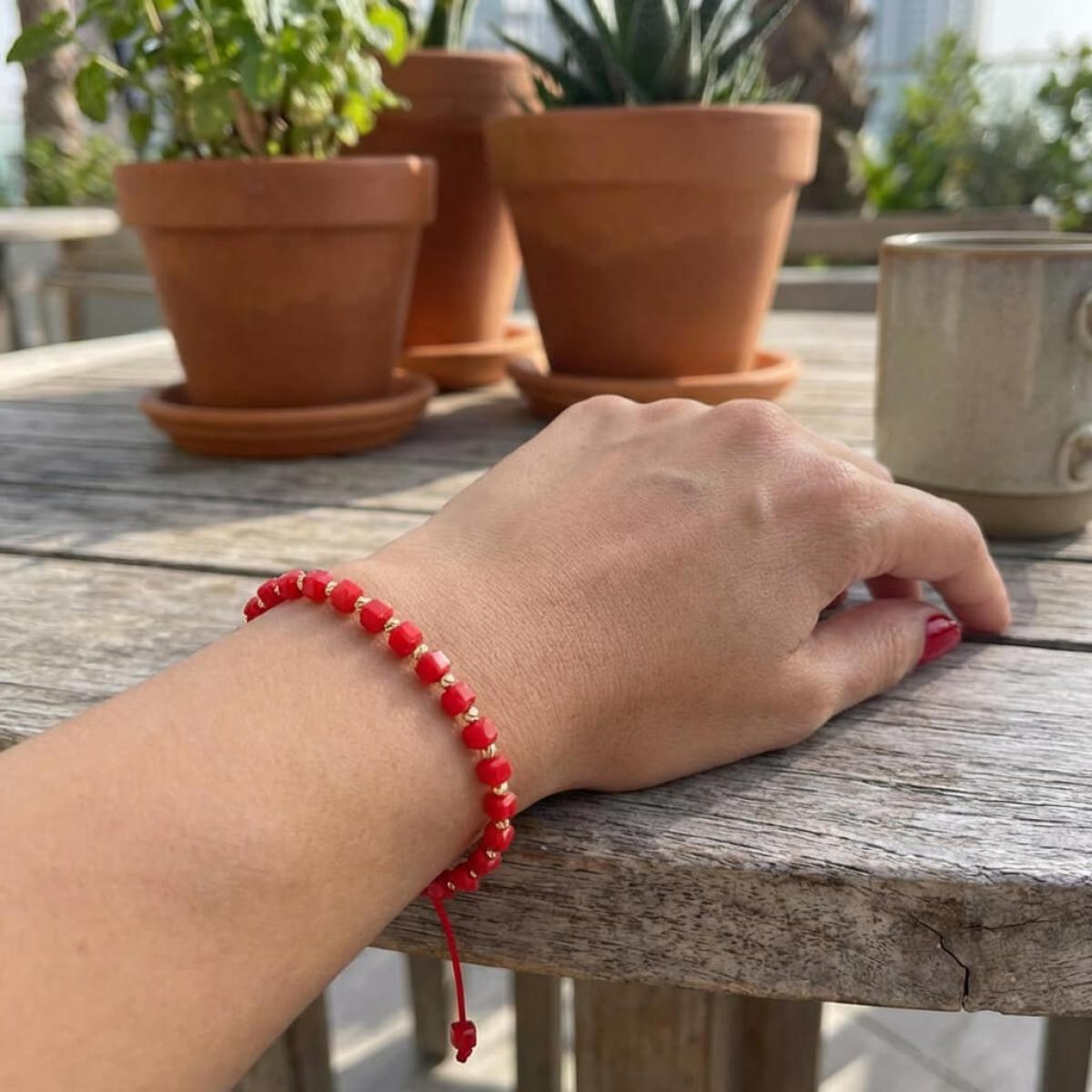 Гривна със златни топчета и червени мъниста R10
