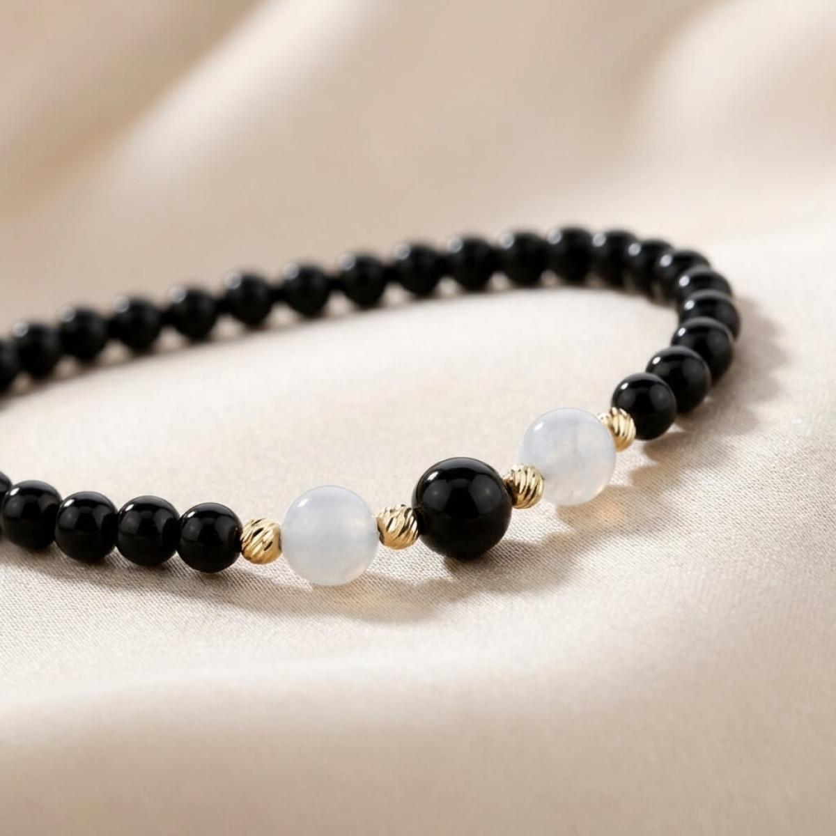 Всяко топче е оформено по много атрактивен начин. Структурата му представлява симбиоза от релеф и преливащи се нюанси на по-светло и по-тъмно злато. На фона на този декоративен елемент, намиращият се в съседство оникс изглежда още по-обаятелен. Двата детайла – ониксът и златното топче се допълват взаимно, подчертавайки индивидуалната си красота.