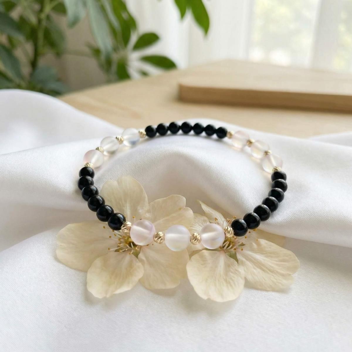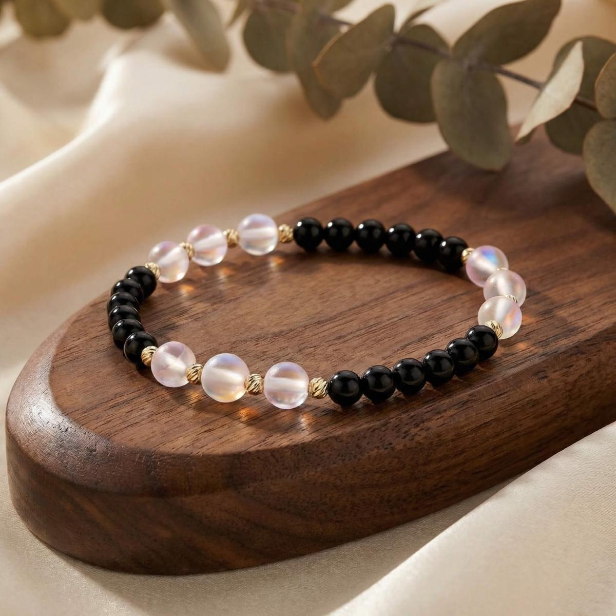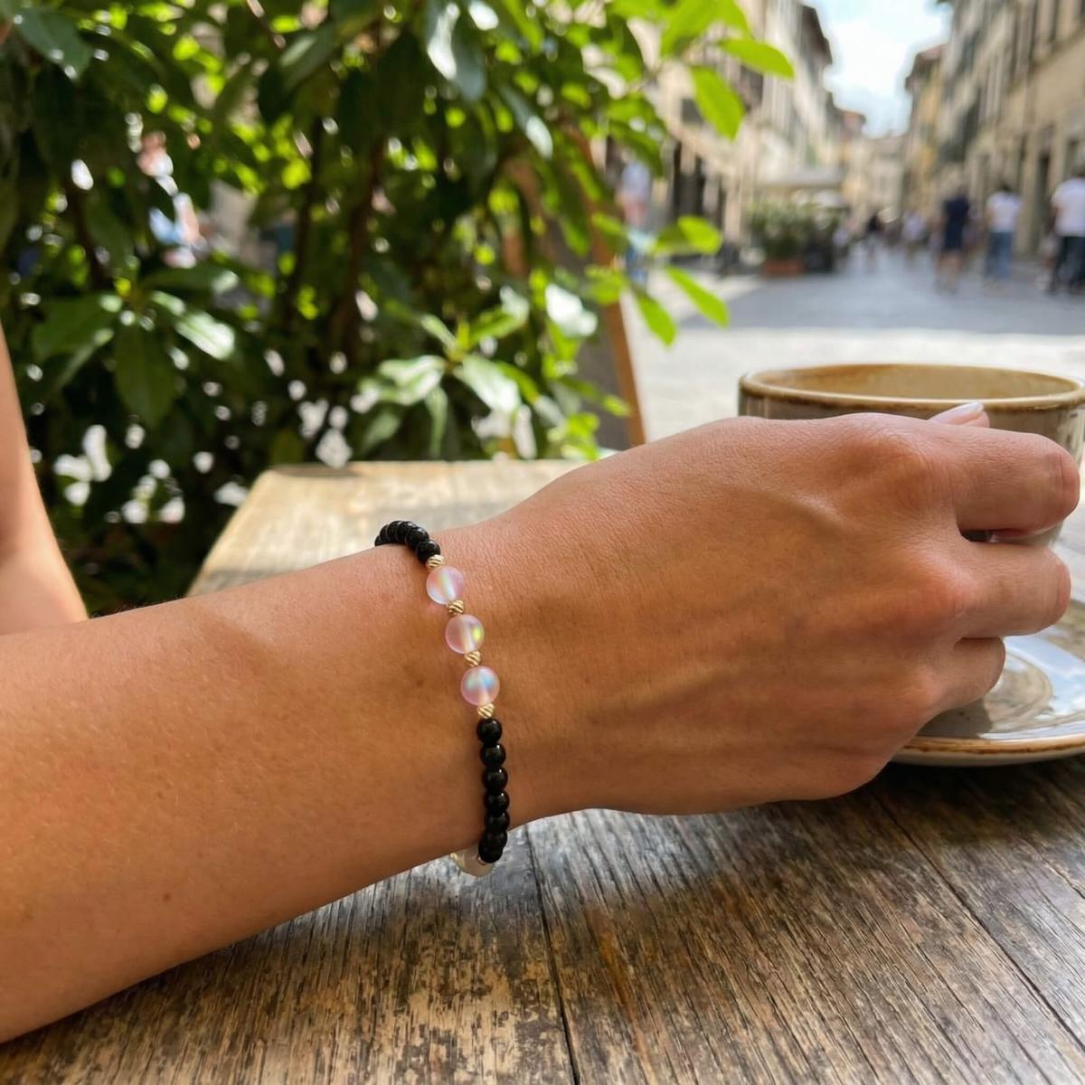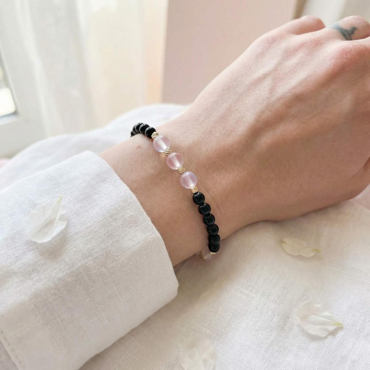 Златните 14-каратови топчета свързват и балансират тези две сили. Златото символизира вътрешната светлина, личната стойност и устойчивостта - напомняне, че любовта е най-силна, когато е защитена.