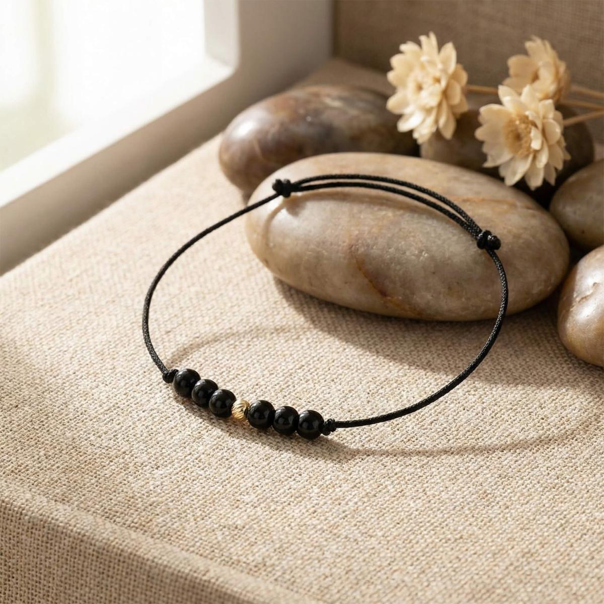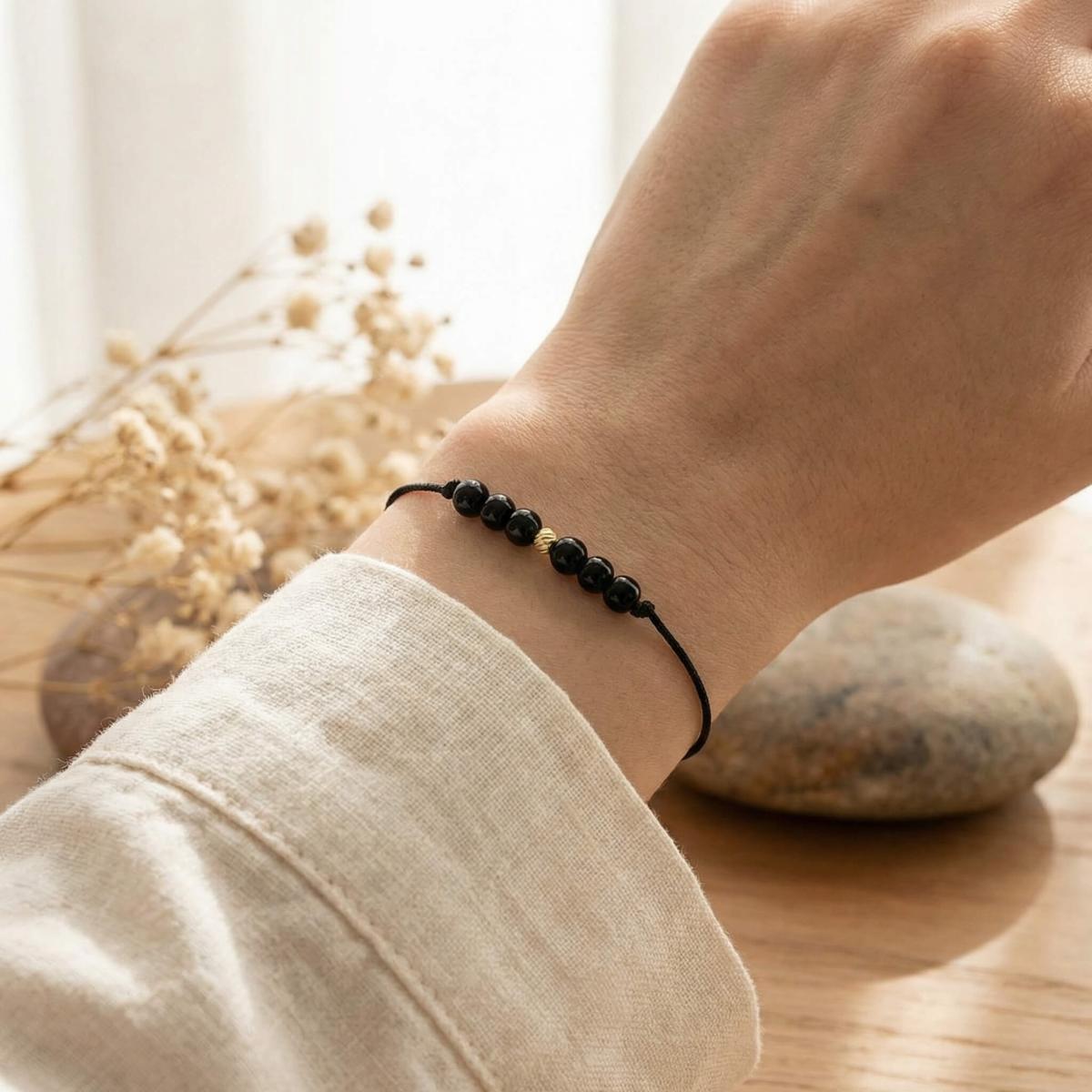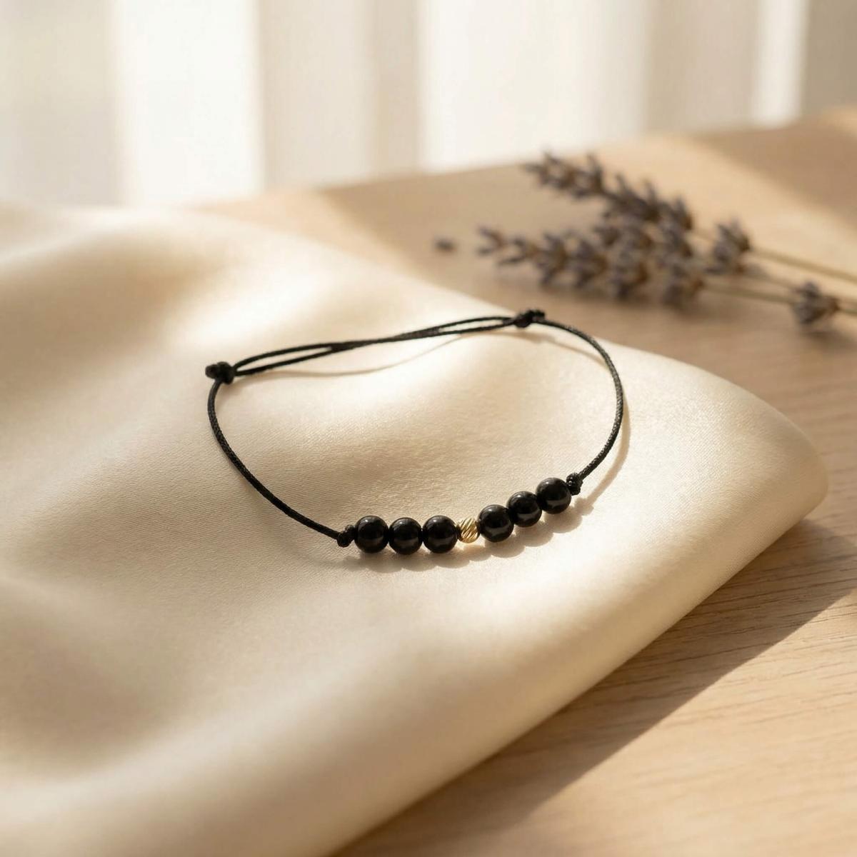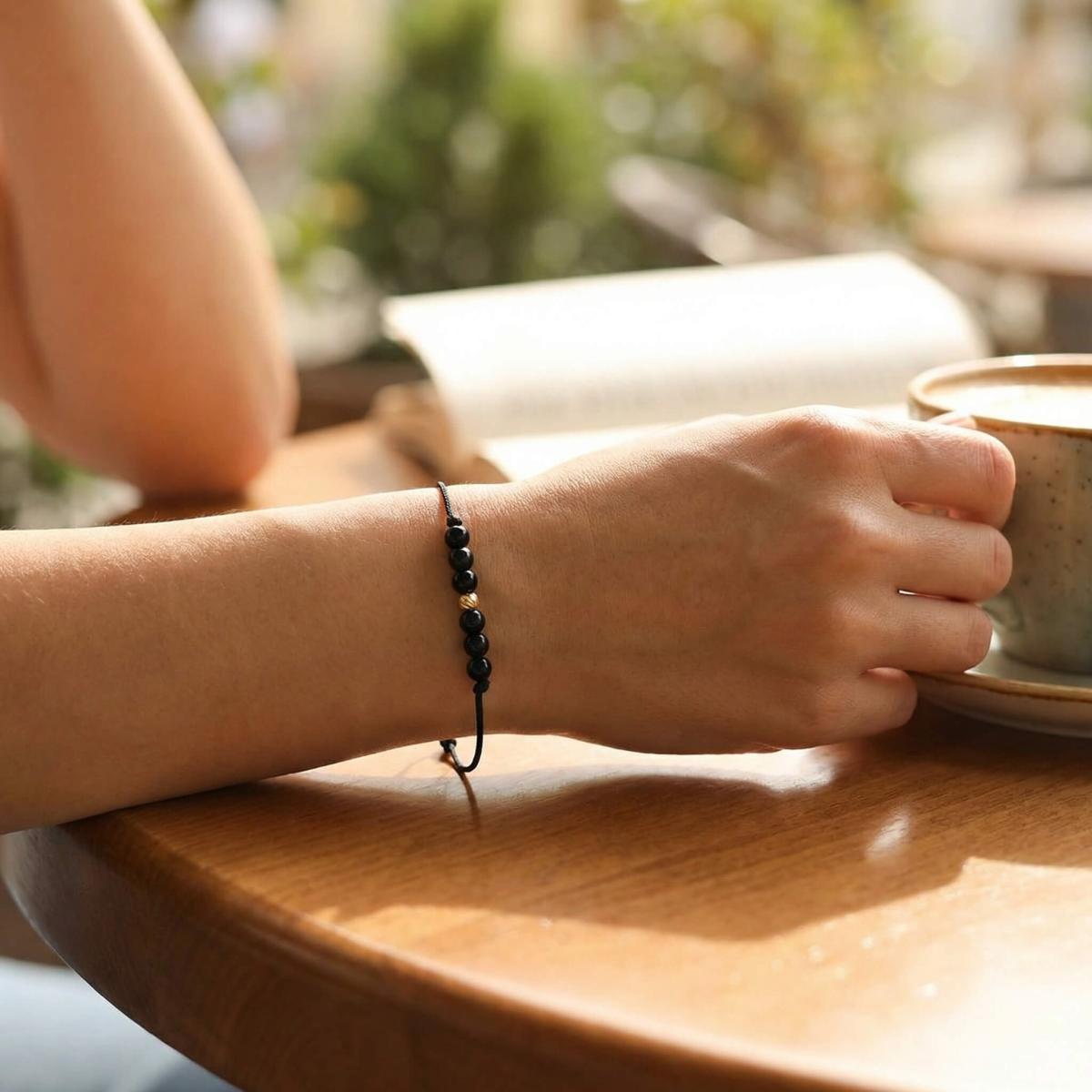Черният турмалин изгражда защитния кръг на гривната. Той заземява, поглъща негативната енергия и предпазва от външни влияния, напрежение и емоционално изтощение. Камъкът помага да останеш центрирана, спокойна и защитена в динамичното ежедневие.