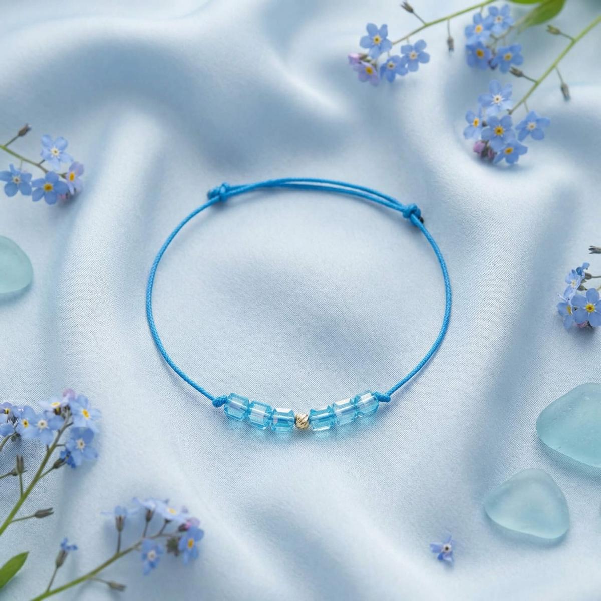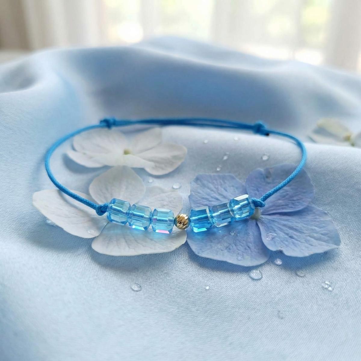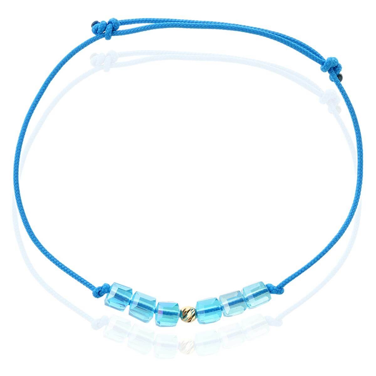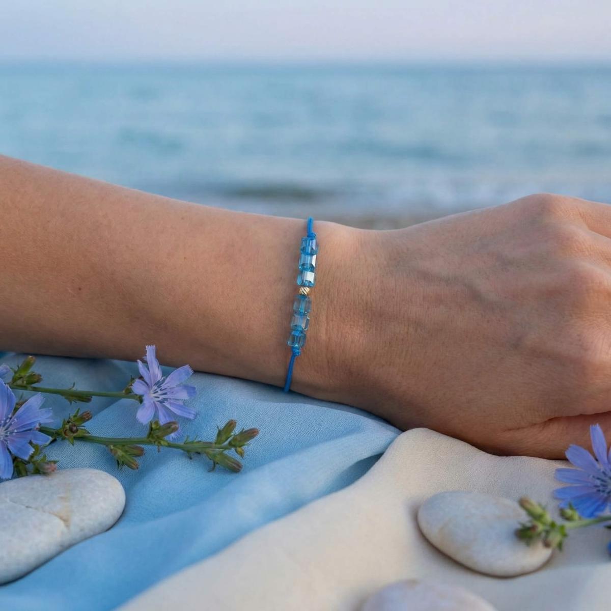 Елегантна унисекс гривна с 1 брой златно топче и сини мъниста