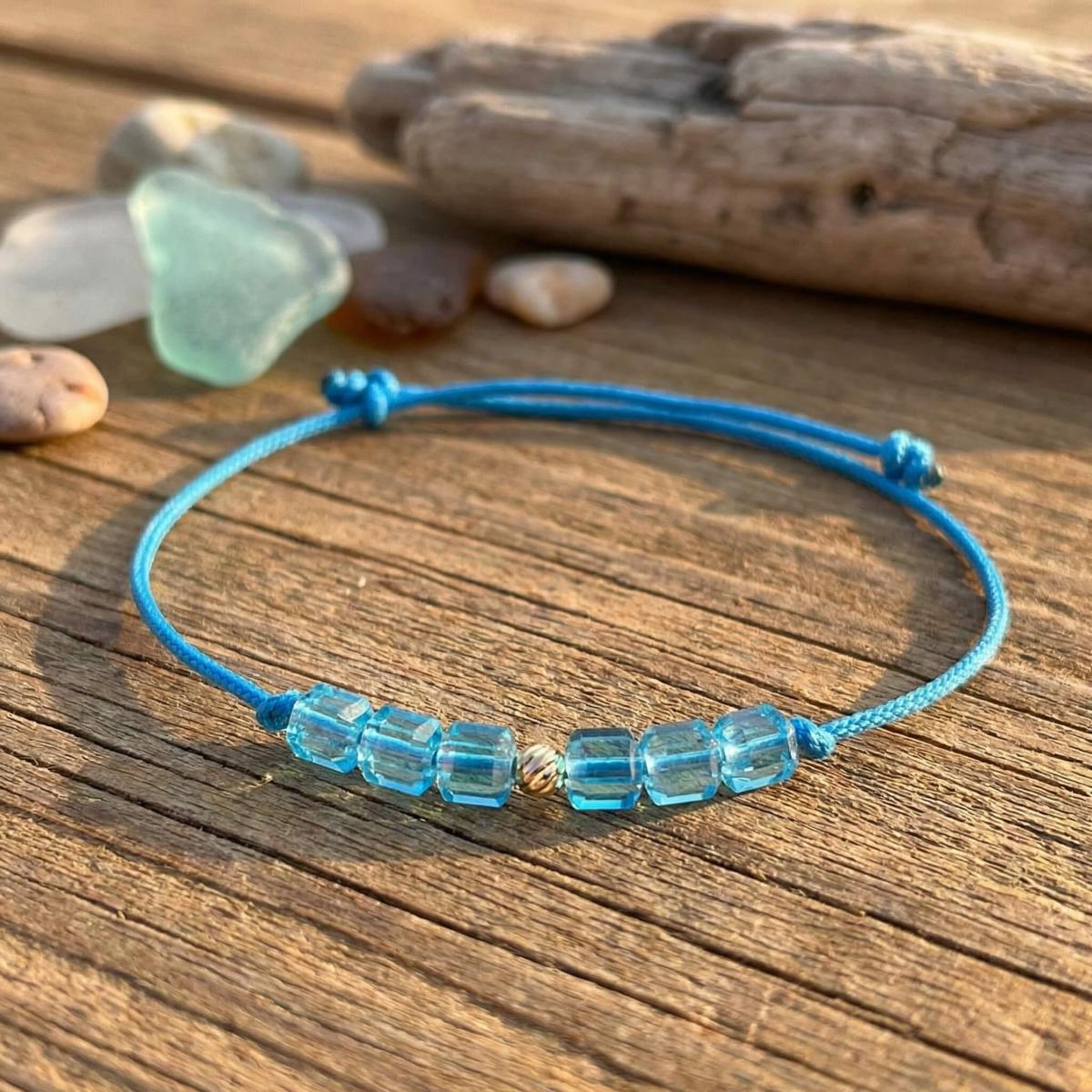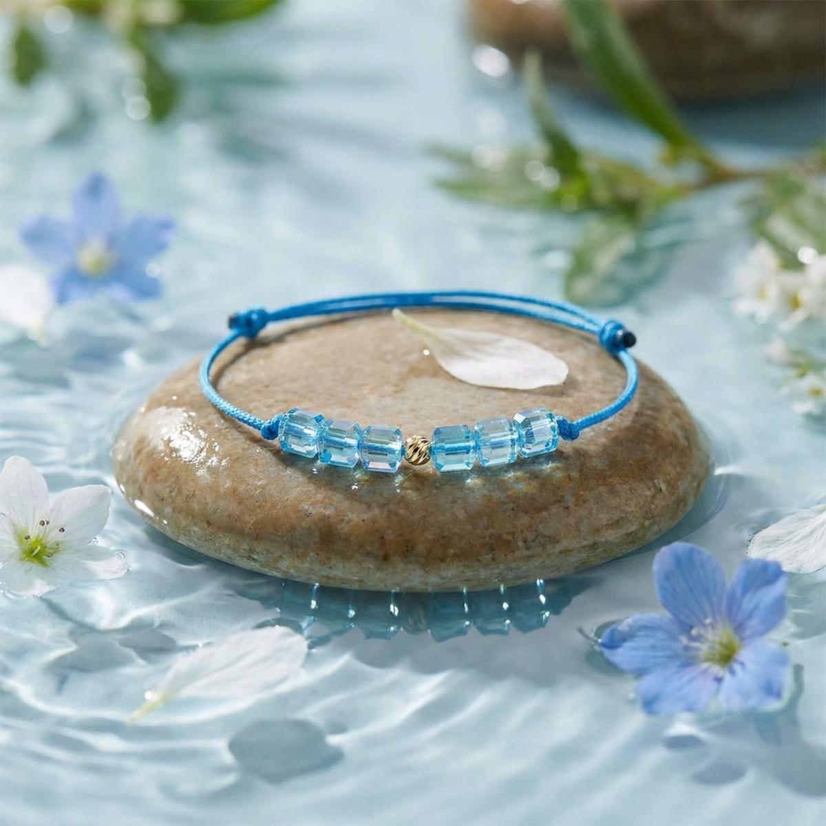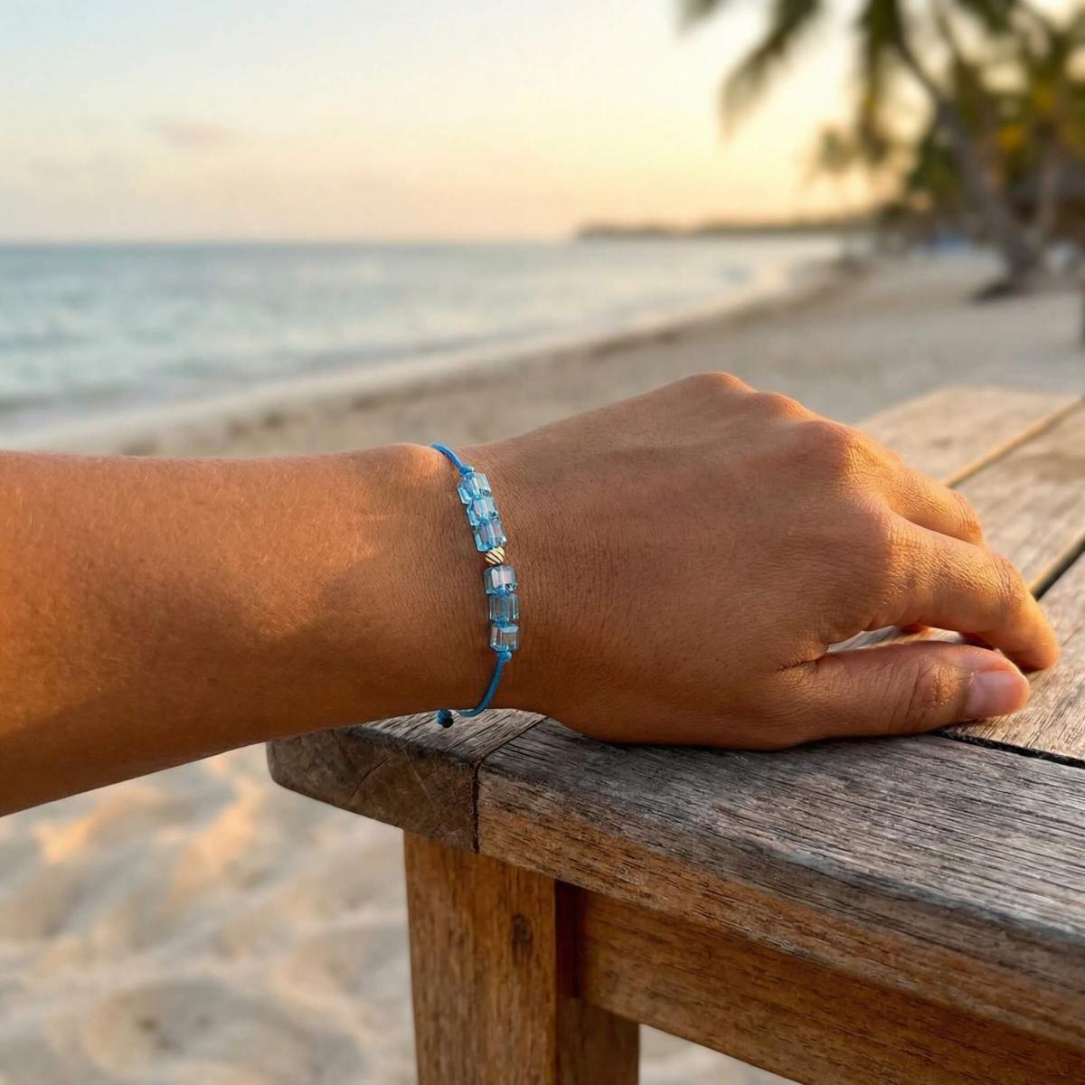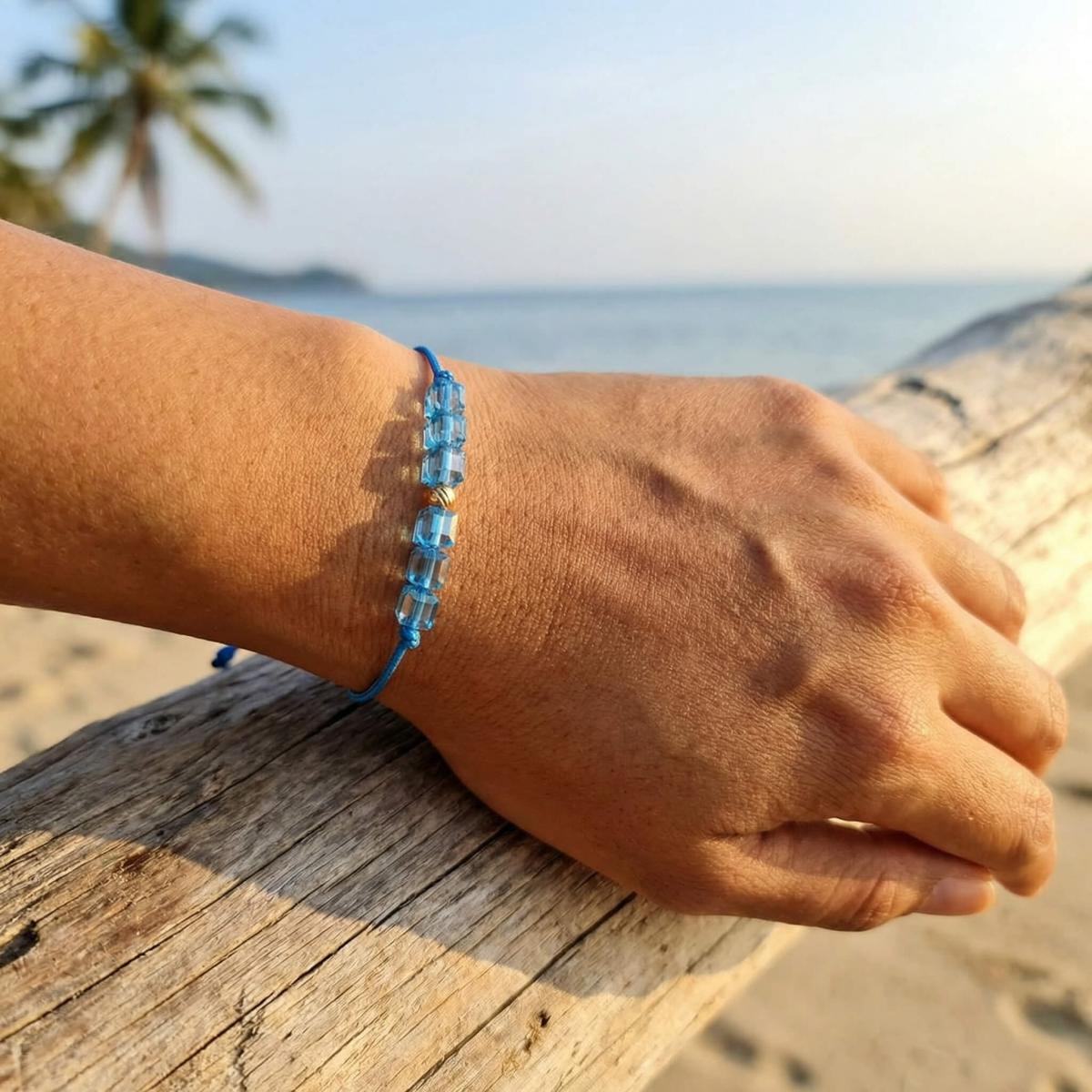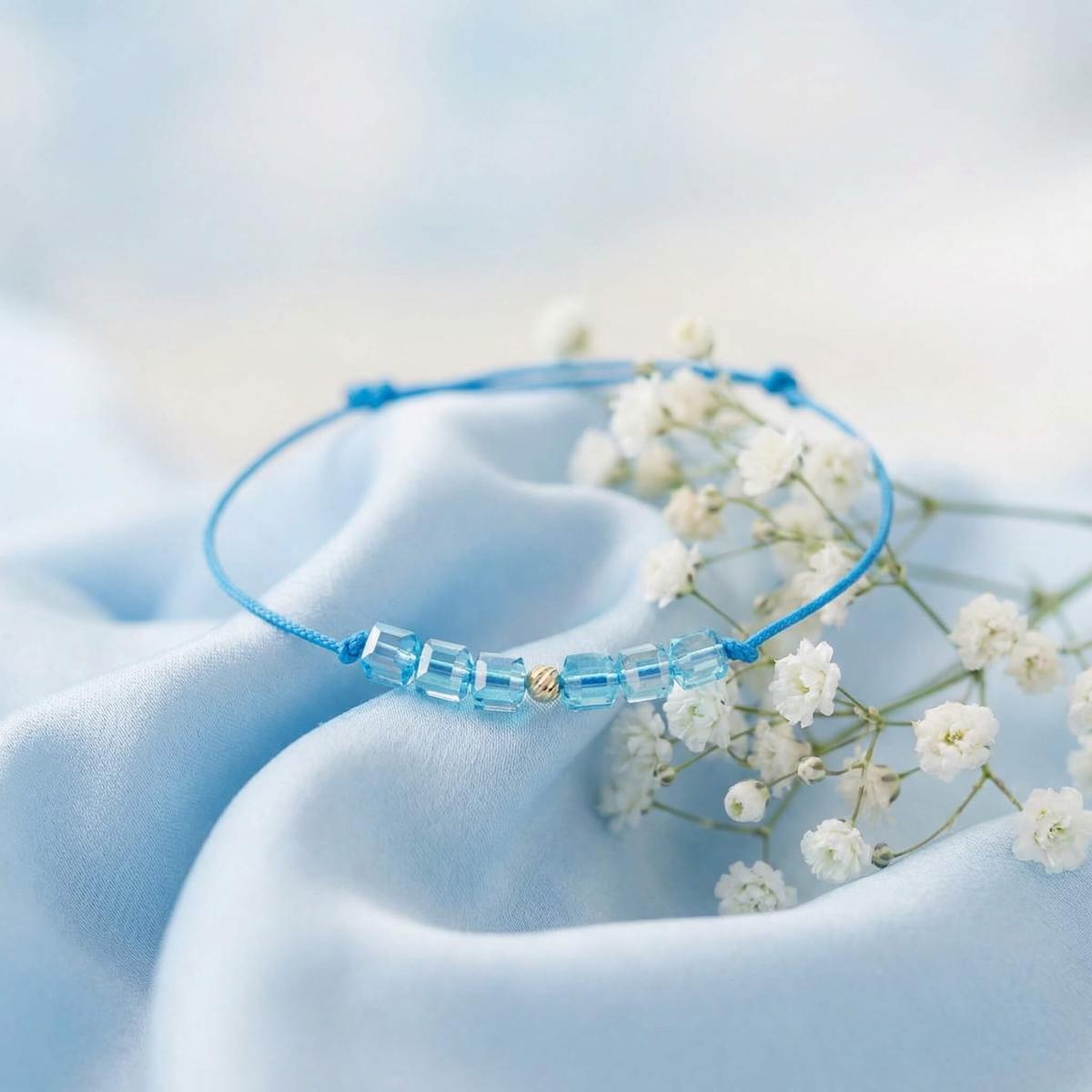 Елегантна унисекс гривна с 1 брой златно топче и сини мъниста