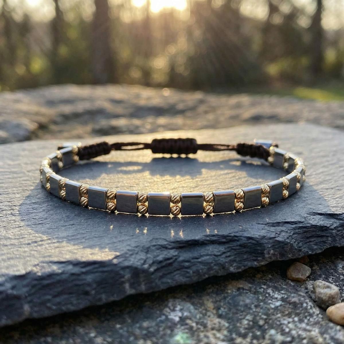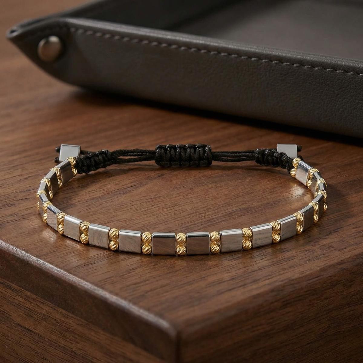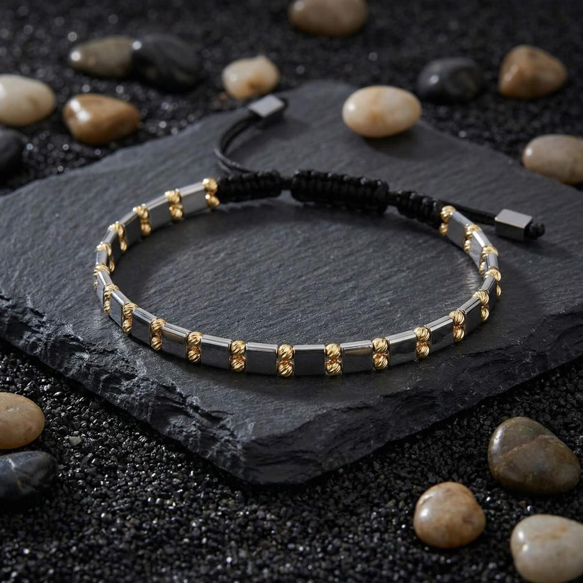 Елегантна мъжка гривна със златни топчета и хематит
