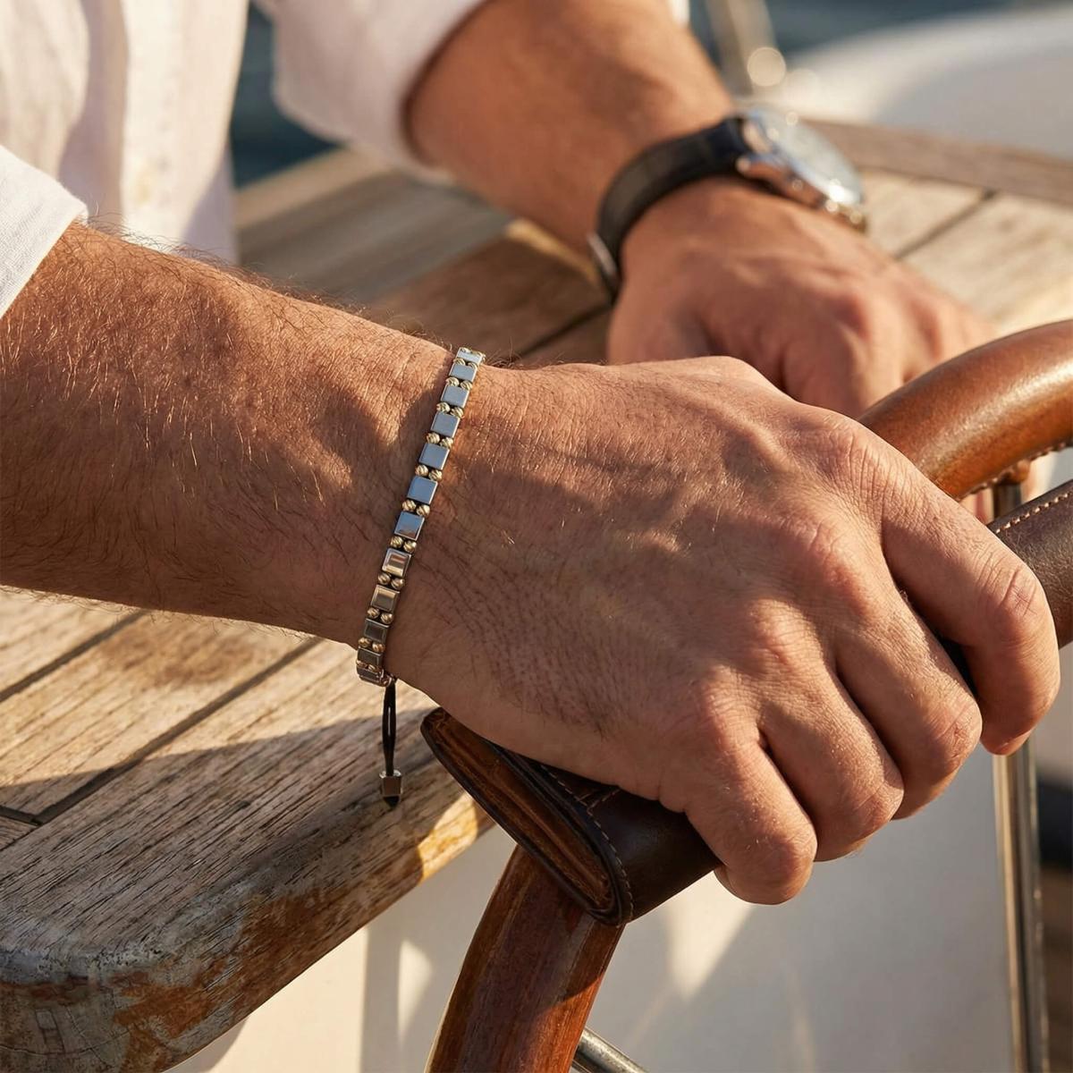 Що се отнася до мъжките бижута, то смело можем да кажем, че дяволът се крие в детайлите и най-яркият пример за това твърдение е гривната. Привидно тя може да изглежда като най-обикновена лента от метал, кожа или текстил, увита около китката, но тя е в състояние да промени кардинално визията на мъжа, ако е избрана правилно.