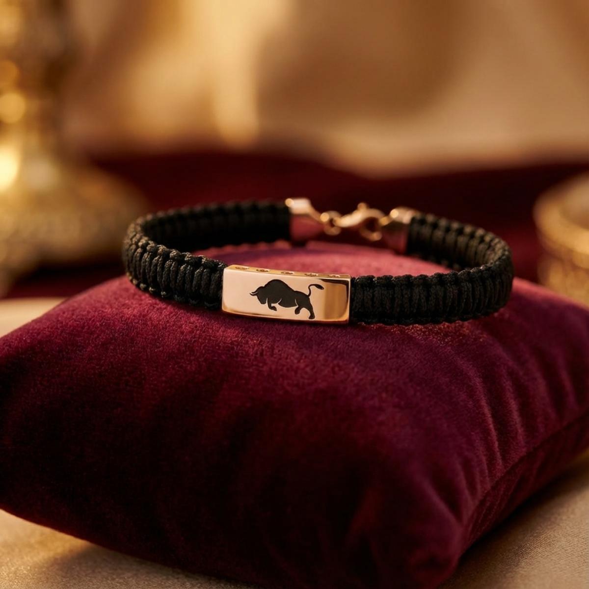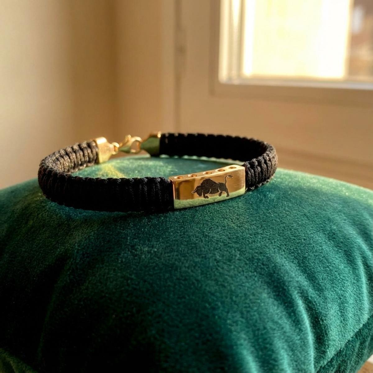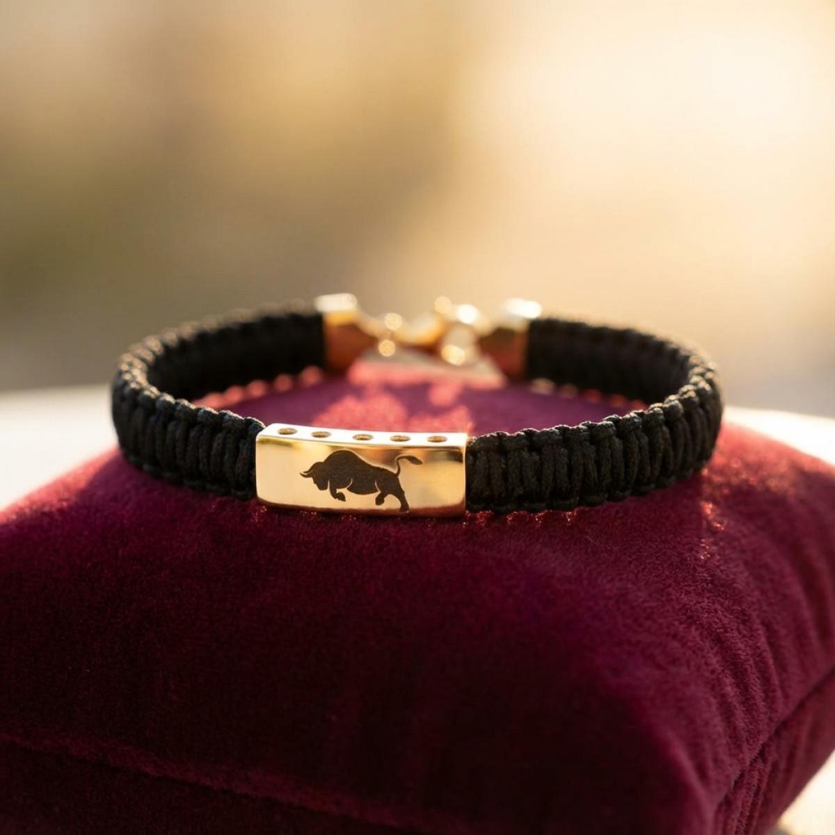 Тук ви представяме класическа плетена златна гривна мъжка, в чийто златен елемент е заложен един специален символ. Върху златната плочка, нашите бижутери са гравирали изображение на разярен бик, който отдавна се е превърнал в символ на зодиакалния знак Телец. Мъжете телци са изтънчени, елегантни и добре познаващи актуалните модни тенденции.