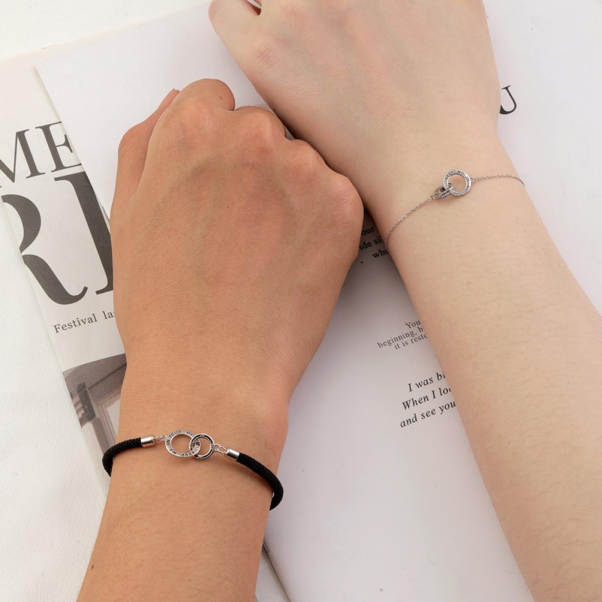 Сребърна гривна "Keep me in your heart" със стабилна черна връв